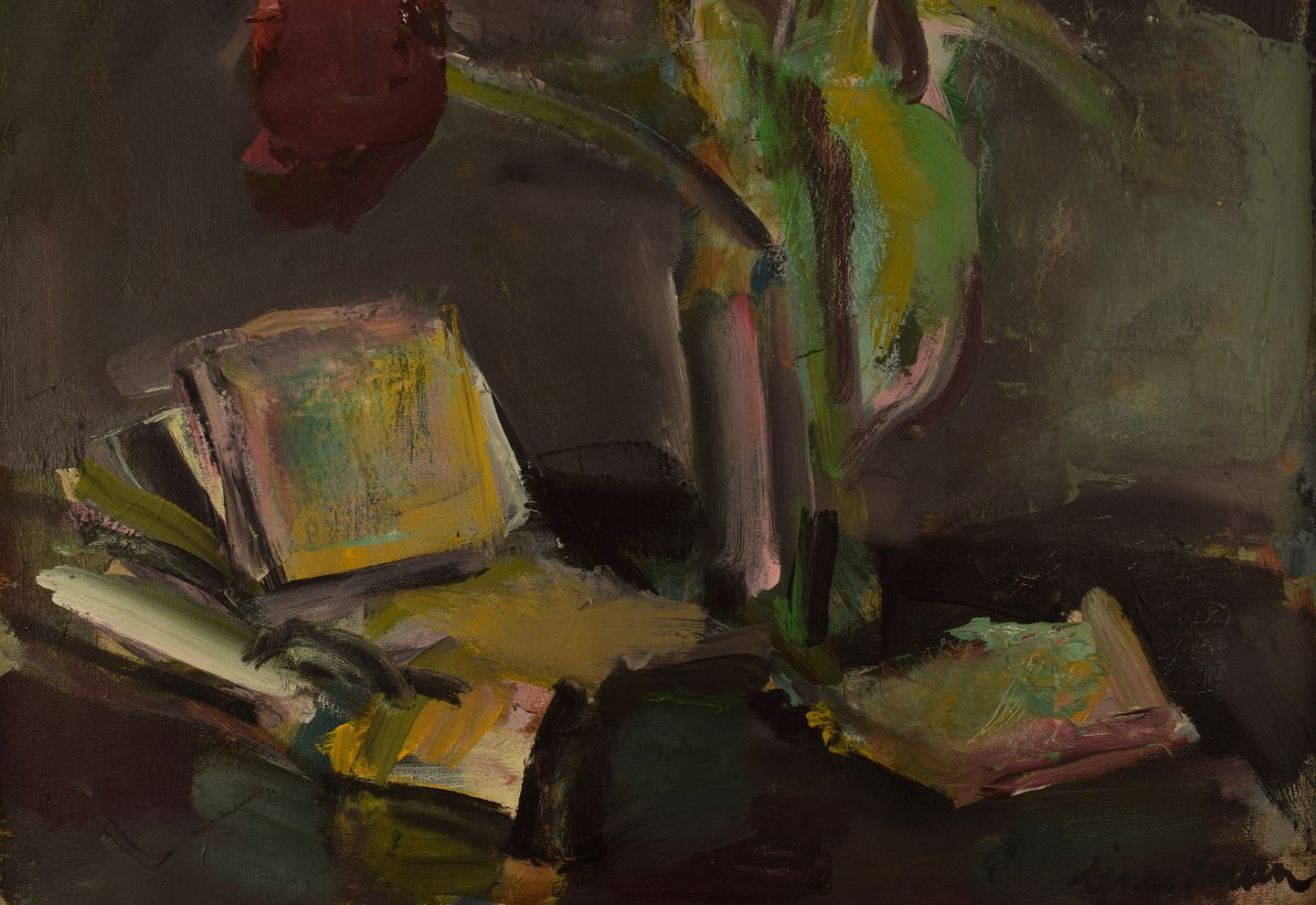 Ejnar Larsen (1902-1986), Danmark. Olie på lærred. Abstrakt stilleben. 1940'erne. Lærredet måler: 72 x 53 cm. Rammen måler: 6 cm. I flot stand. Signeret.