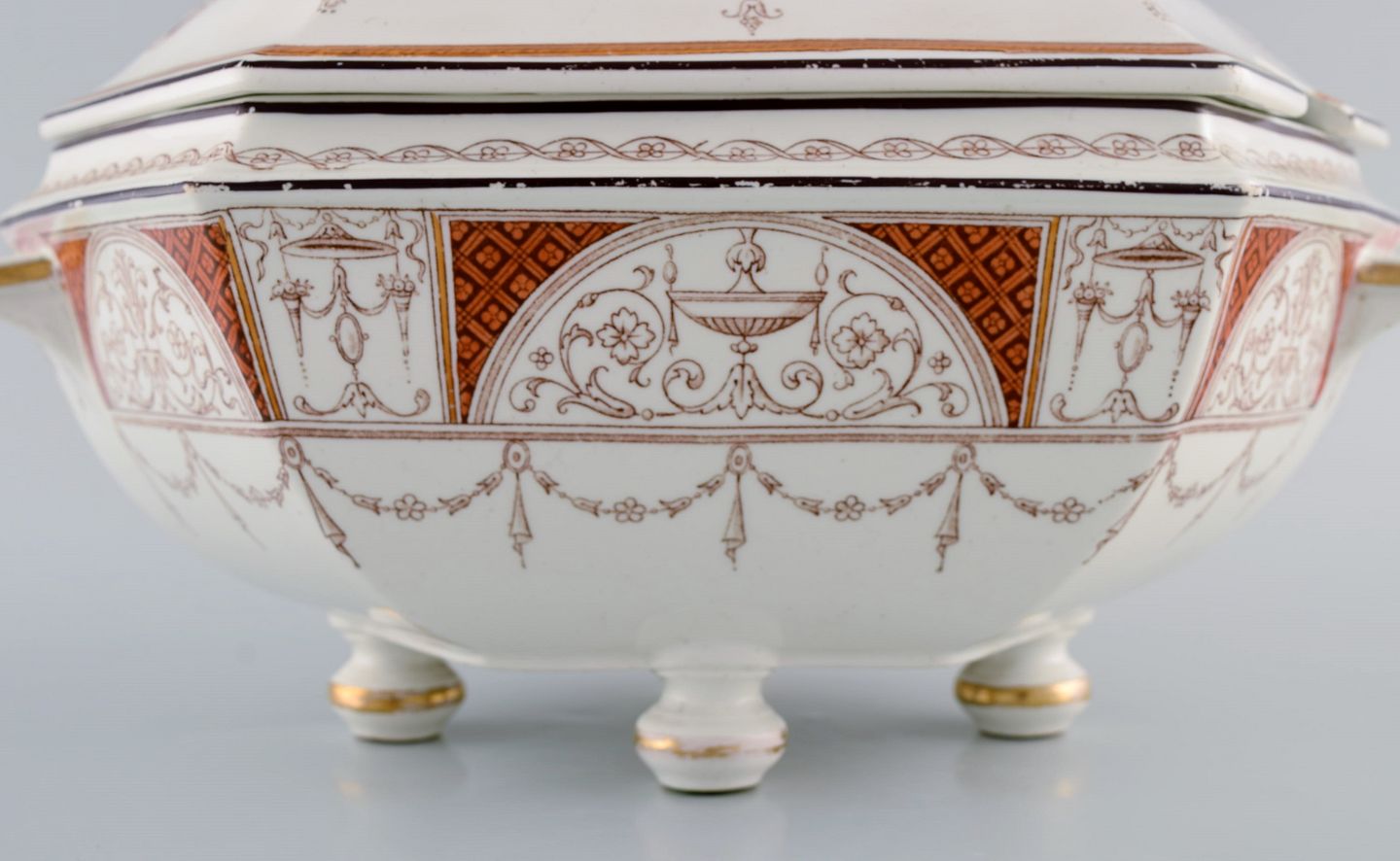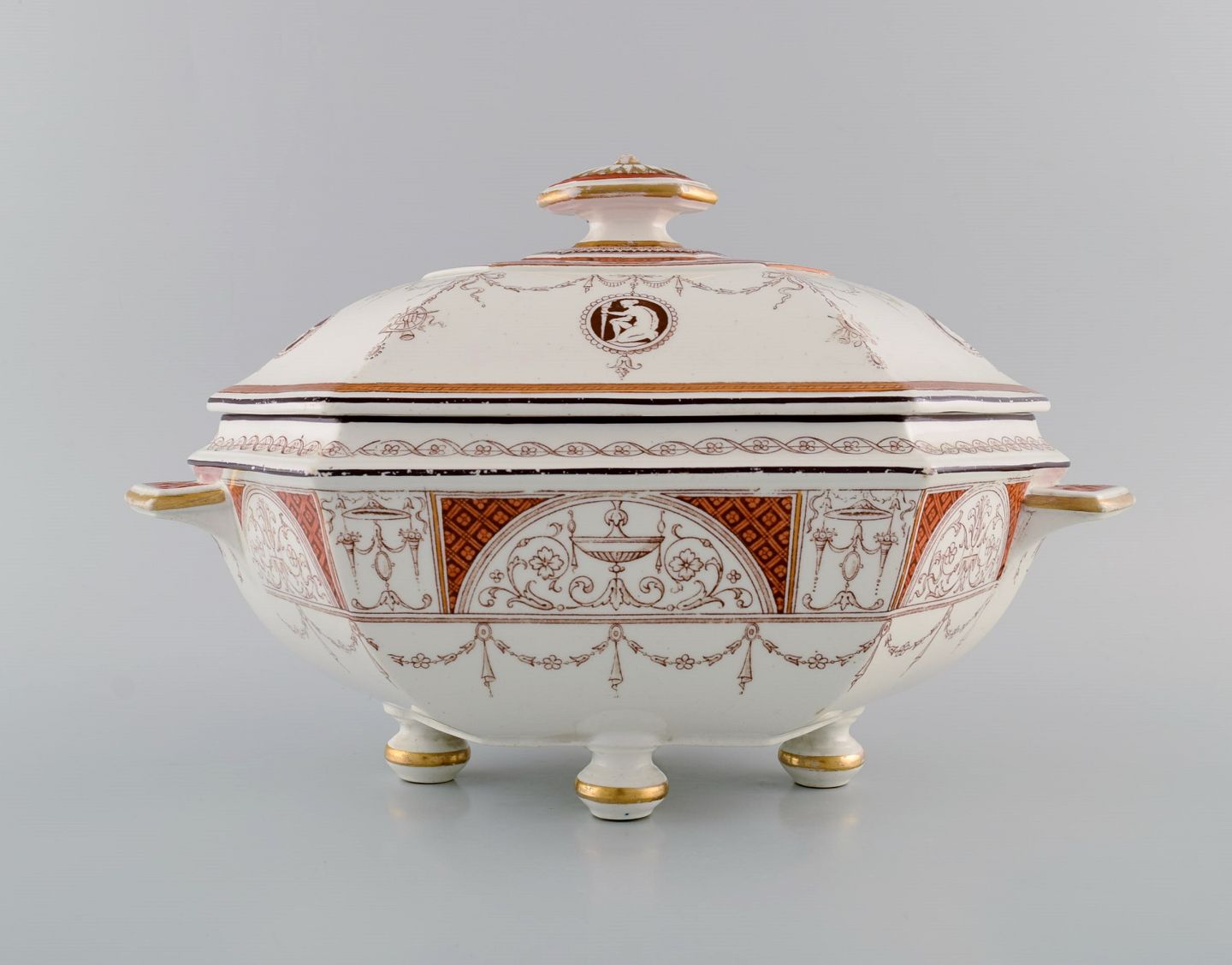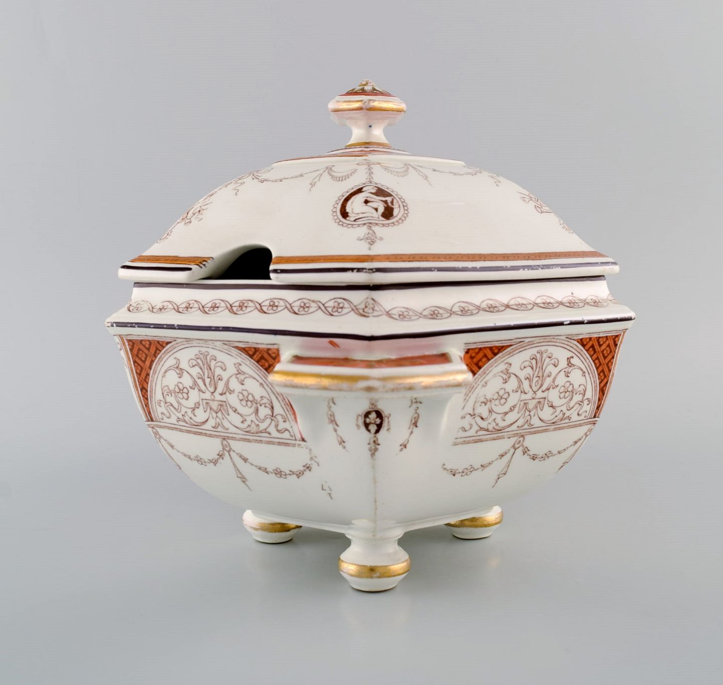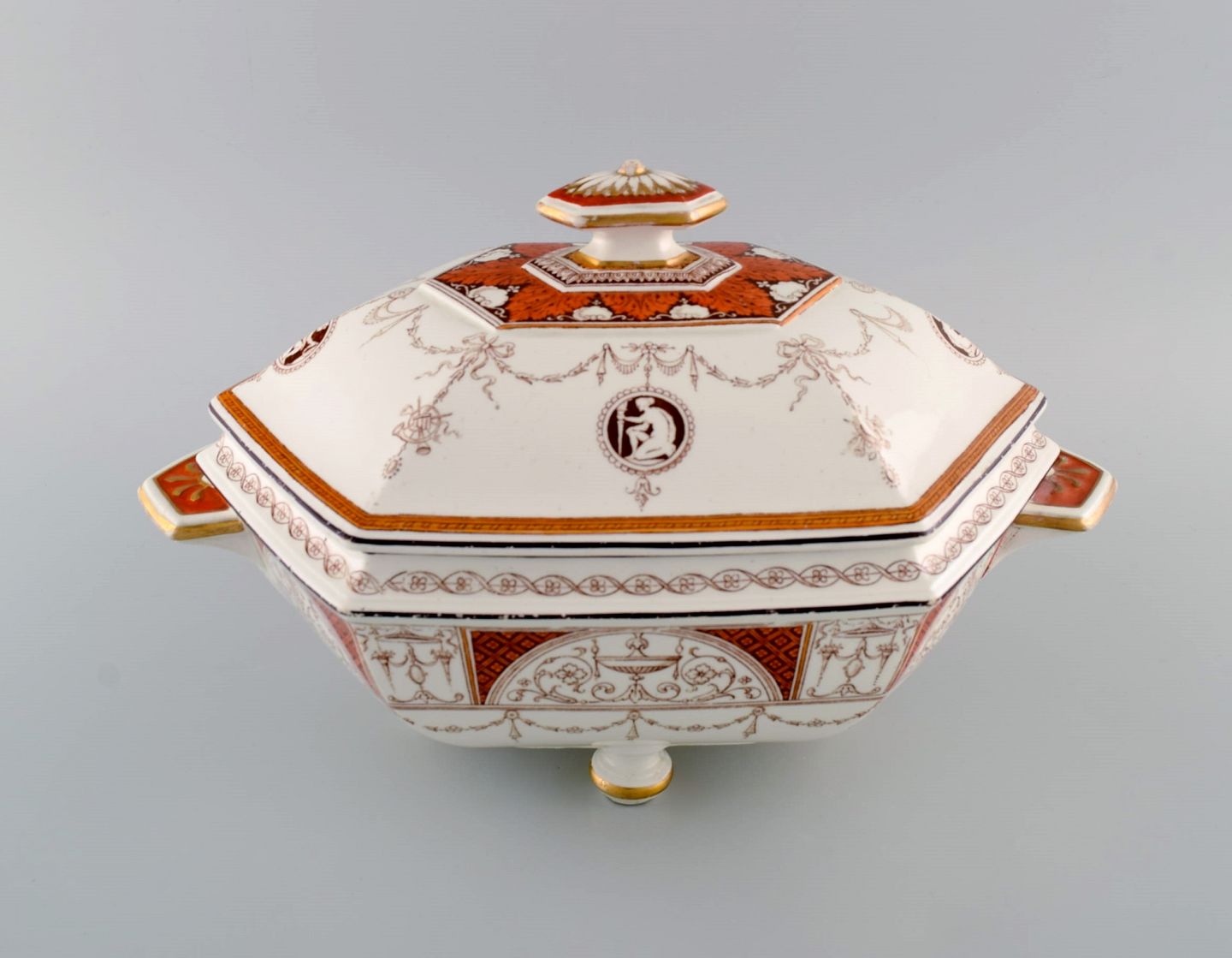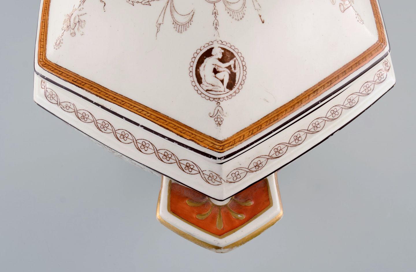 Mintons, England. Antik Holland lågterrin i håndmalet porcelæn. Klassicistisk dekoration og guldkant. Sent 1900-tallet. Måler: 34 x 21 x 21 cm. I flot stand med brugspræg. Stemplet.