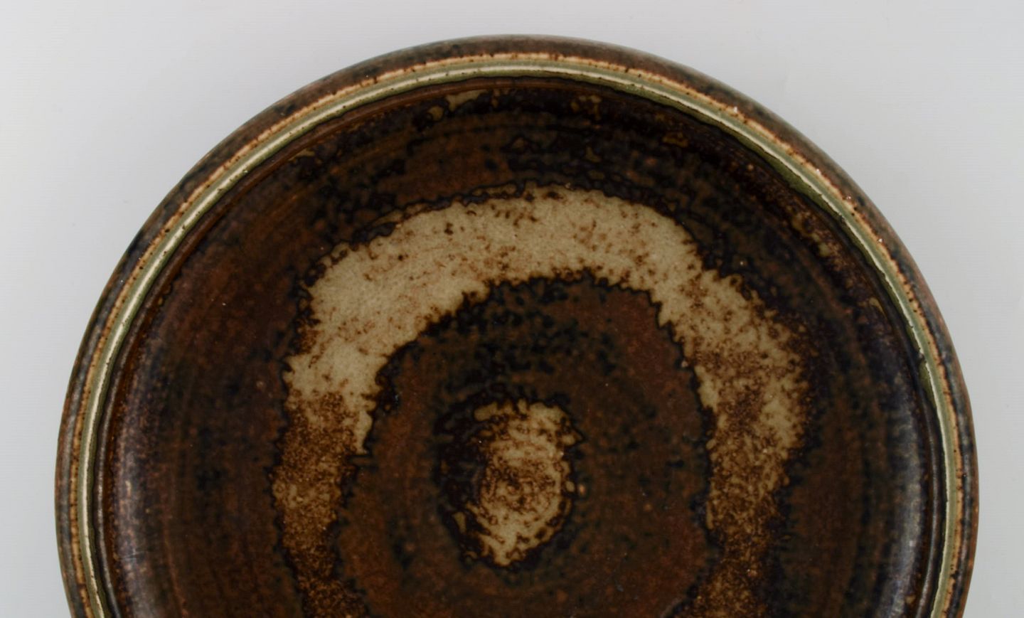 Carl Halier for Royal Copenhagen. Stort rundt fad/skål i glaseret keramik. Smuk sung glasur. Dateret 1966.
