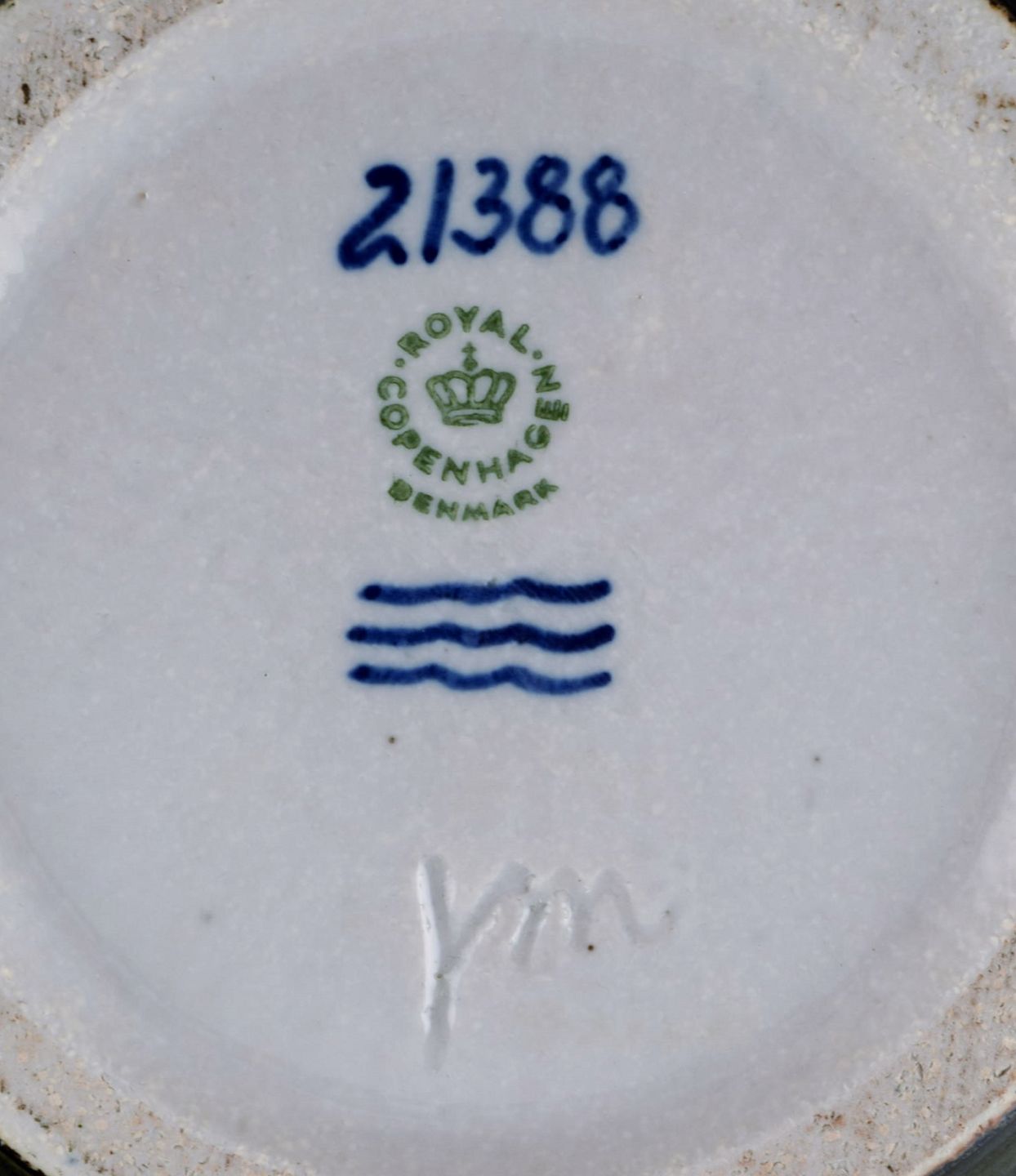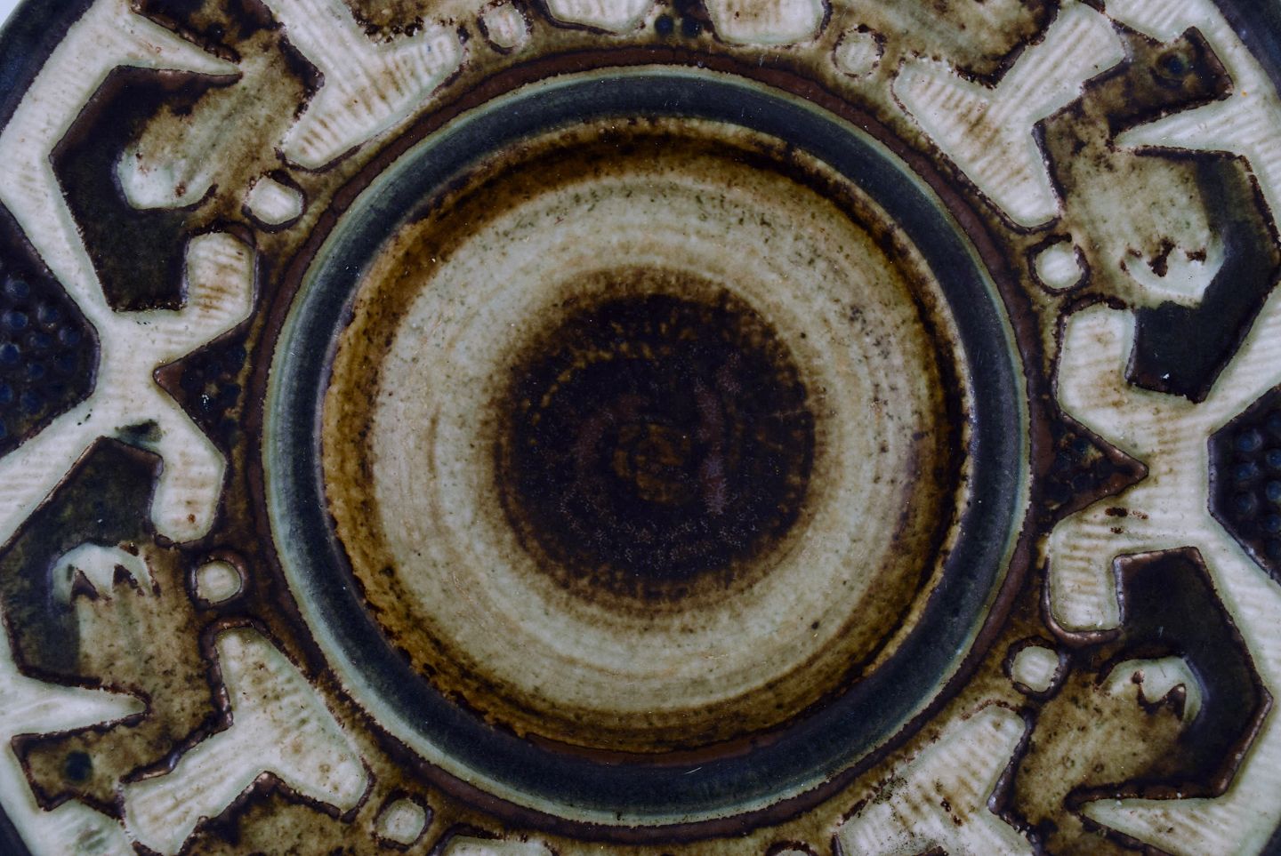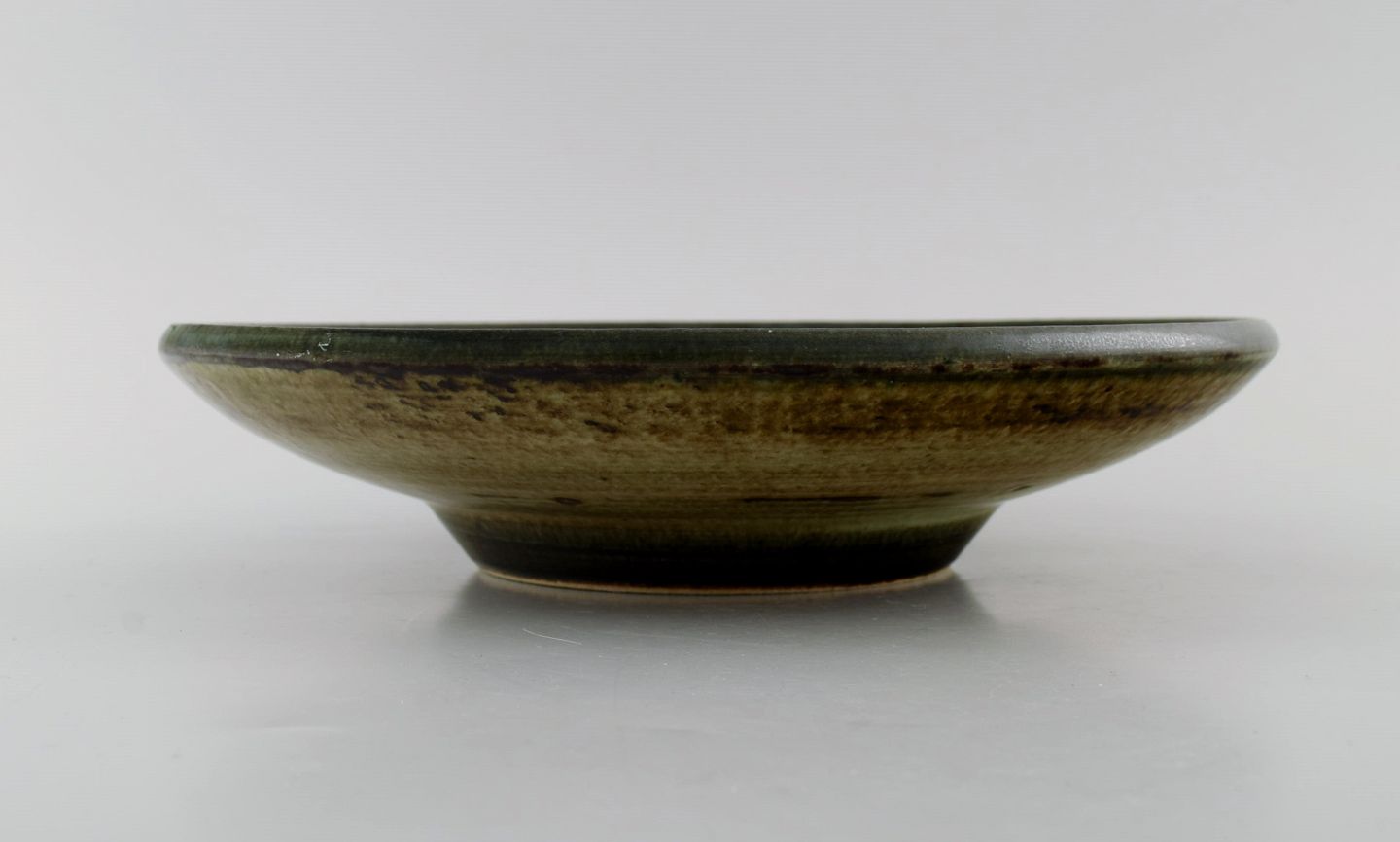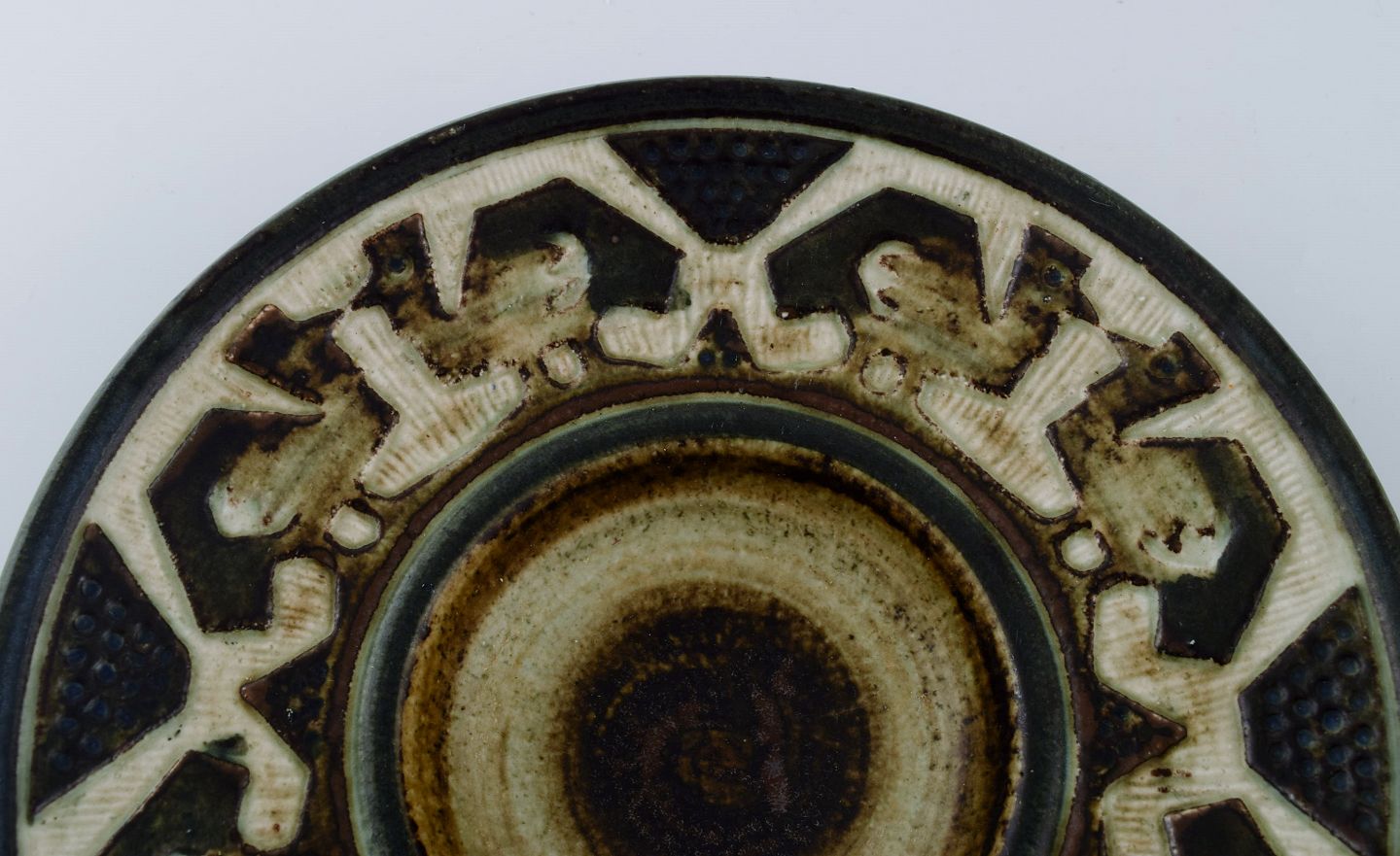 Jørgen Mogensen for Royal Copenhagen. Stor skål i glaseret stentøj dekoreret med fugle. Smuk sung glasur. 1970'erne.