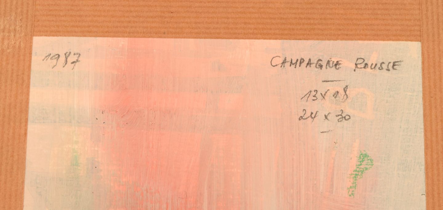 René Leroy (f. 1931), fransk kunstner. Pastel på papir. "Campagne Rousse". Dateret 1987. Lysmål: 17,5 x 12 cm. Totalmål: 30 x 24 cm. I flot stand. Signeret og dateret.