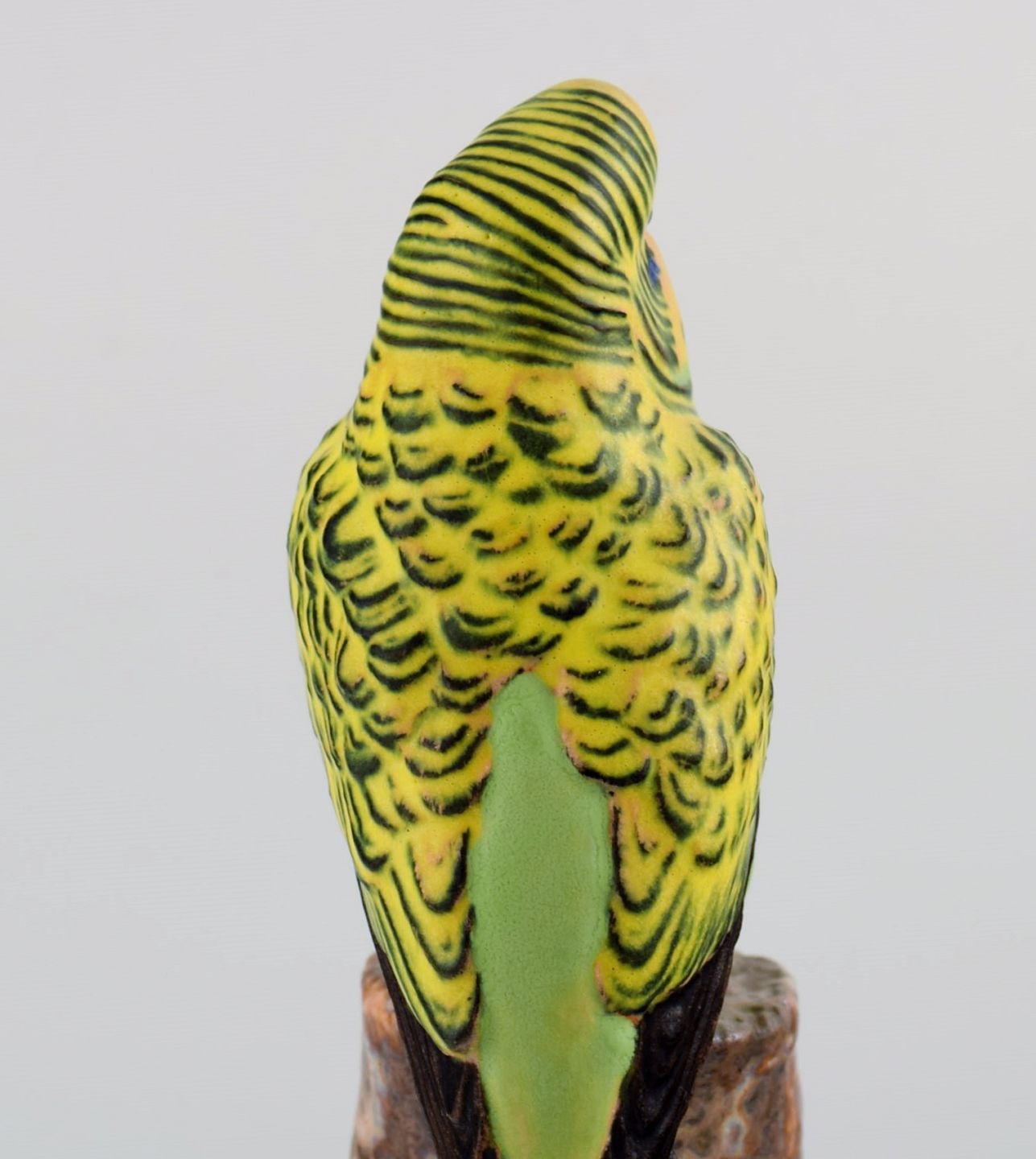 Jeanne Grut for Royal Copenhagen. Figure in hand-painted and glazed faience. Budgerigar. 1970s.