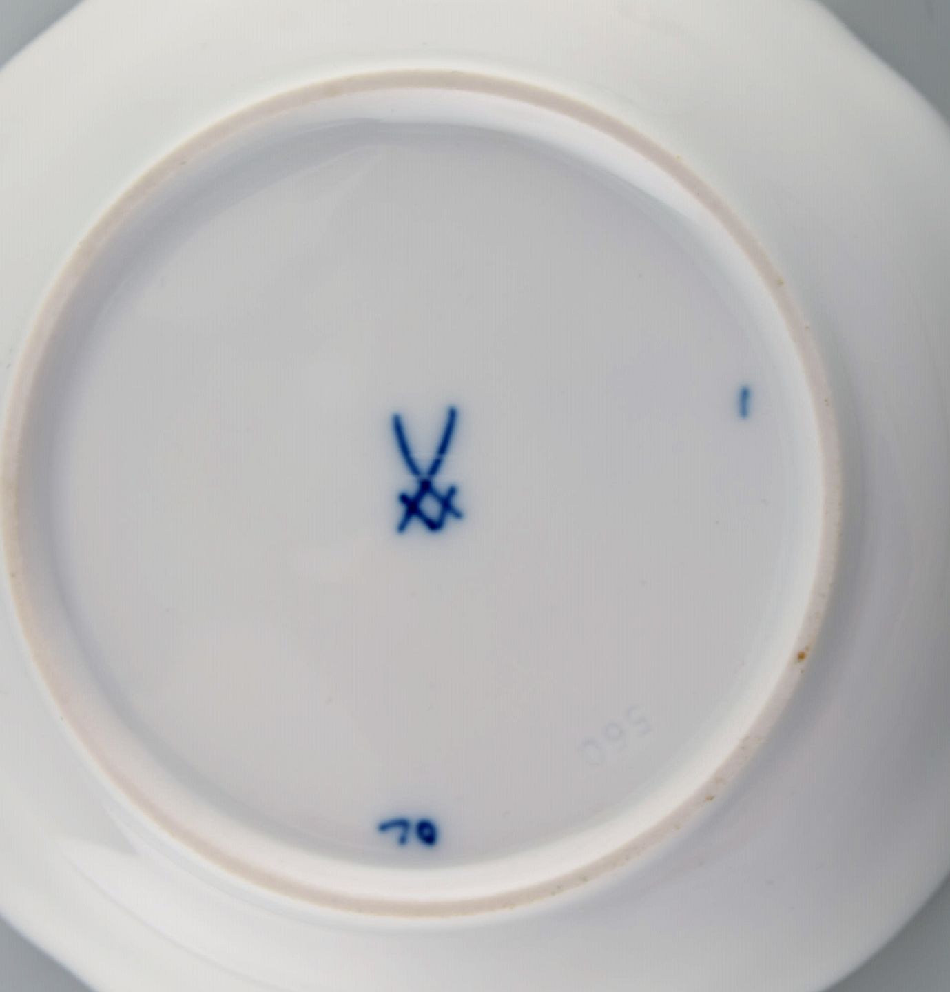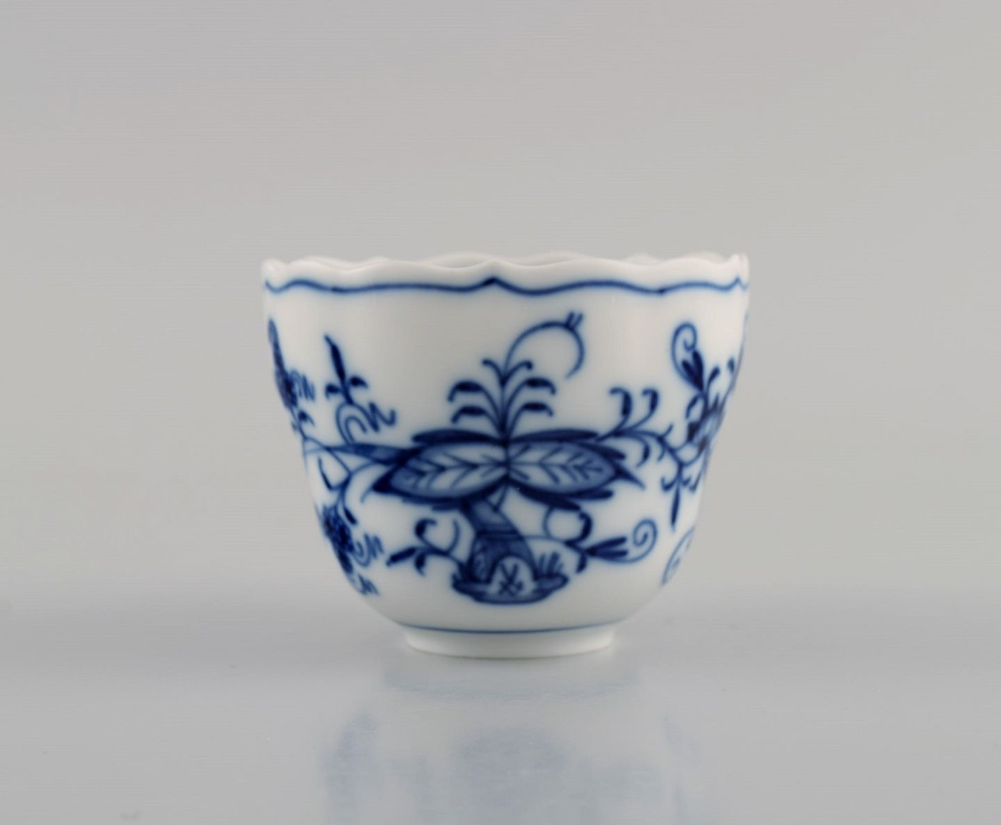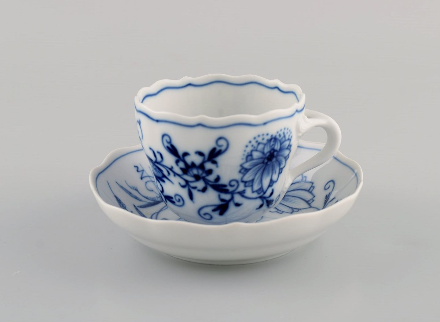 Seks Meissen Løgmønstret kaffekopper med underkopper i håndmalet porcelæn. Tidligt 1900-tallet. Koppen måler: 6,5 x 5,5 cm. Underkop diameter: 11 cm. I flot stand. Stemplet. 2. Sortering.