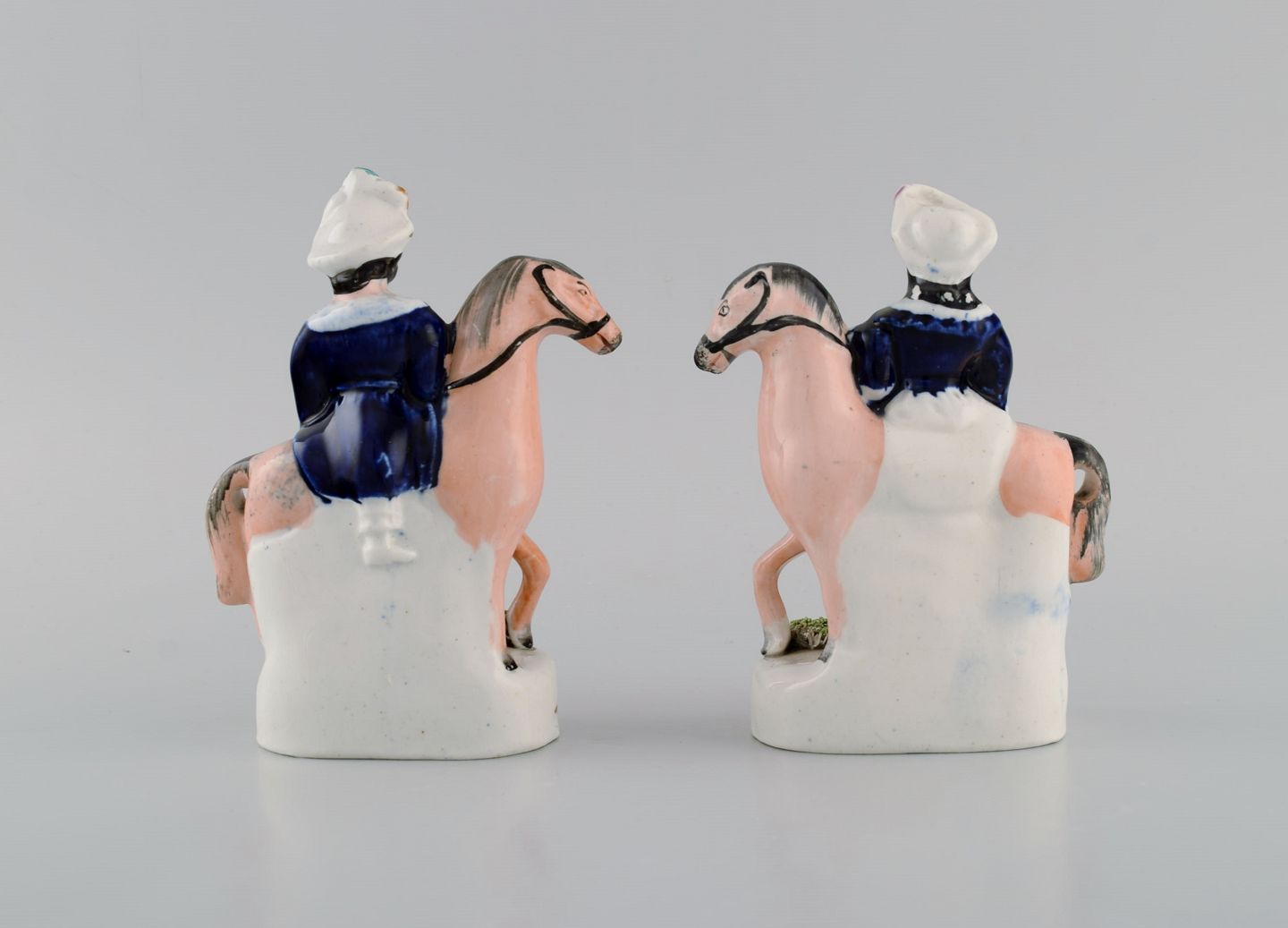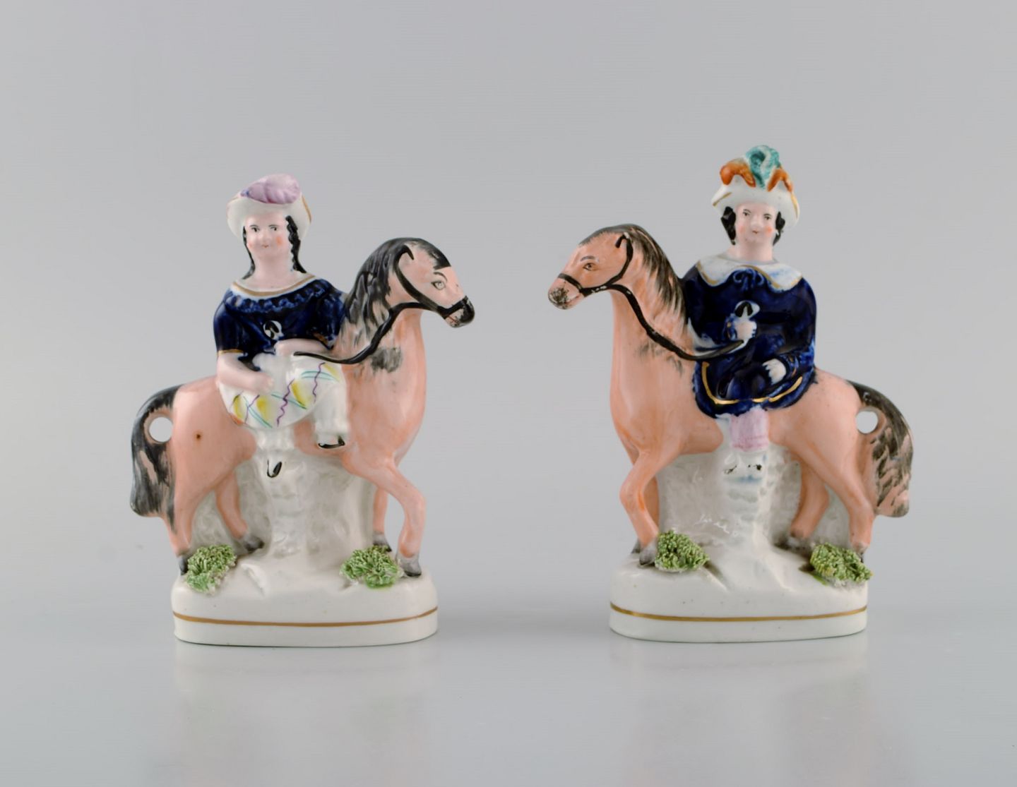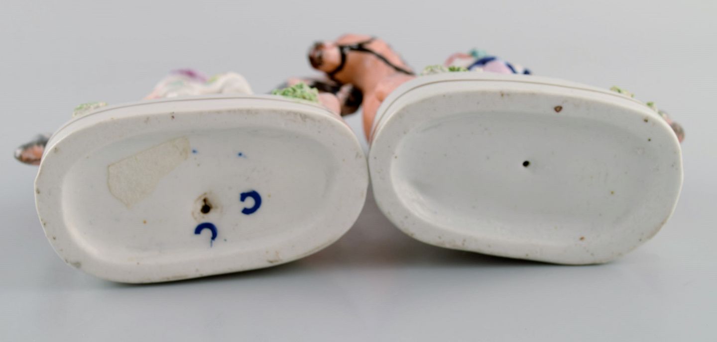 Capodimonte, England. To antikke håndmalede porcelænsfigurer. Adeligt par på heste. 1800-tallet. Måler: 13,5 x 10 cm. I flot stand. Stemplet.
