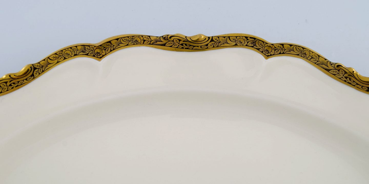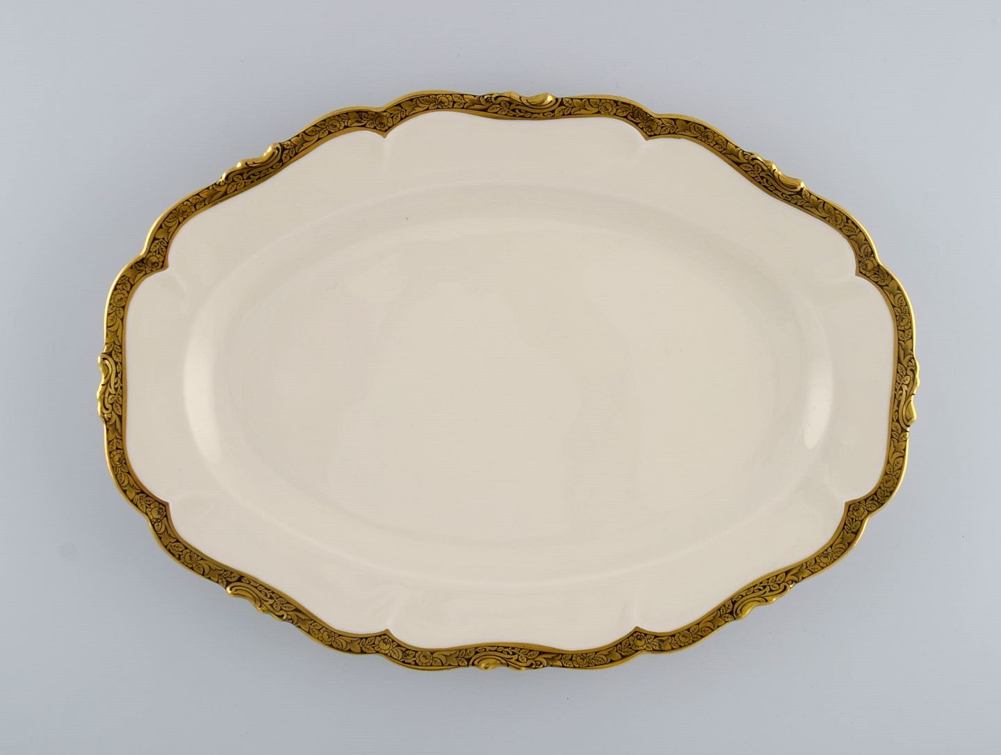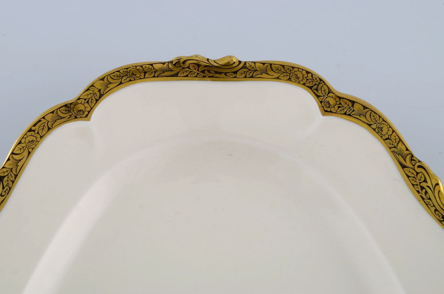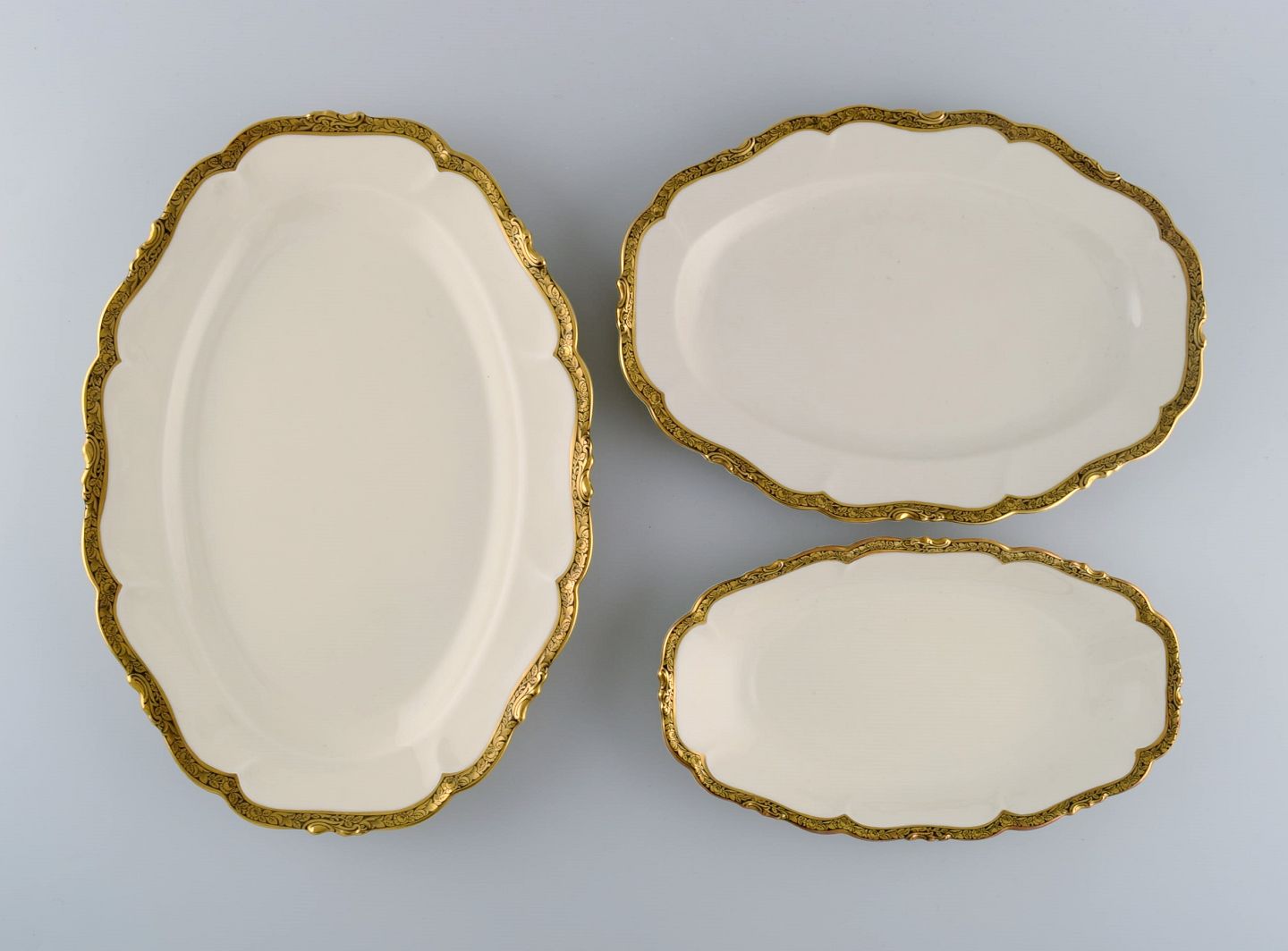 KPM, Berlin. Tre Royal Ivory serveringsfade i cremefarvet porcelæn med gulddekoration. 1920'erne.