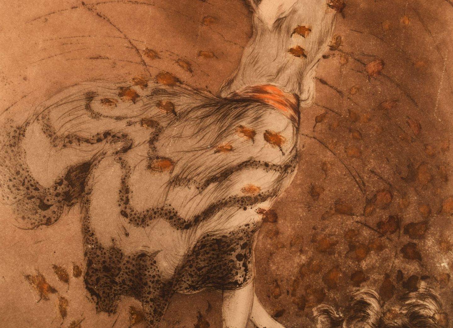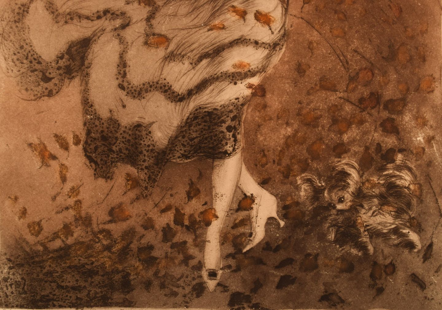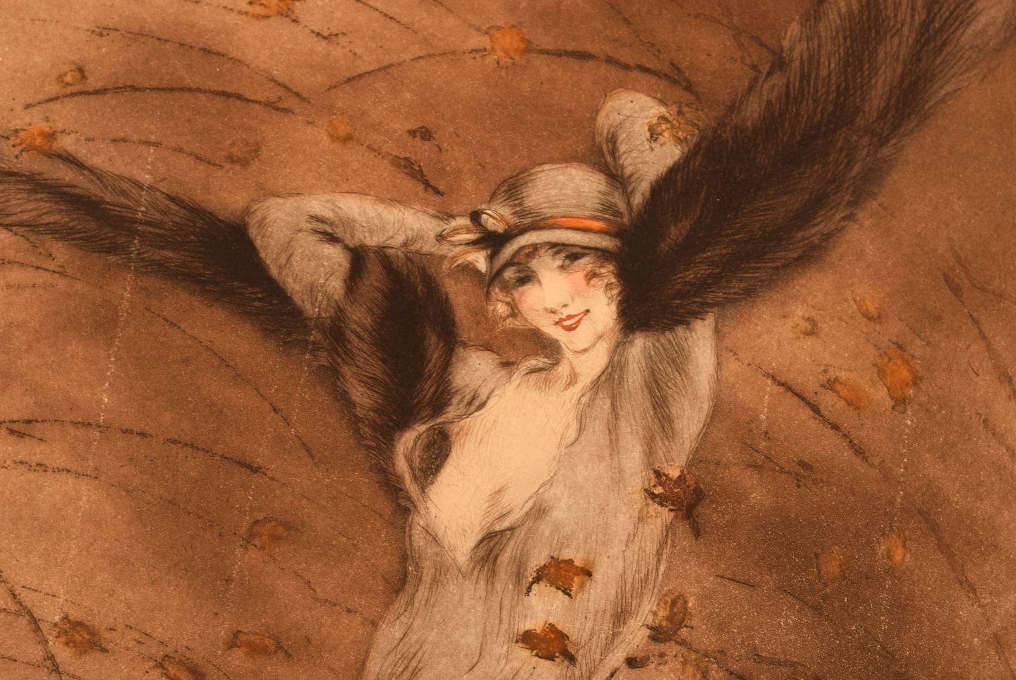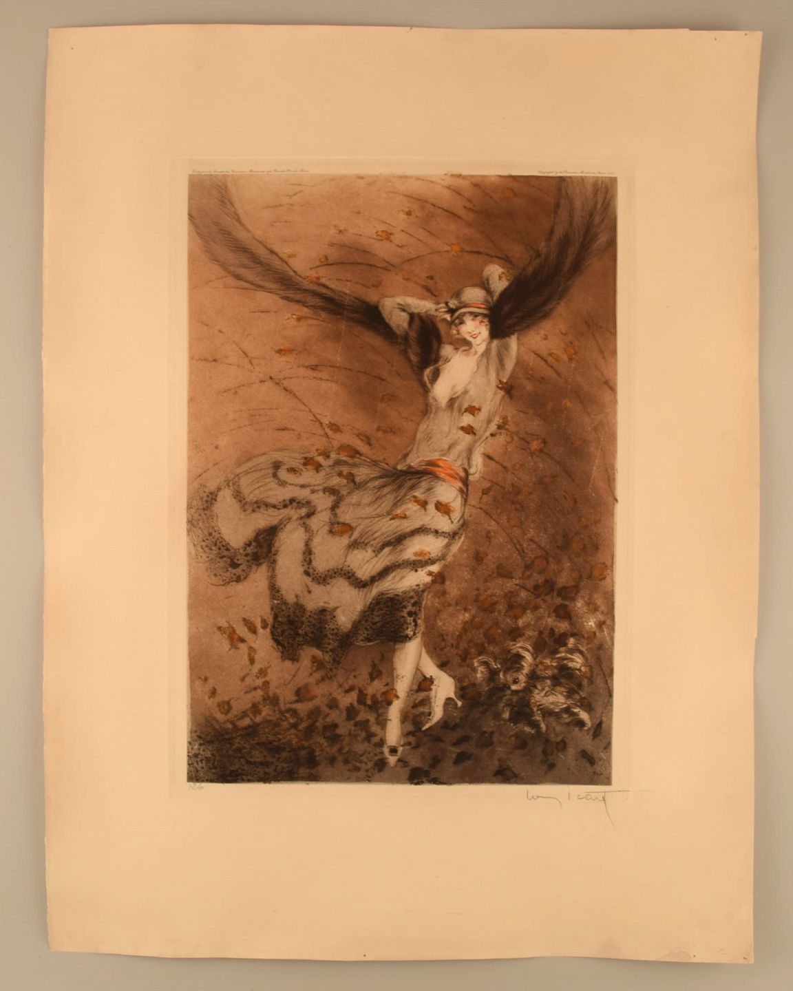 Louis Icart (1888-1950). Radering på papir. "Autumn Swirls". Dateret 1924. Lysmål: 42 x 29 cm. Totalmål: 65 x 49 cm. I flot stand. Signeret med blyant.
