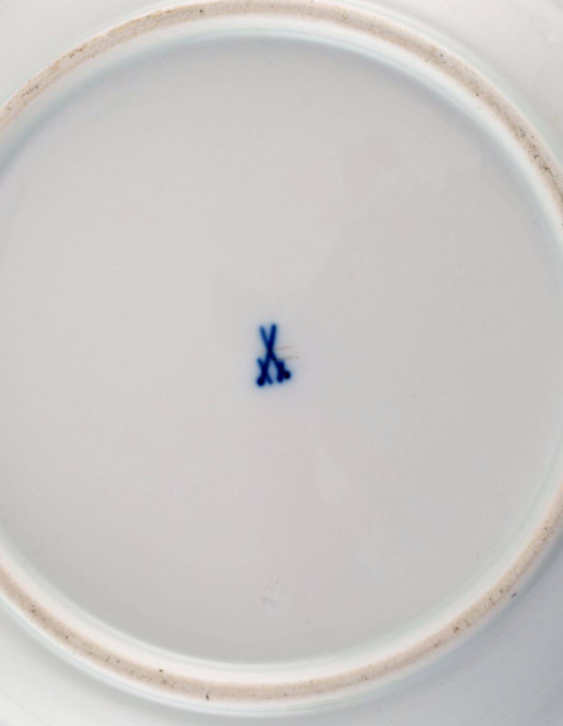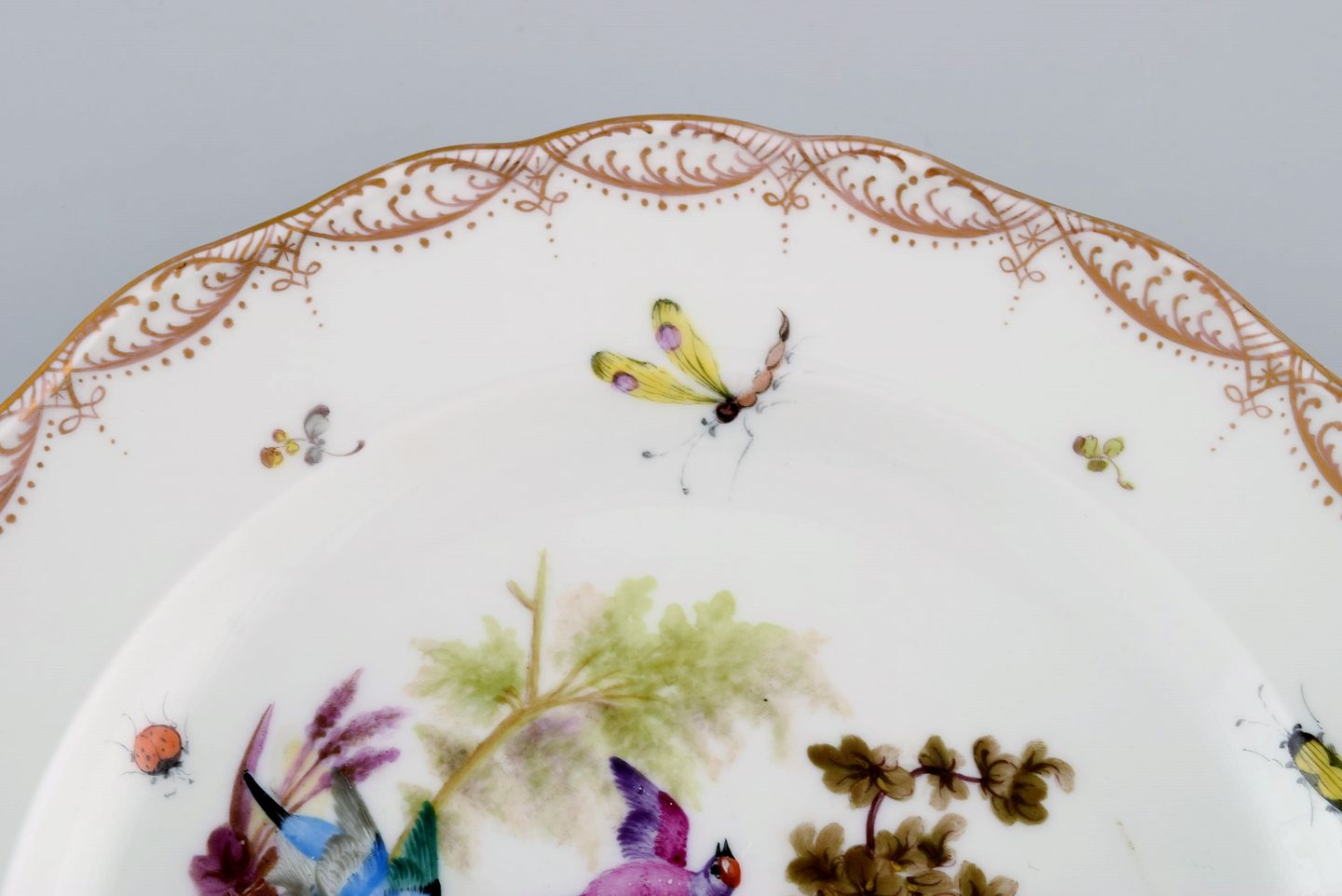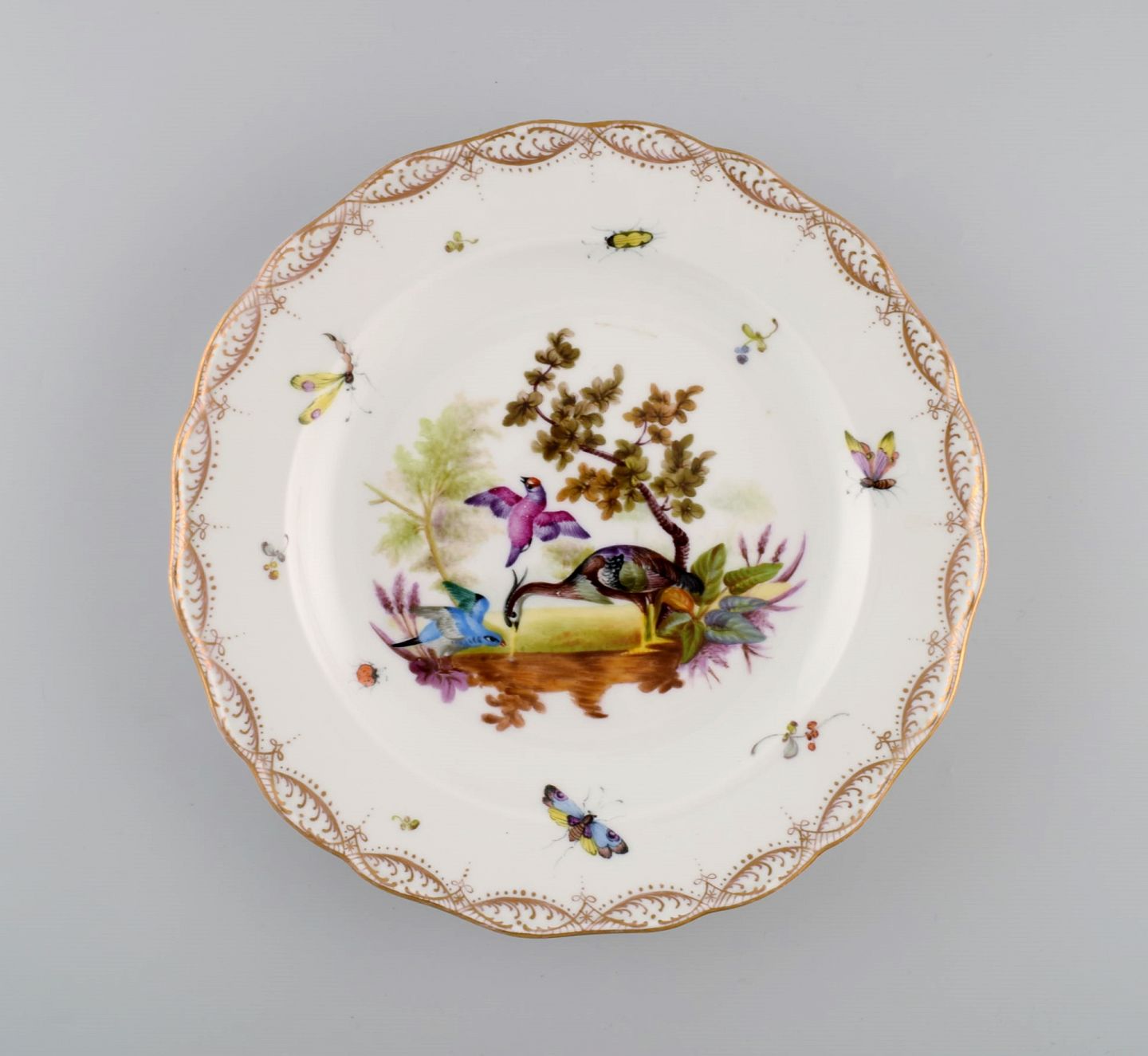 Antique and rare Meissen porcelain plate with hand-painted birds, insects and gold decoration. 19th century.