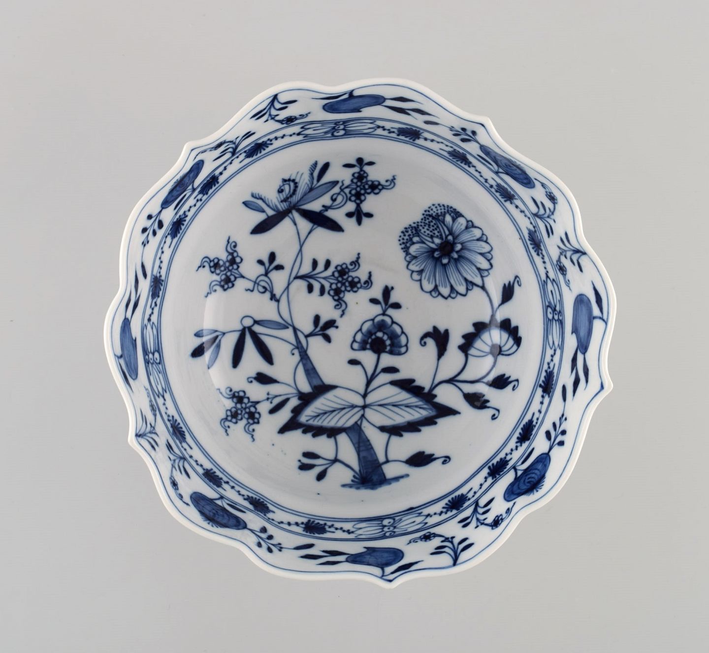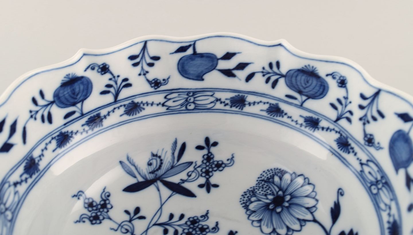 Antik Meissen Løgmønstret skål i håndmalet porcelæn. Ca. 1900. Måler: 22 x 10,5 cm. I flot stand. Stemplet. 1. Sortering.
