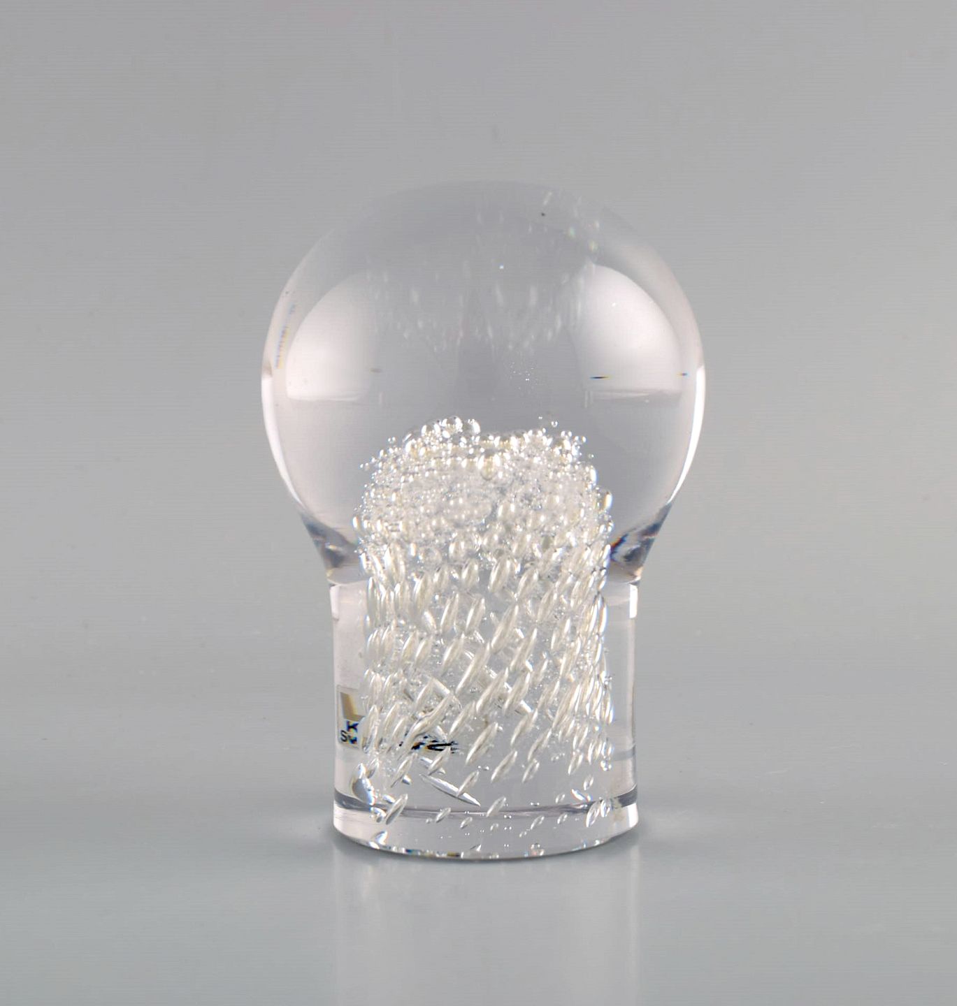 Göran Wärff for Kosta Boda. Skulptur / brevvægt i klart mundblæst kunstglas med indlagte bobler. Svensk design, 1970/80'erne.