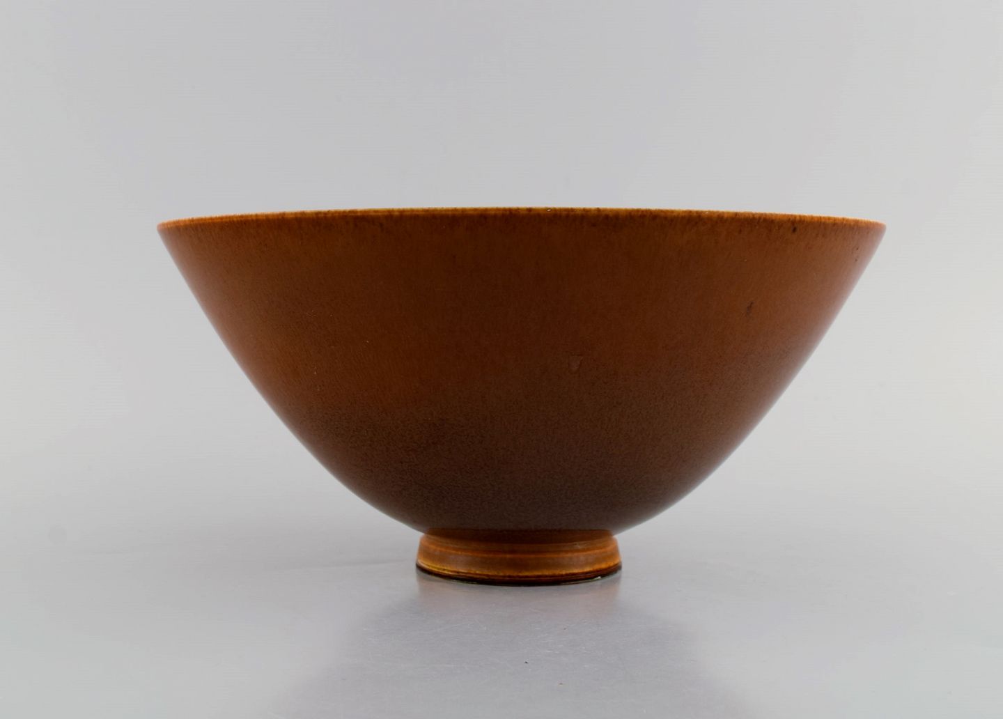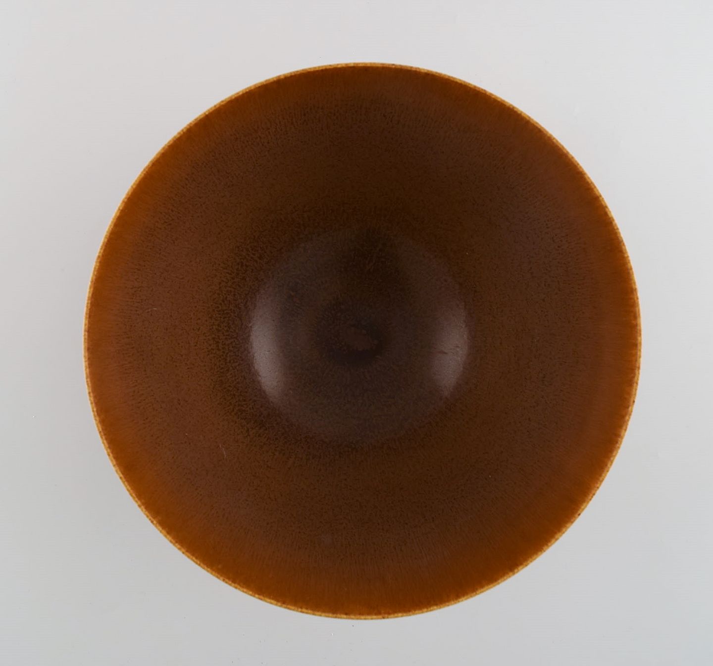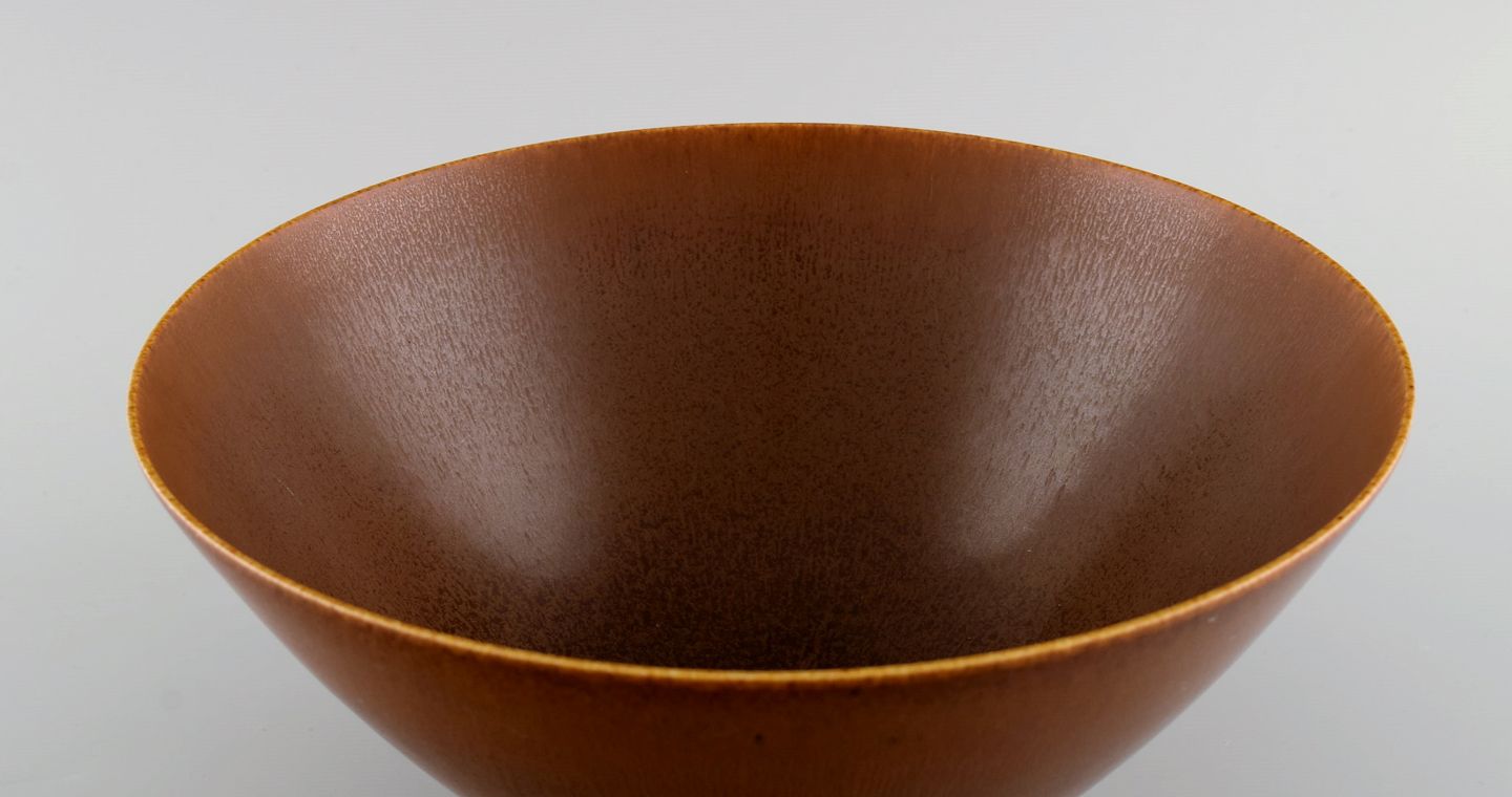 Berndt Friberg (1899-1981) for Gustavsberg Studiohand. Skål i glaseret keramik. Smuk glasur i brune nuancer. Dateret 1950.
