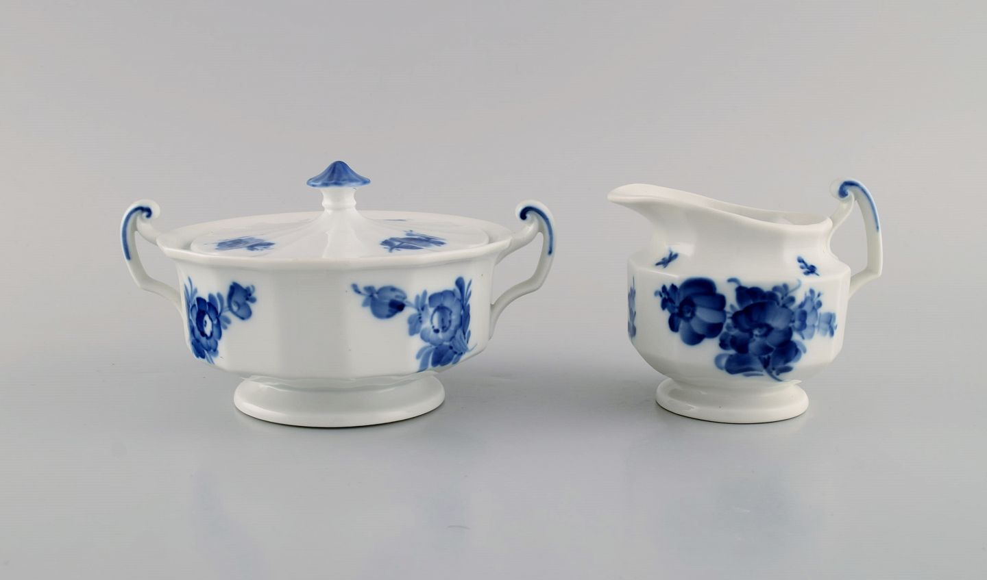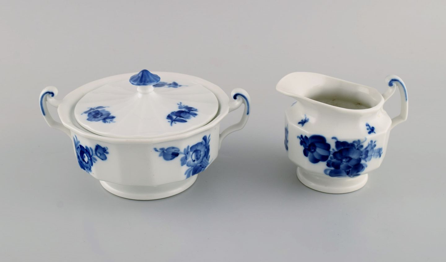 Royal Copenhagen Blue Flower Angular sugar bowl and creamer.