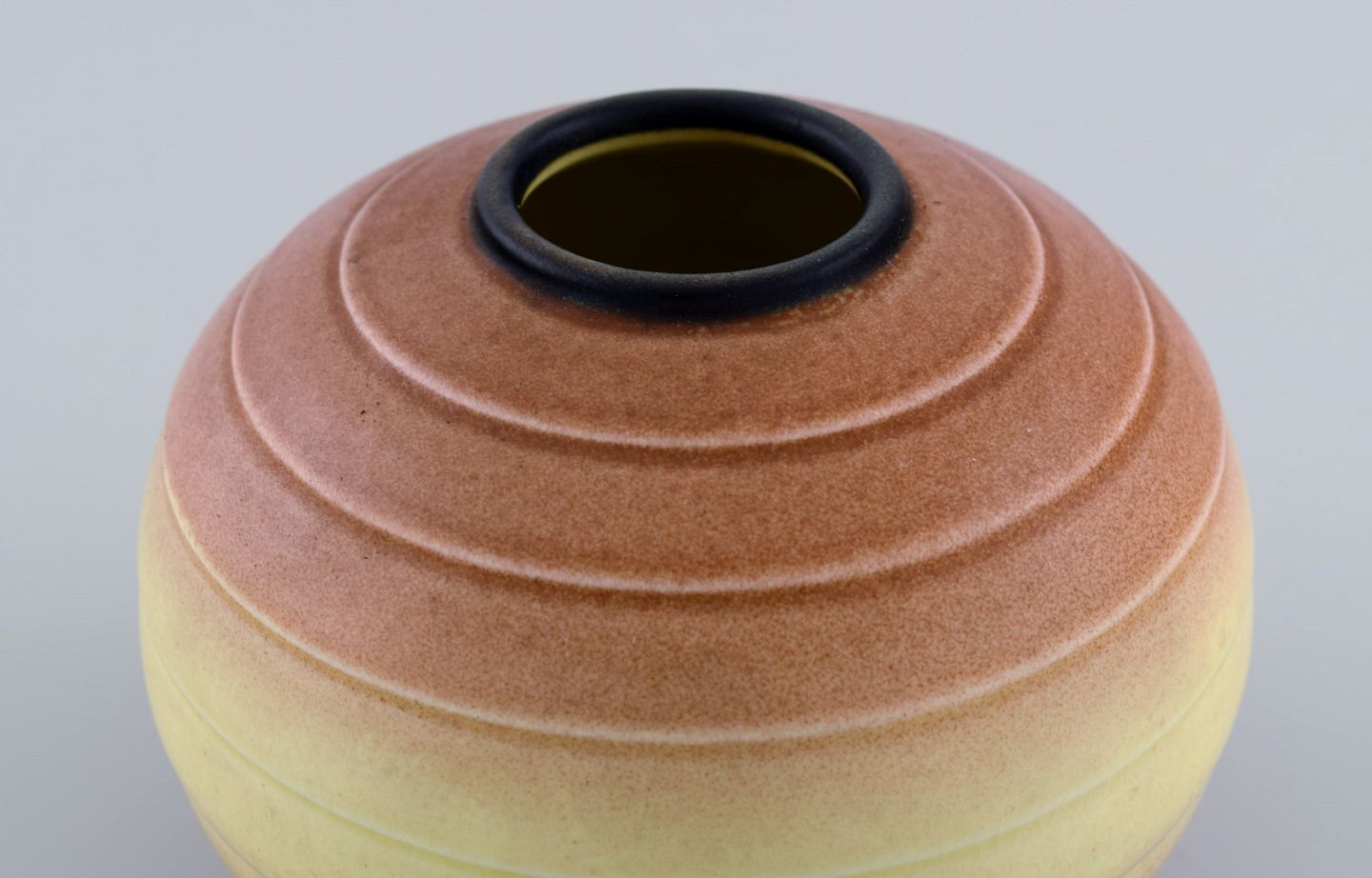 Gertrud Lönegren (1905–1970) for Rörstrand. To runde vaser i glaseret keramik. Smuk fersken glasur. 1930/40'erne. Største måler: 12 x 9,5 cm. I flot stand. Stemplet.