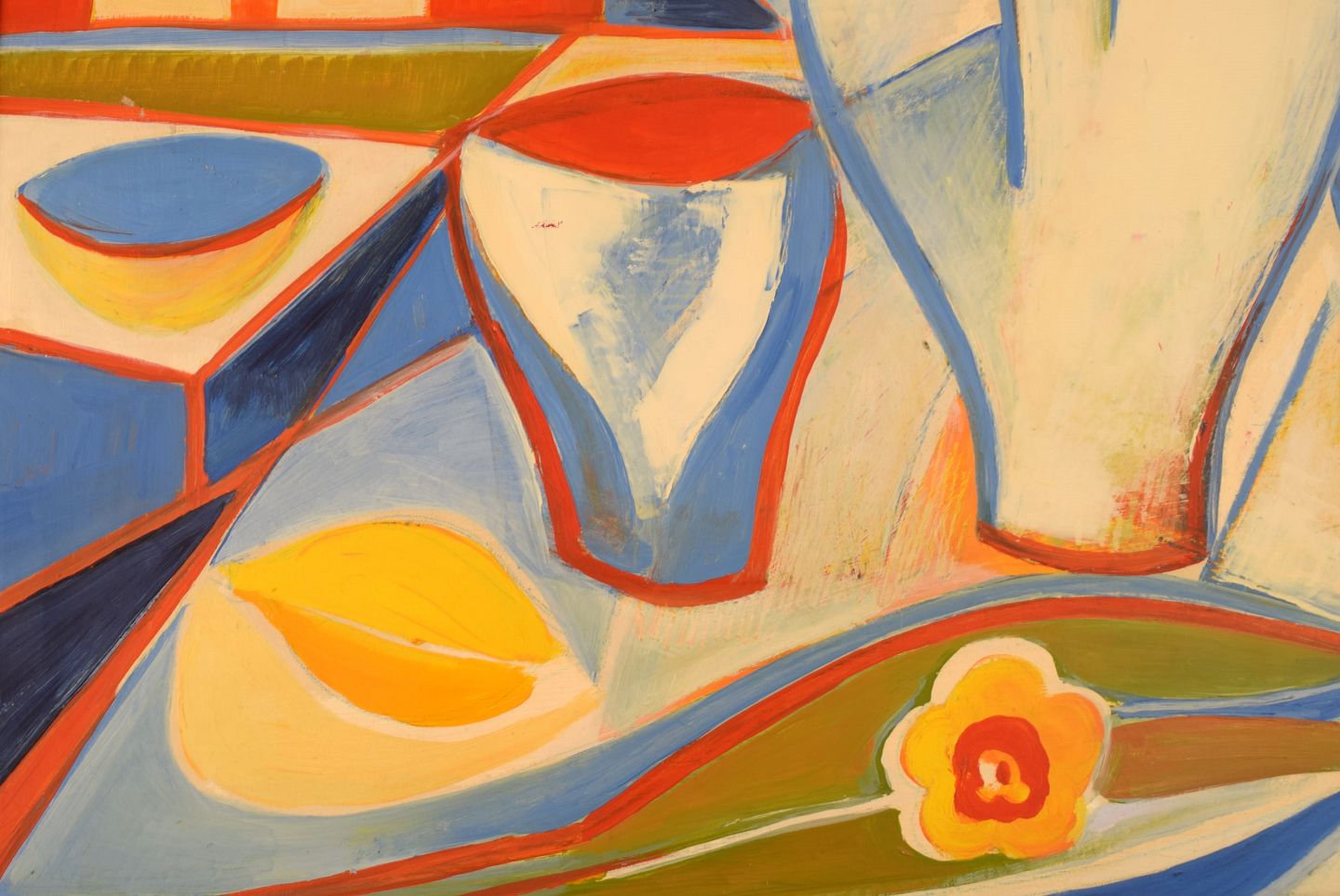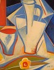 Skandinavisk kunstner. Olie på lærred. Modernistisk stilleben. Dateret 1975.
