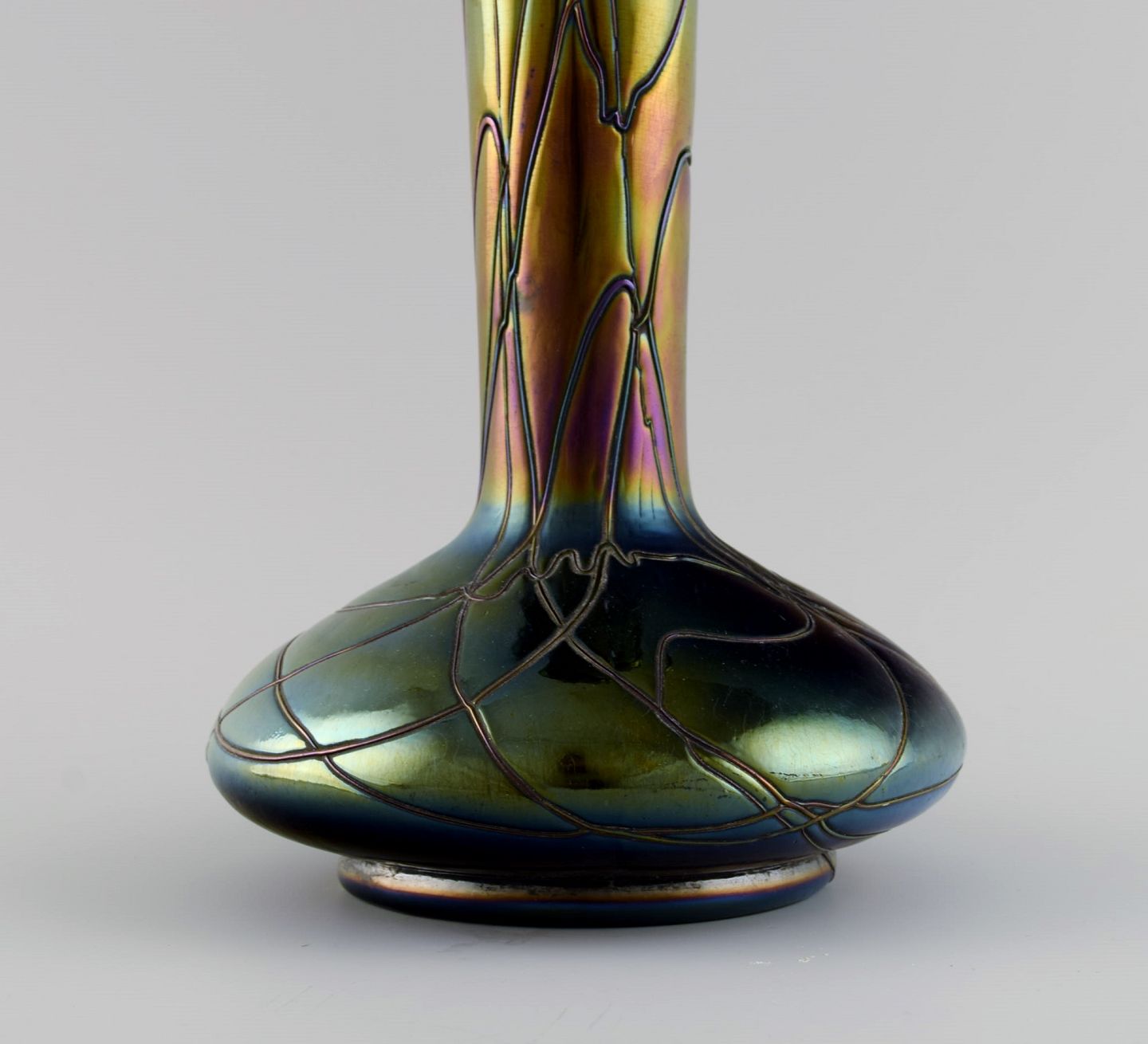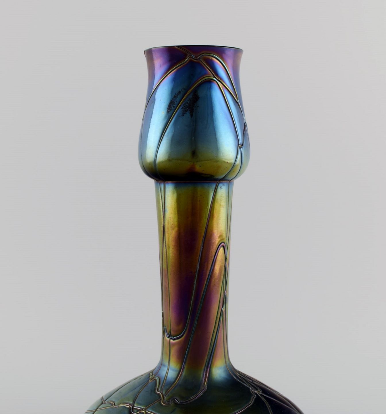 Kralik, Bohemia. Smalhalset art nouveau vase i iriserende mundblæst kunstglas. 1910'erne.