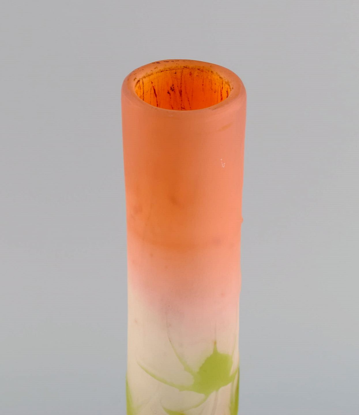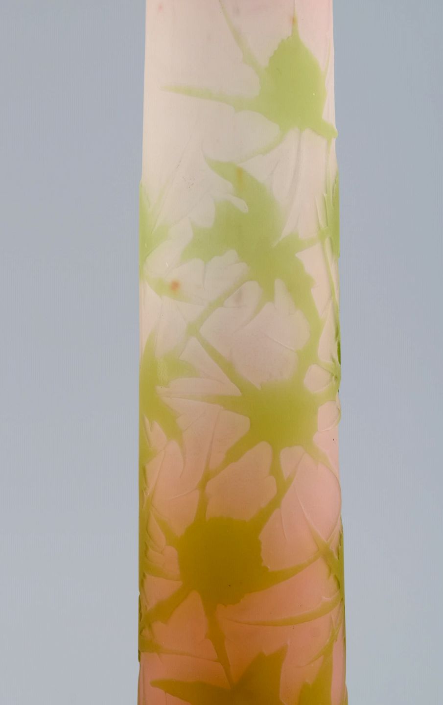 Émile Gallé (1846-1904), France. Vase in frosted and light green art glass carved in the form of foliage. Approx. 1900. Measures: 34 x 13 cm. In excellent condition. Signed.