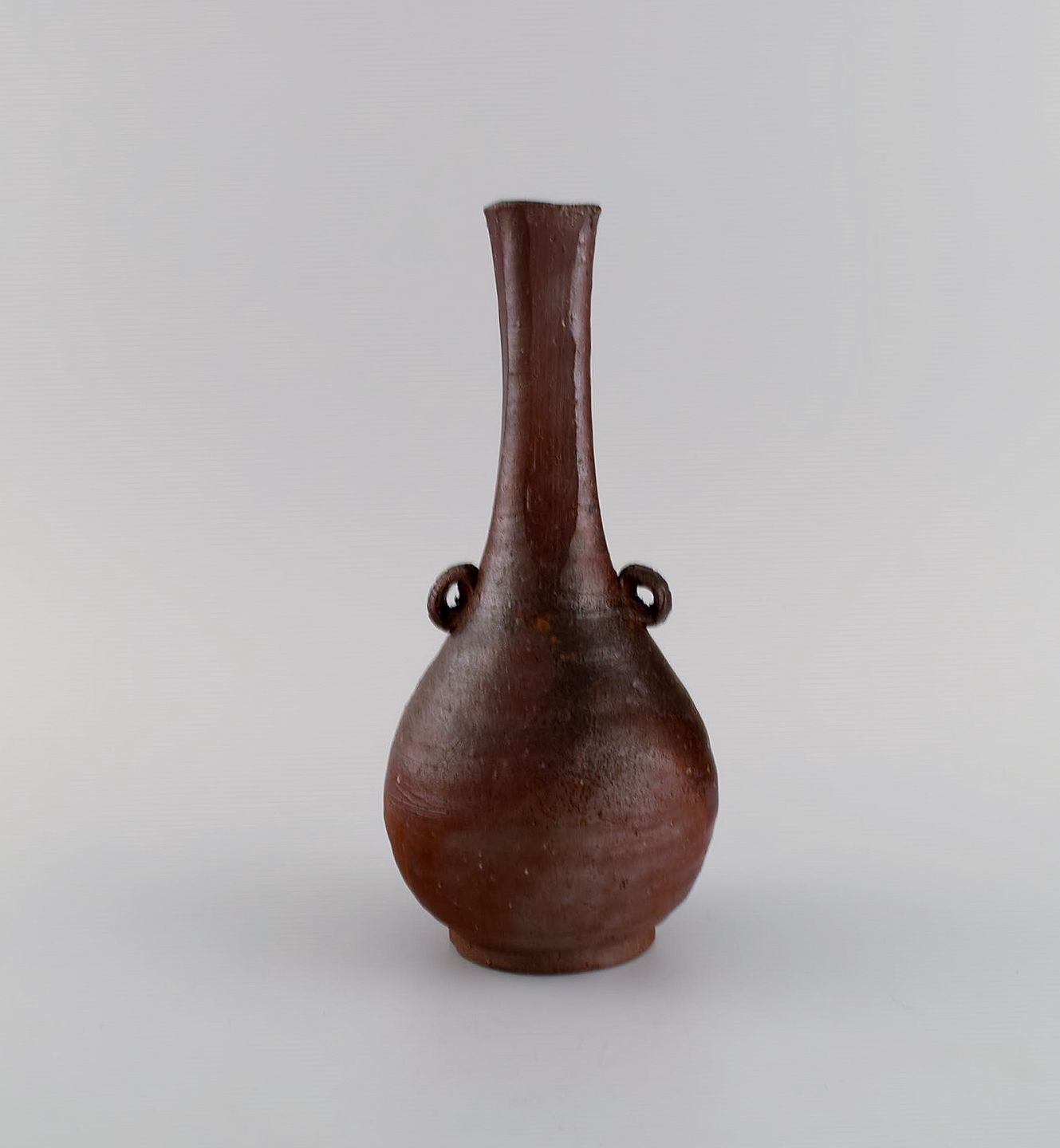 Takahara Satoshi 高原敏 (1934-2011), japan. Unika Bizen vase i stentøj med hanke. 1980/90'erne.