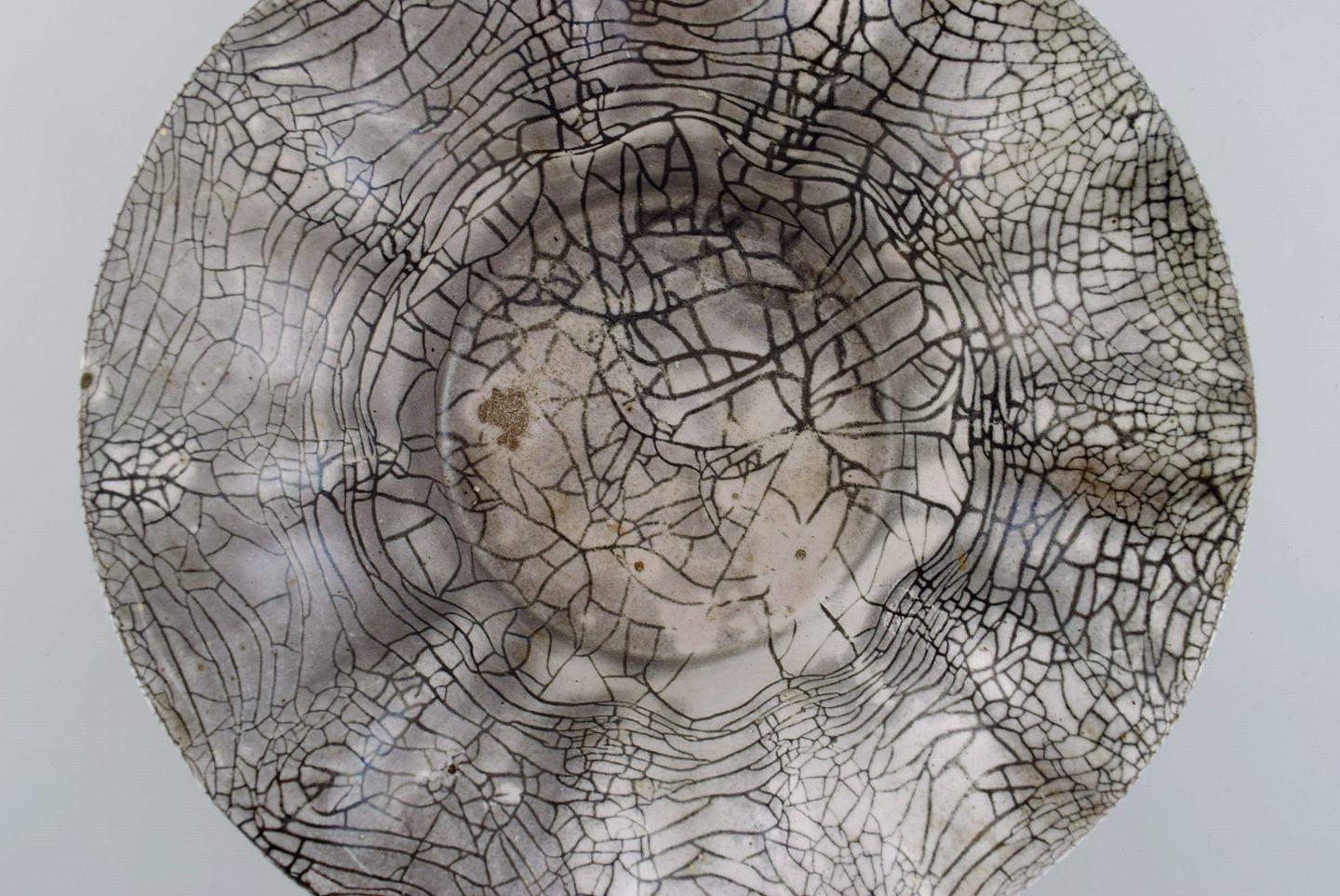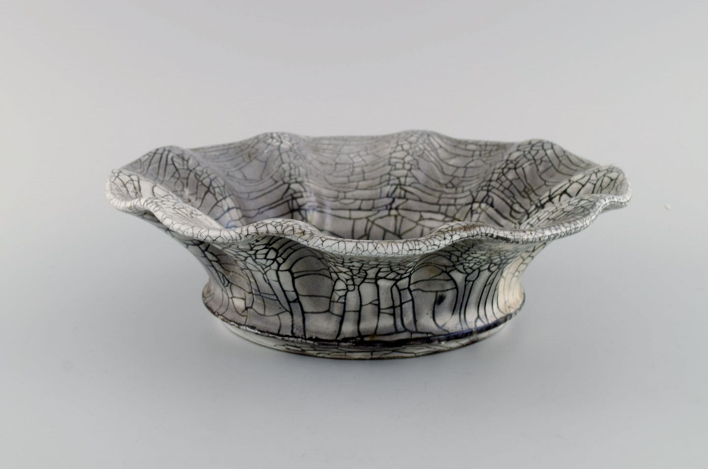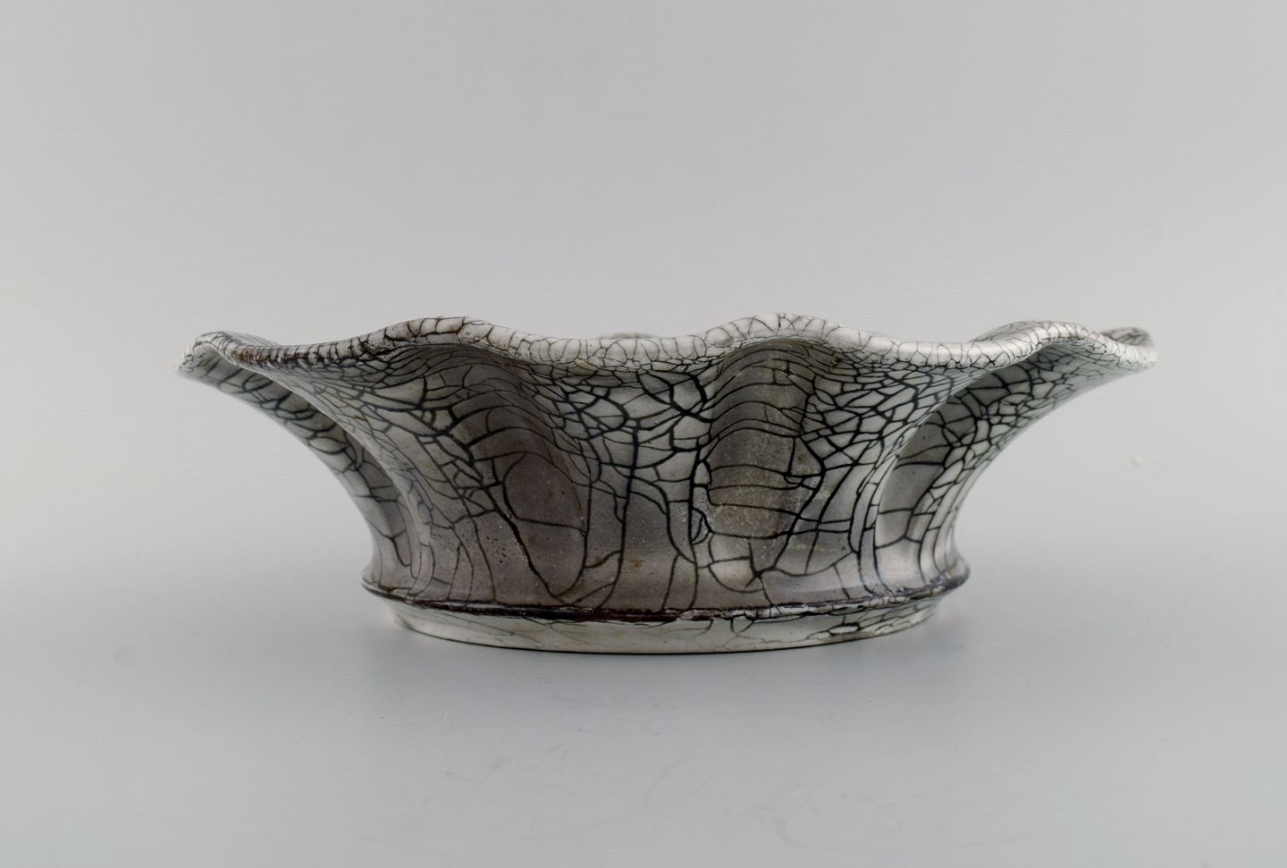 Svend Hammershøi for Kähler. Skål med bølget kant i glaseret stentøj. Smuk gråsort dobbeltglasur. 1930/40'erne.