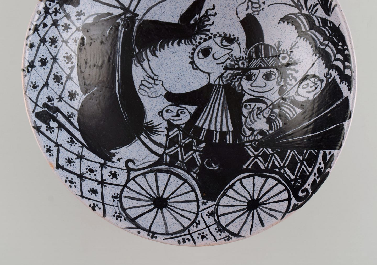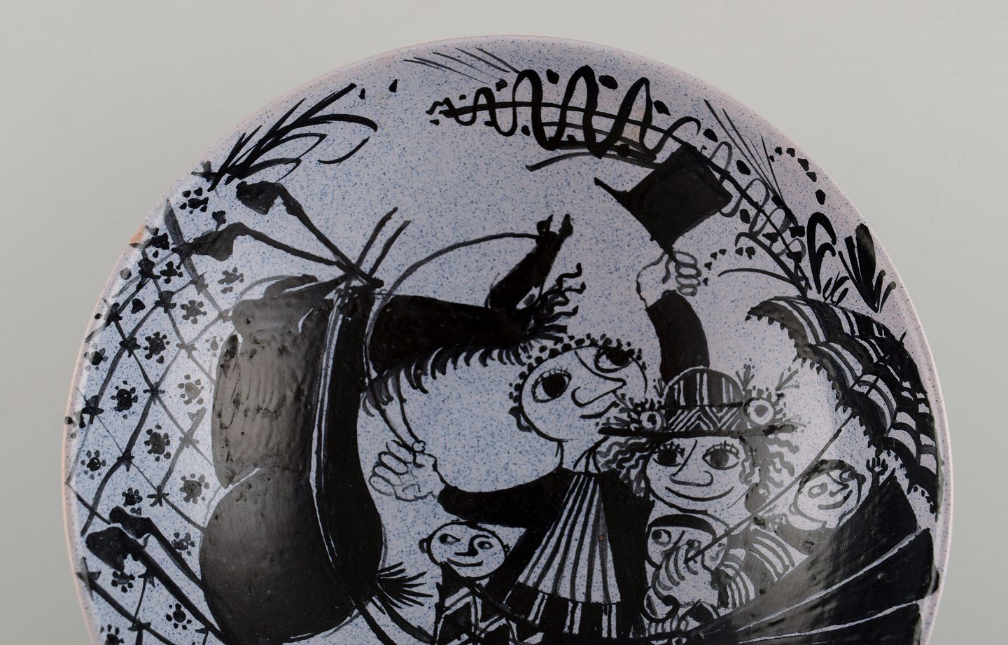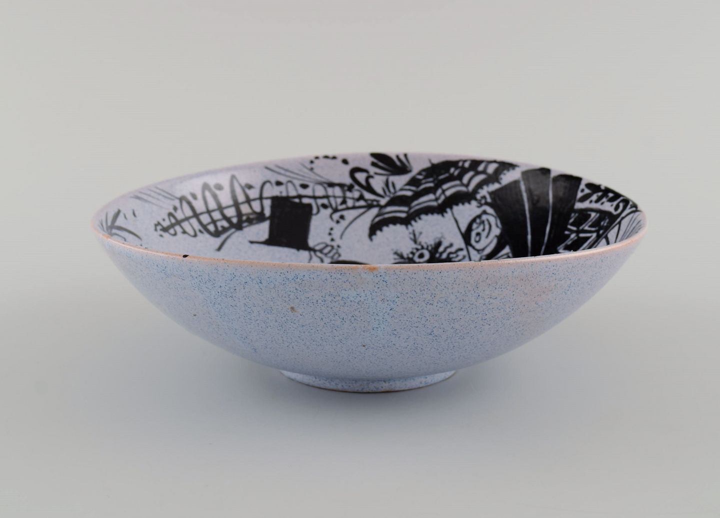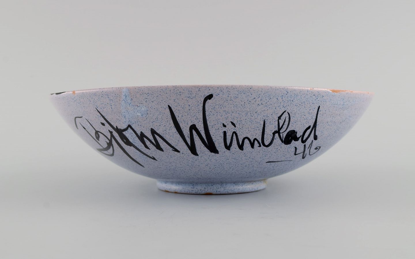 Bjørn Wiinblad (1918-2006), Danmark. Tidlig unika skål i håndmalet og glaseret keramik. Dateret 1946.