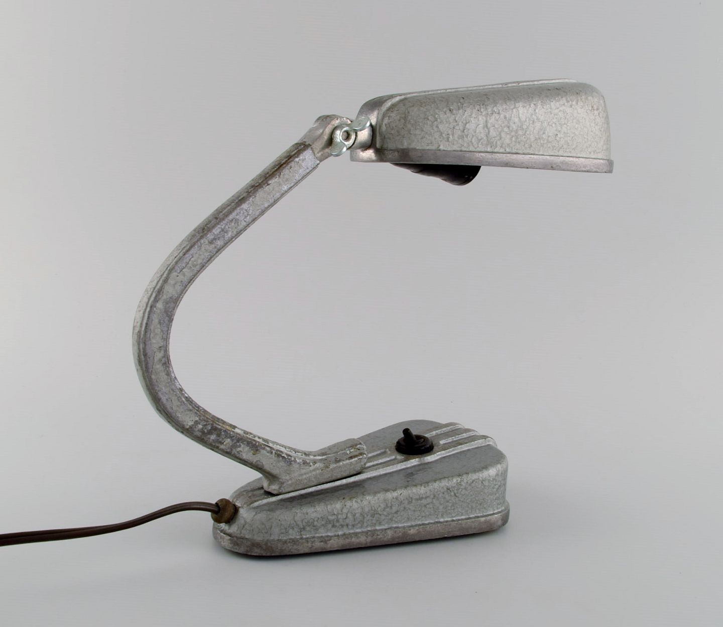 Sjælden art deco skrivebordslampe i original metallisk hammerlak. Industrielt design, midt 1900-tallet.