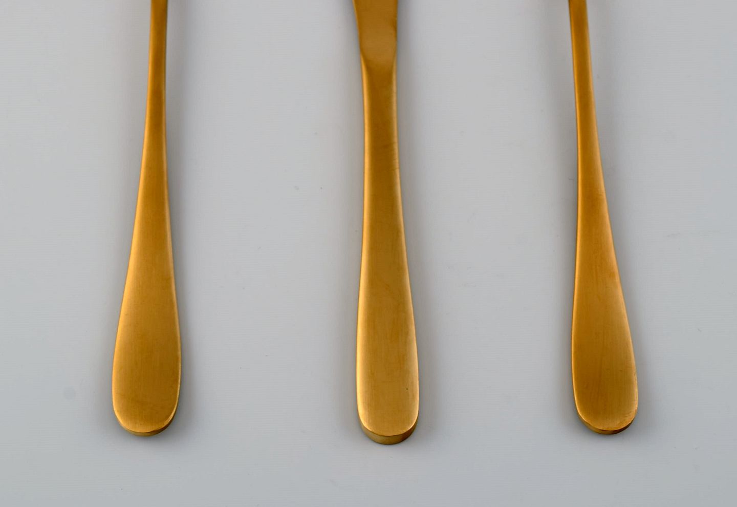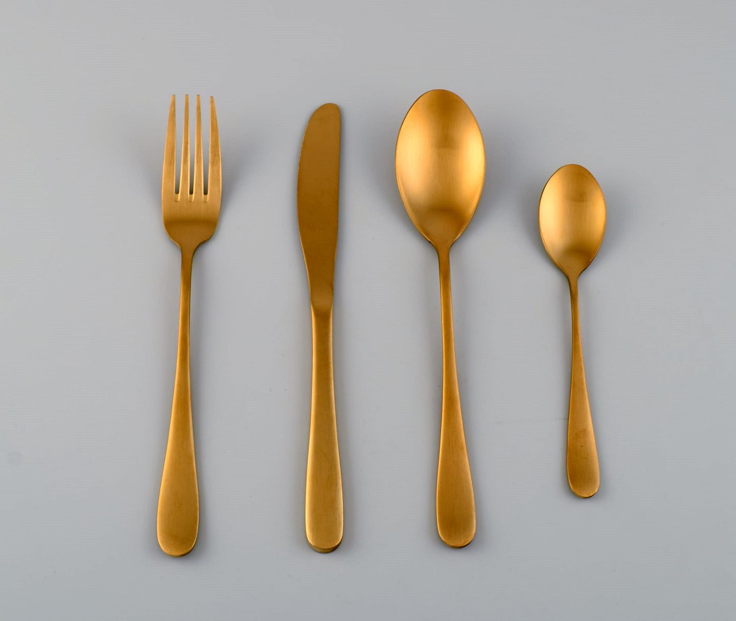 Lagerhaus, Sverige. Middagsservice i børstet messing til tolv personer. Svensk design, 21. Århundrede. Knivlængde: 22.5 cm. I flot stand.
