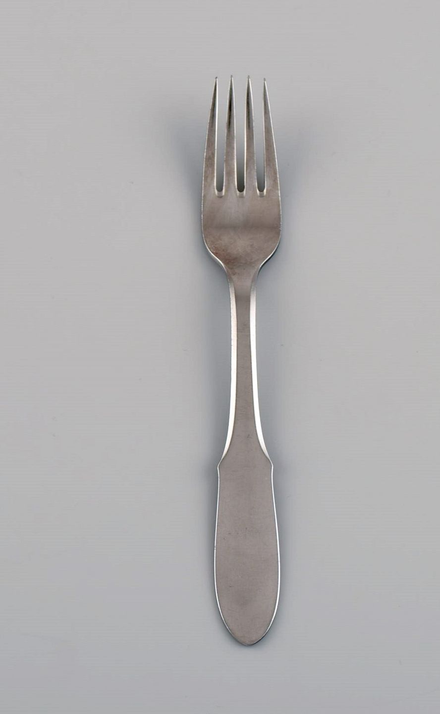 Gundorph Albertus for Georg Jensen. Eight Mitra forks in stainless steel. 1970s. Length: 15 cm. In excellent condition. Stamped.