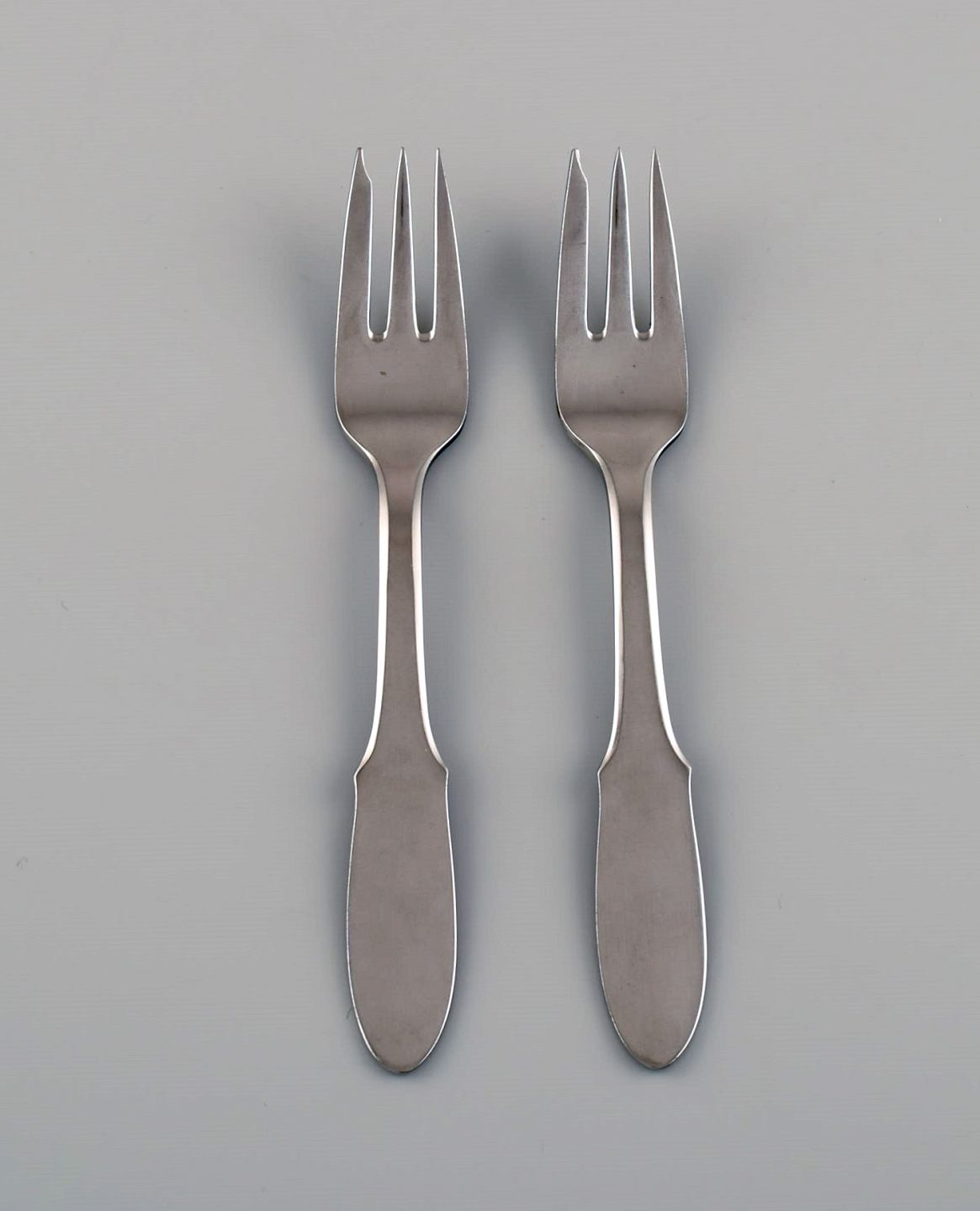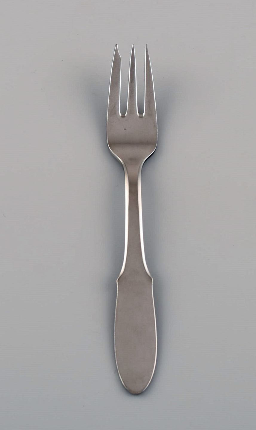 Gundorph Albertus for Georg Jensen. Two Mitra pastry forks in stainless steel. 1970s. Length: 15 cm. In excellent condition. Stamped.