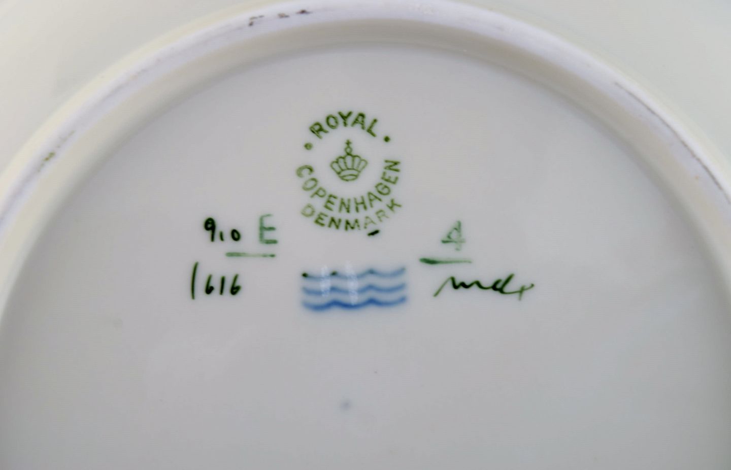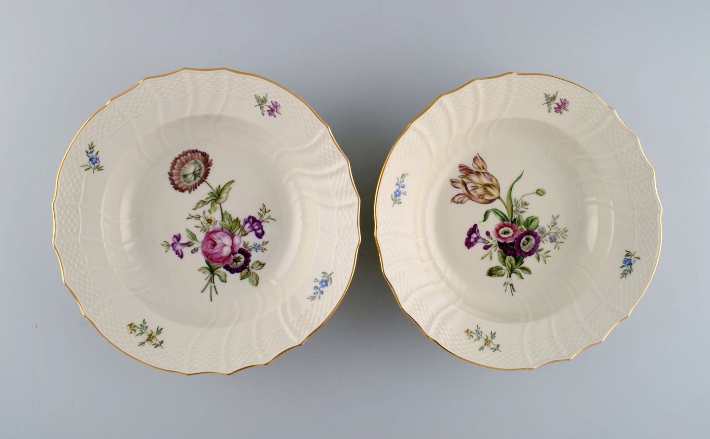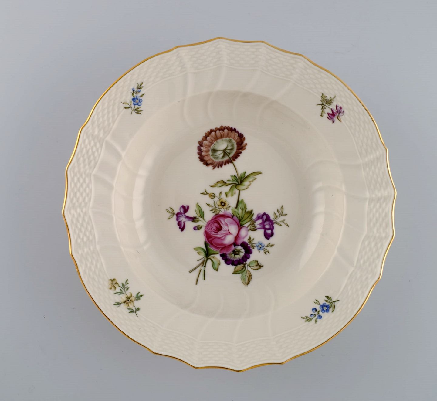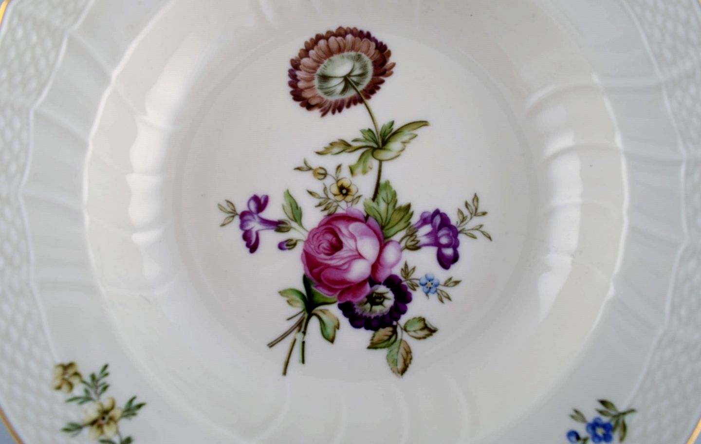 Six Royal Copenhagen Frijsenborg deep plates in hand-painted porcelain with flowers and gold edge. 1950s.