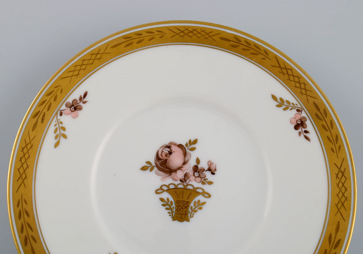 Tolv Royal Copenhagen Guldkurv kagetallerkener i håndmalet porcelæn med blomster og gulddekoration. 1930érne. Modelnummer 595/10522. Diameter: 15,6 cm. I flot stand. Stemplet. 1. Sortering.