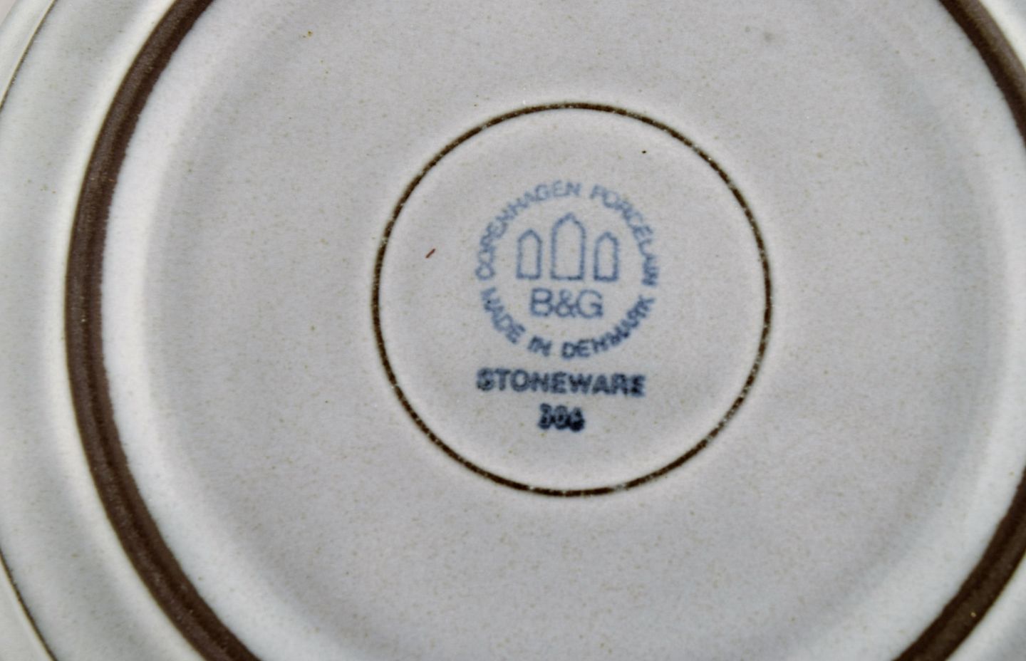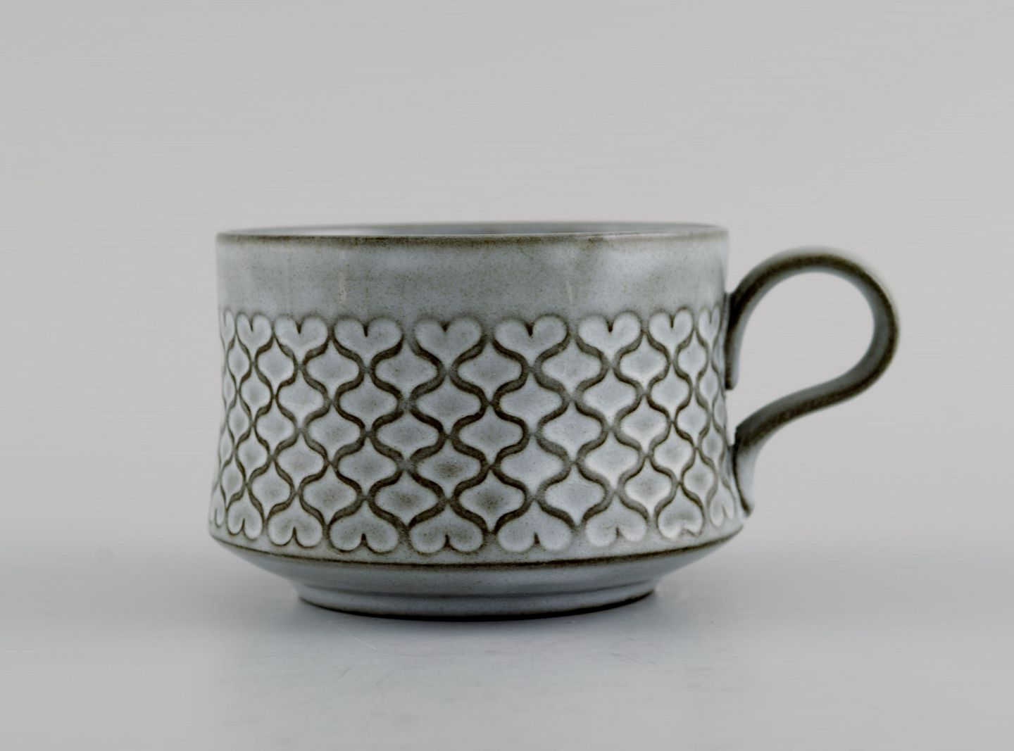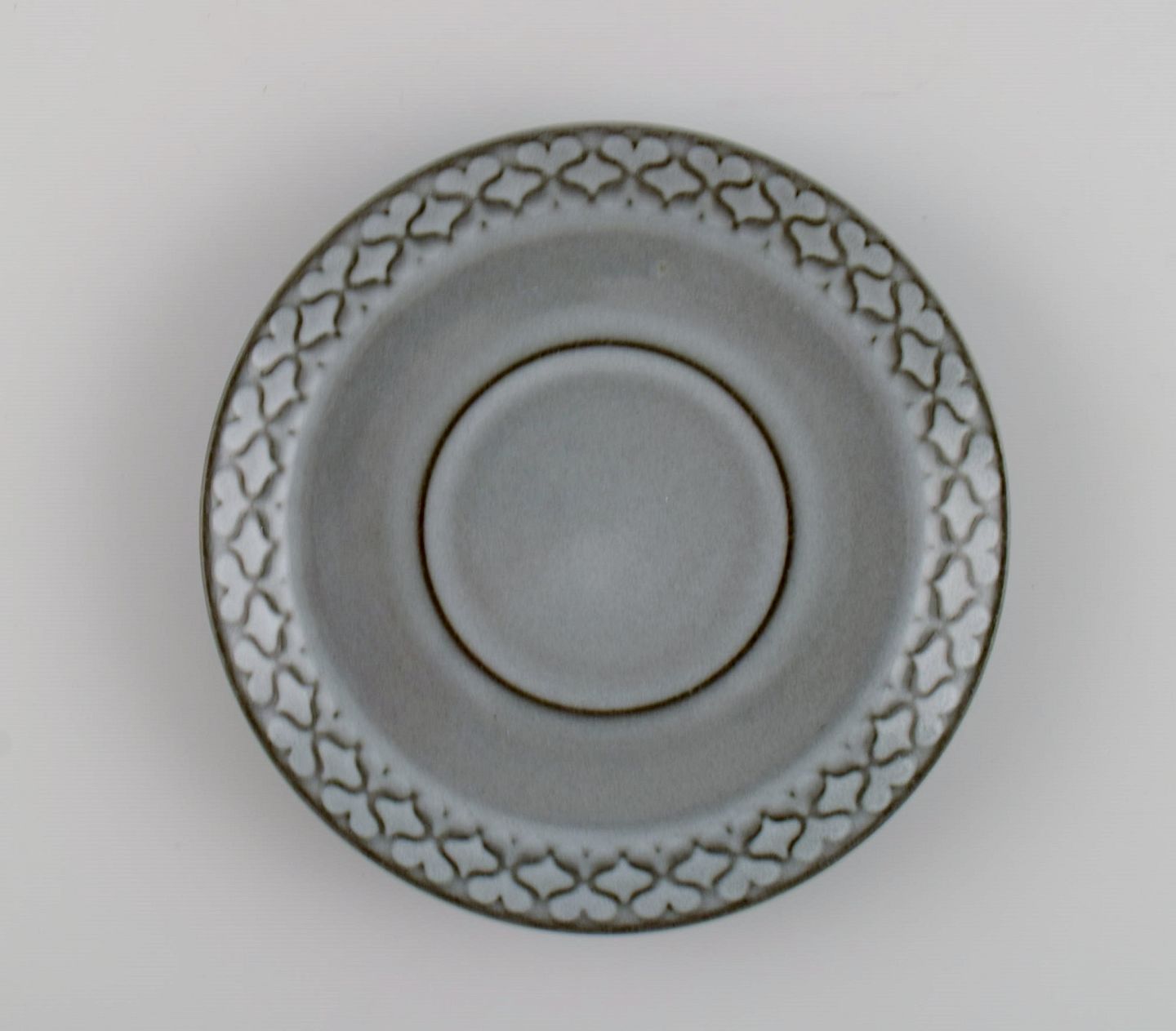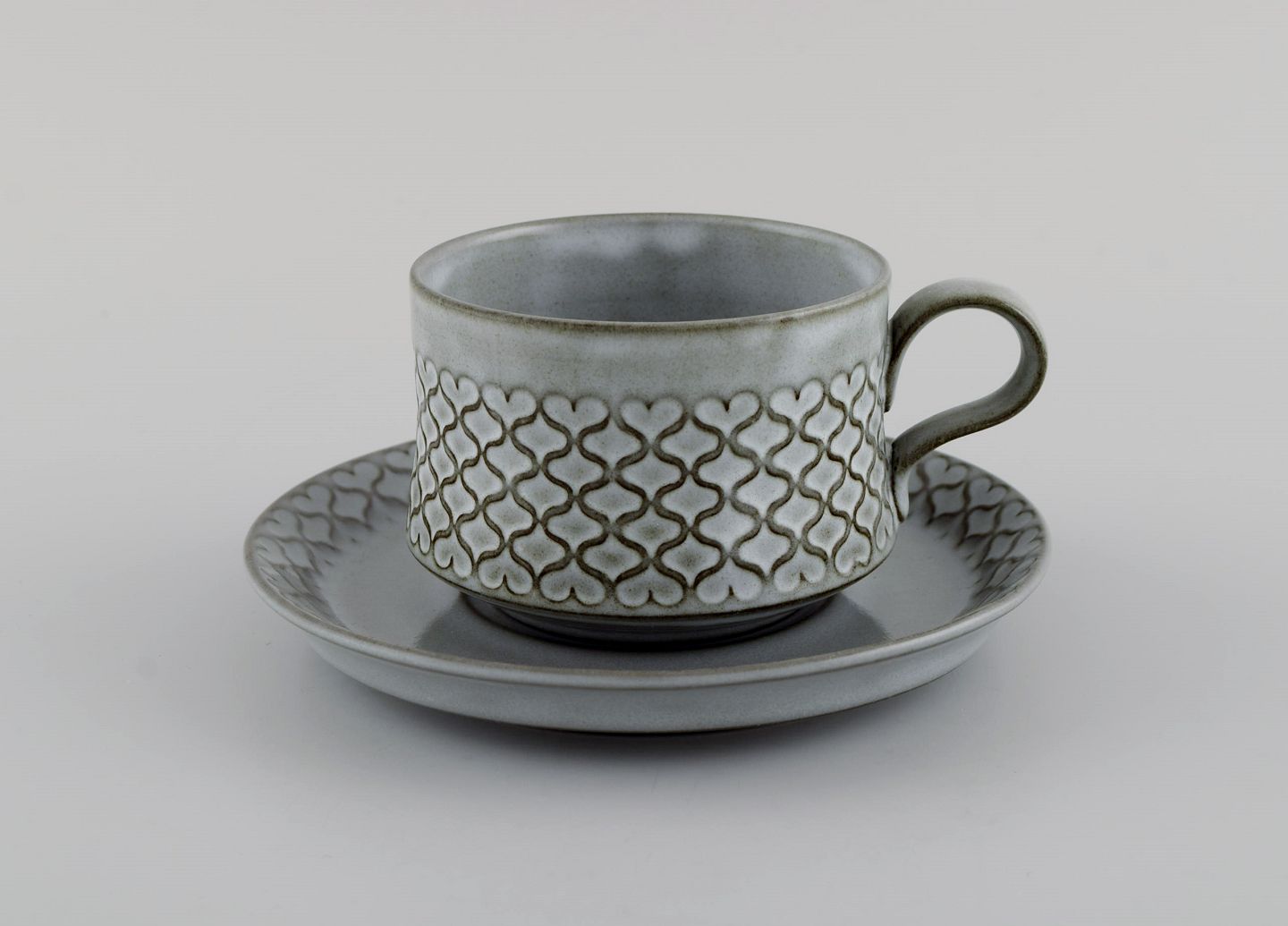 Consisting of five coffee cups with saucers and five plates in glazed stoneware.