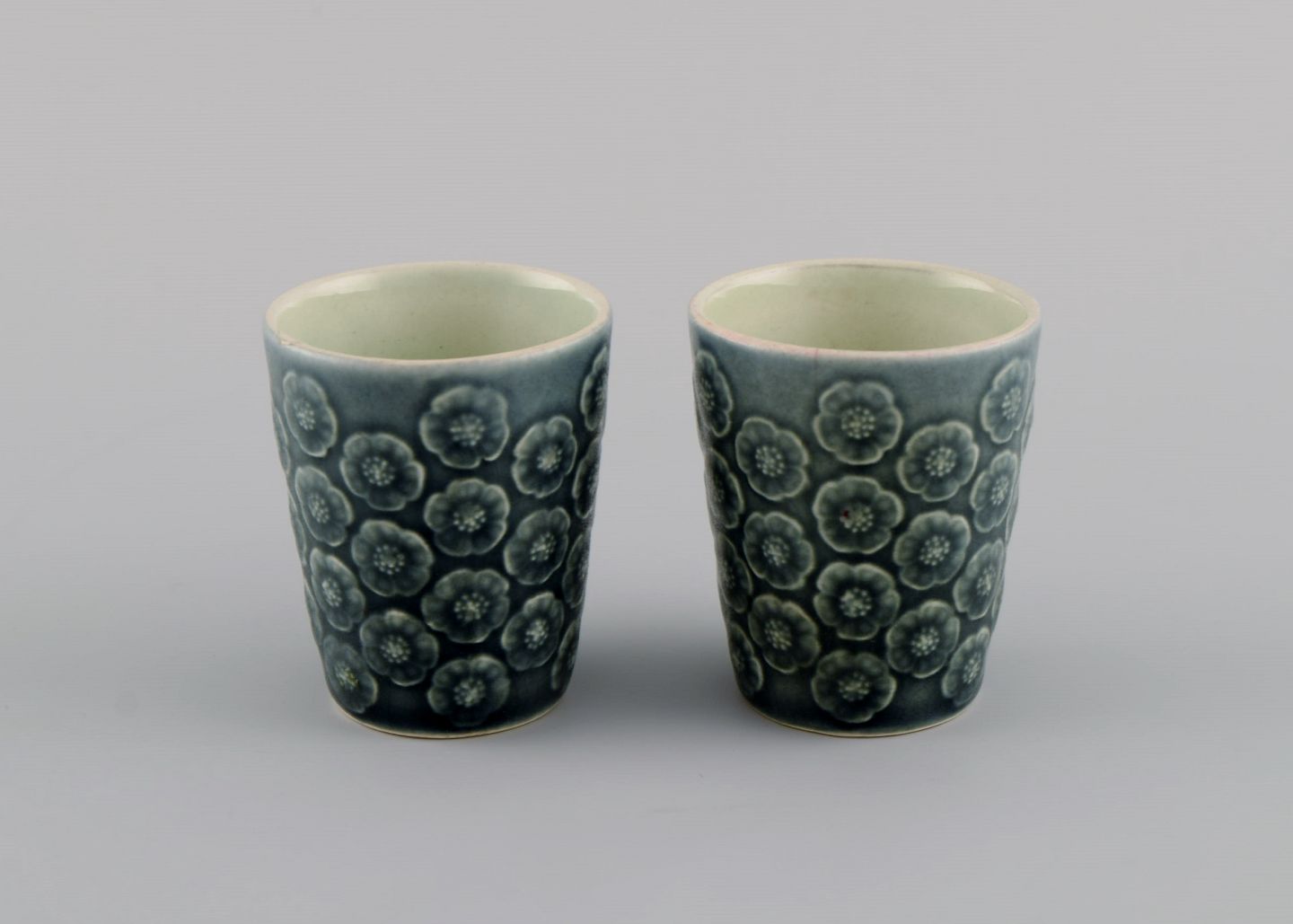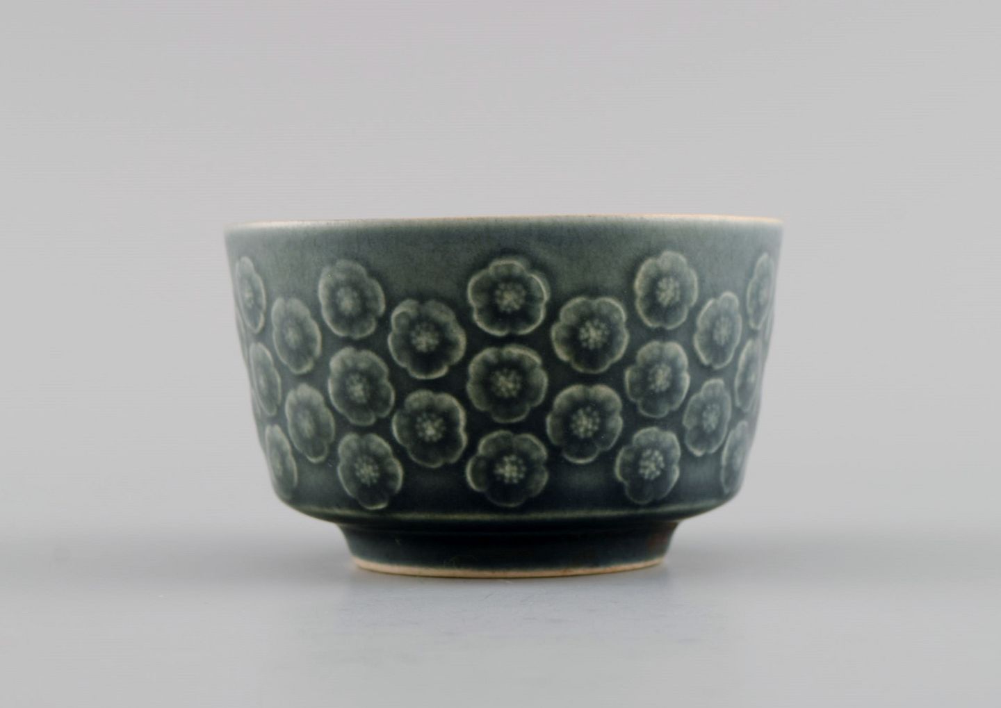 Jens H. Quistgaard (1919-2008) for Nissen Kronjyden. Azur skål, to æggebægre og to små fade i glaseret stentøj. 1960'erne.