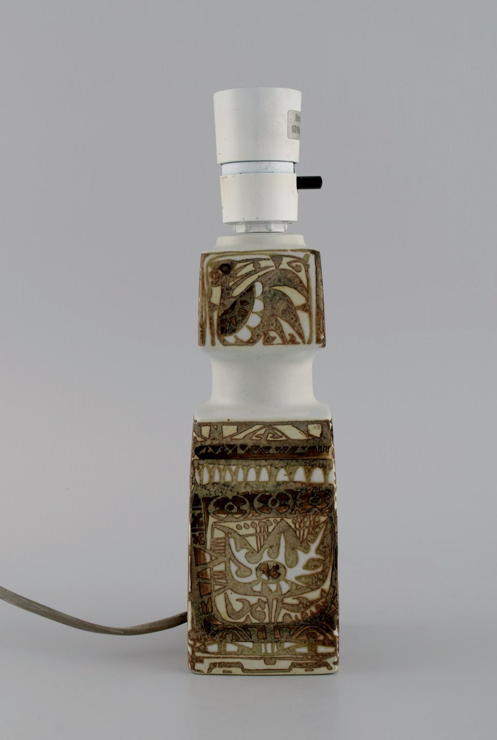 Nils Thorsson og Johanne Gerber for Aluminia, Royal Copenhagen. Baca bordlampe med mønstret glasur i sand og lyse brune nuancer. 1960/70'erne.