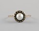 Svensk guldsmed. Vintage art deco ring i 18 karat guld prydet med kulturperle og markasitter. 1920/30'erne.