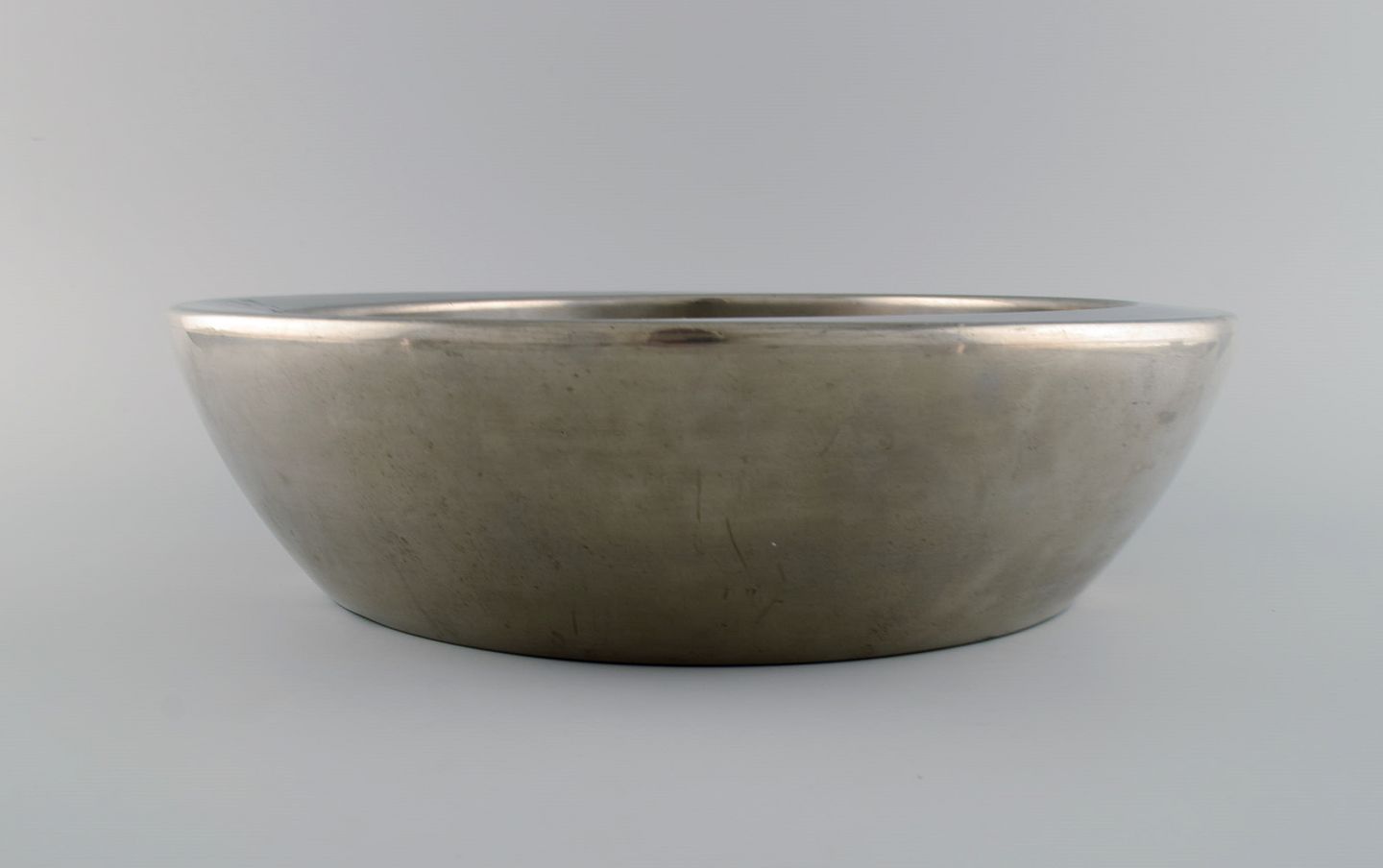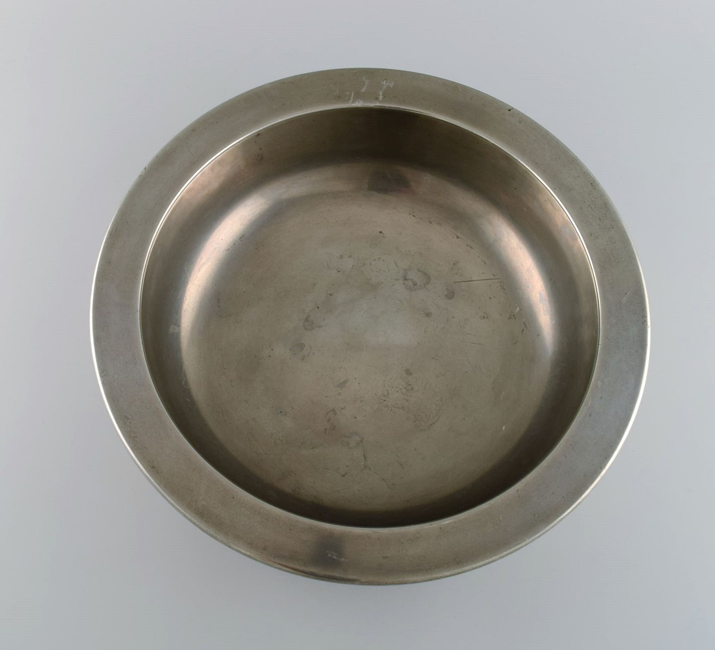 Astrid Fog for Just Andersen. Stor modernistisk tin skål. Stilrent design, midt 1900-tallet. Måler: 35 x 9,5 cm. I flot stand. Stemplet.