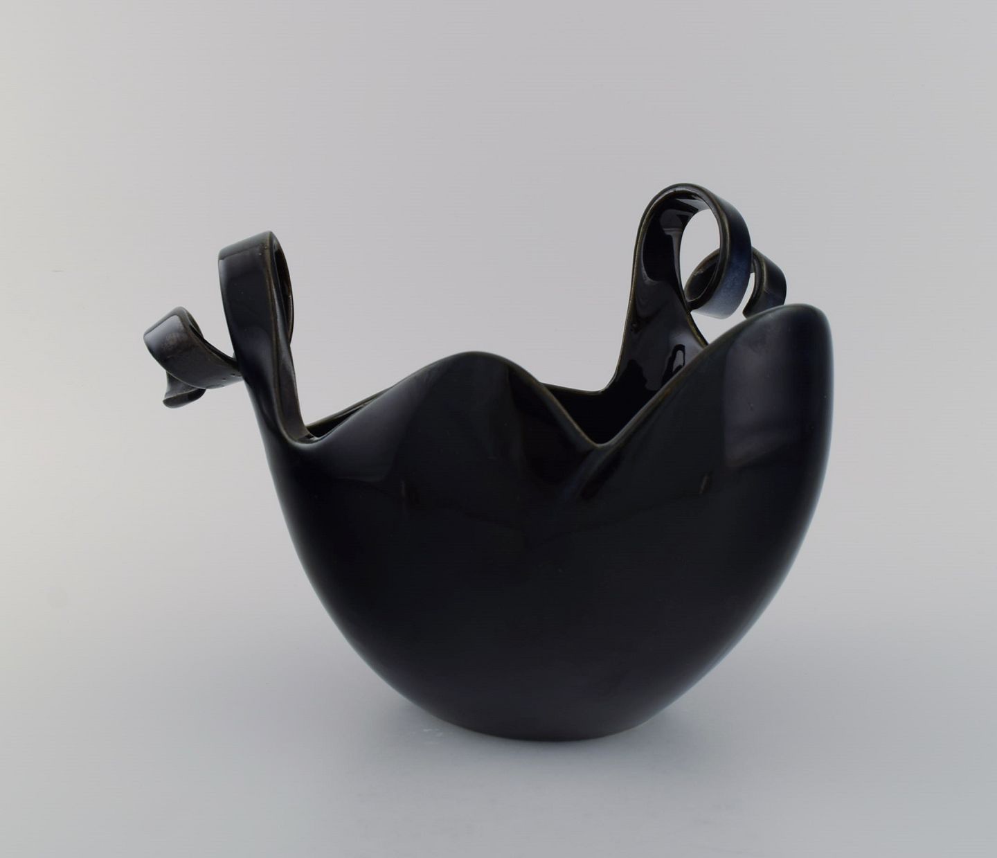 Claydies for Kähler. Primadonna skål i sort glaseret keramik modeleret med krøllede hanke. 21. århundrede.