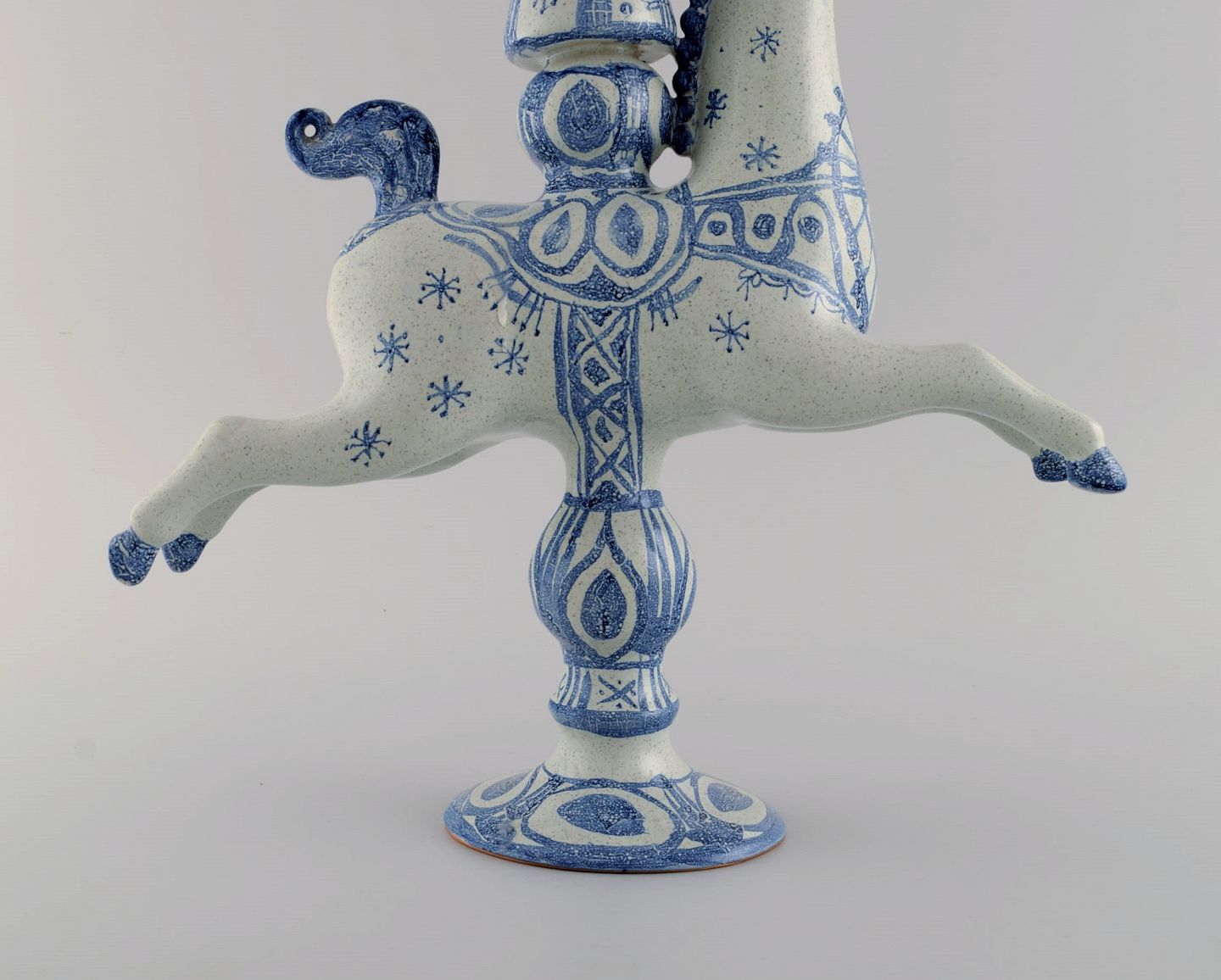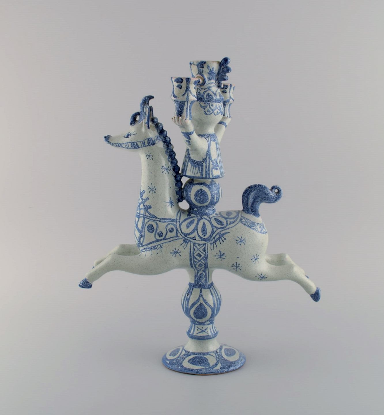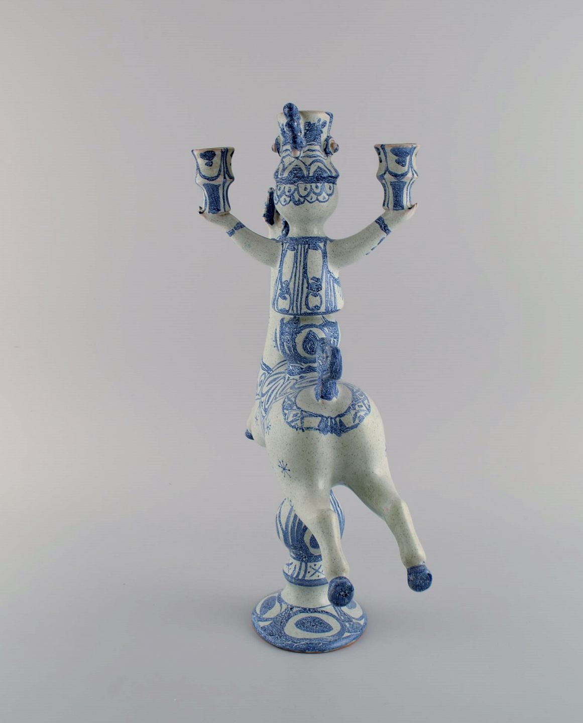 Bjørn Wiinblad (1918-2006), Danmark. Stor unika figur/lysestage i håndmalet keramik. Rytter til hest. Dateret 1963. Måler: 39 x 30 cm. I flot stand. Signeret og dateret Modelnummer L5.