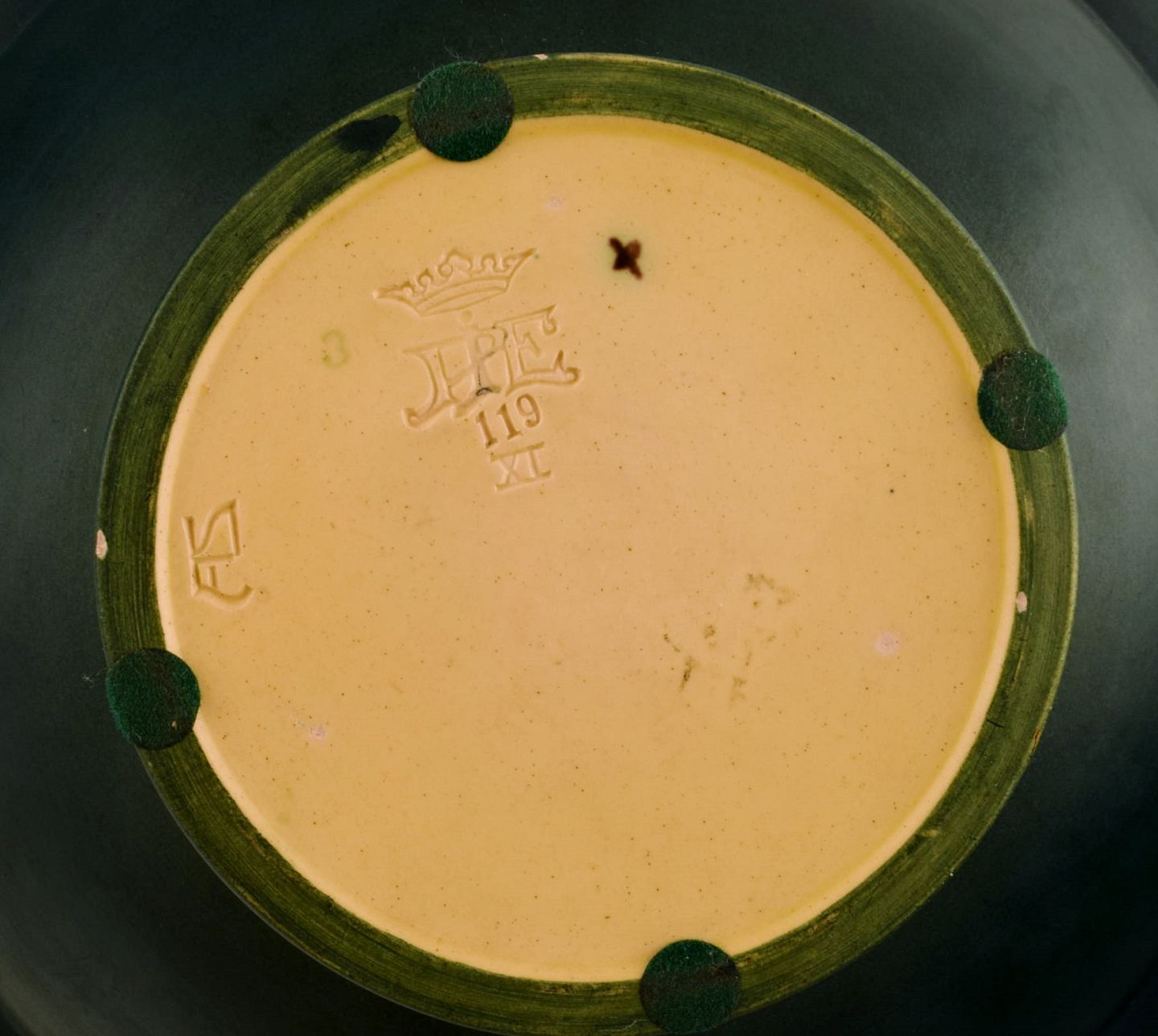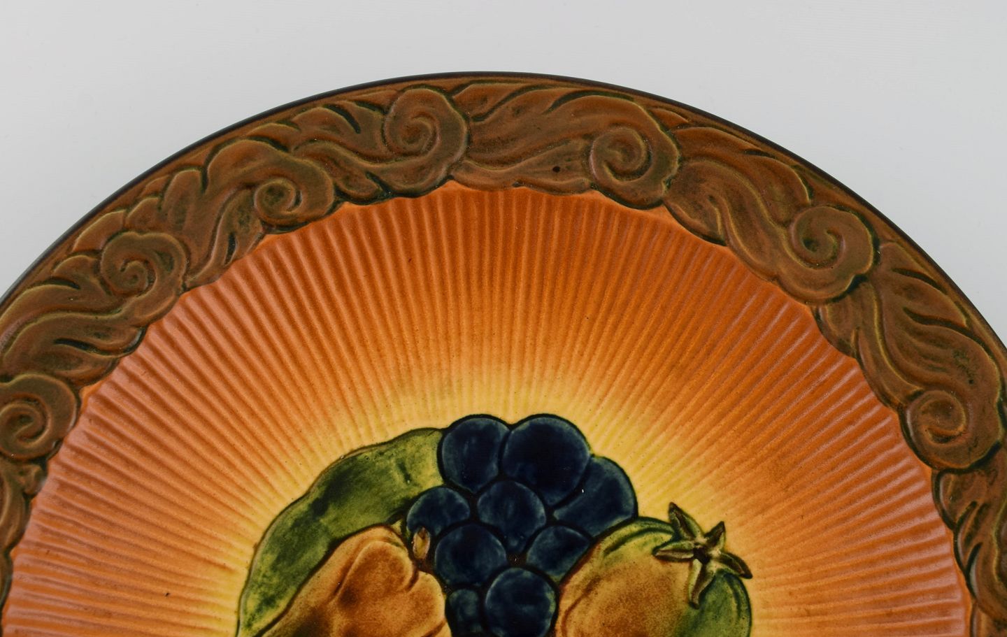 Ipsens enke, Danmark. Rund skål / fad i glaseret keramik med håndmalede frugter. 1920/30'erne. Modelnummer 119. Måler: 29 x 6 cm. I flot stand. Stemplet.