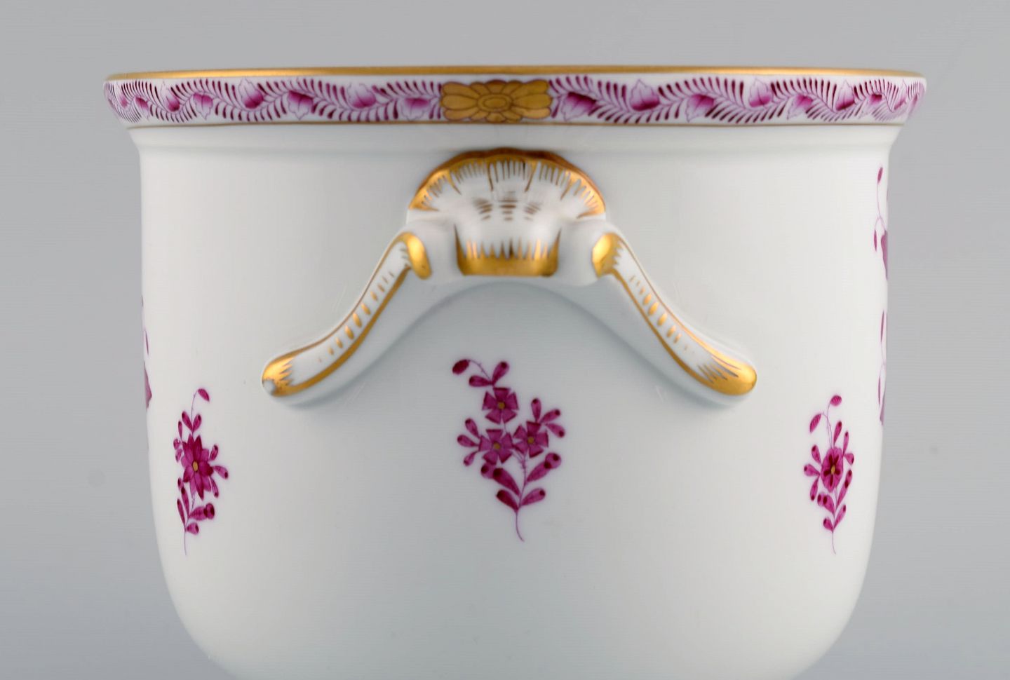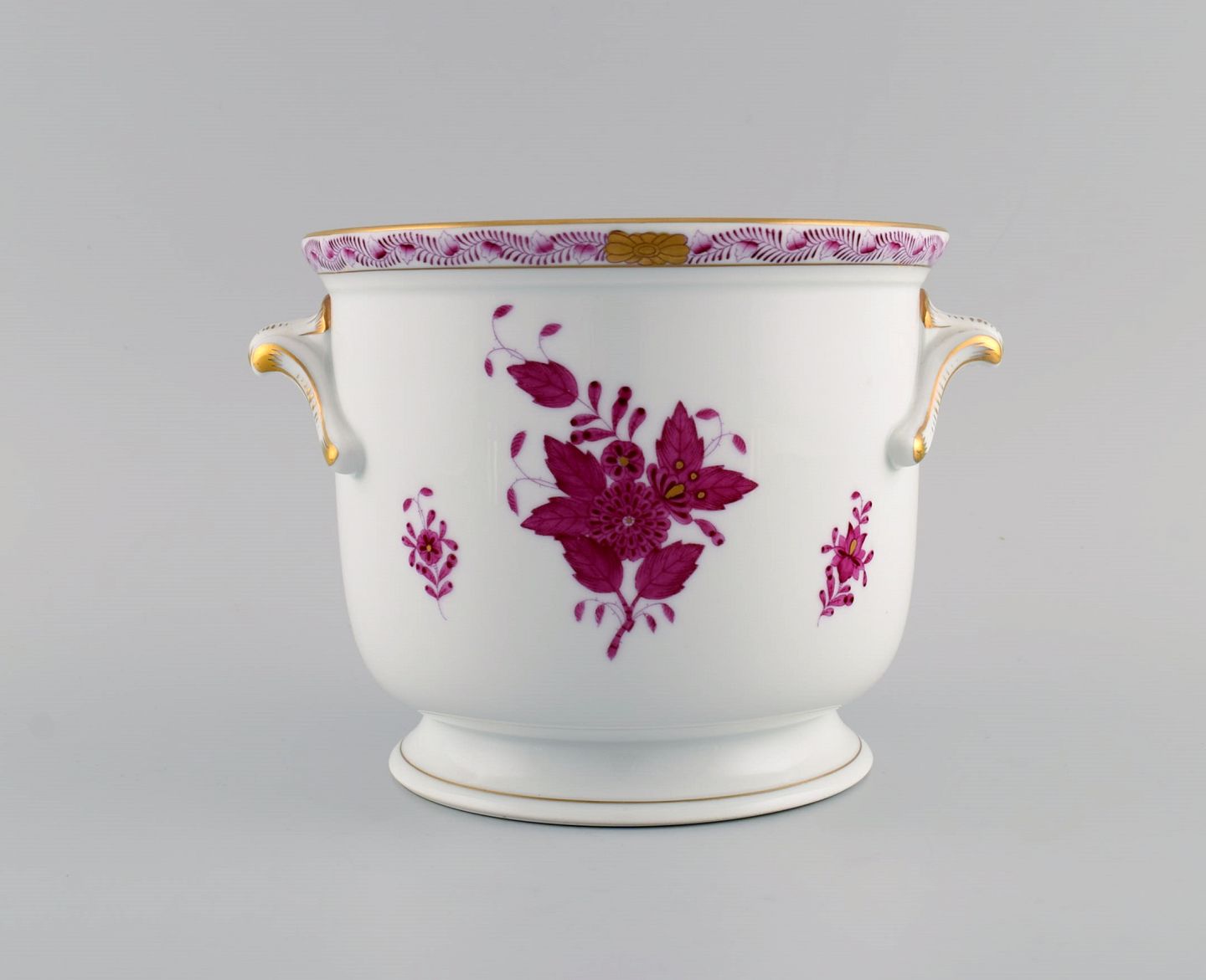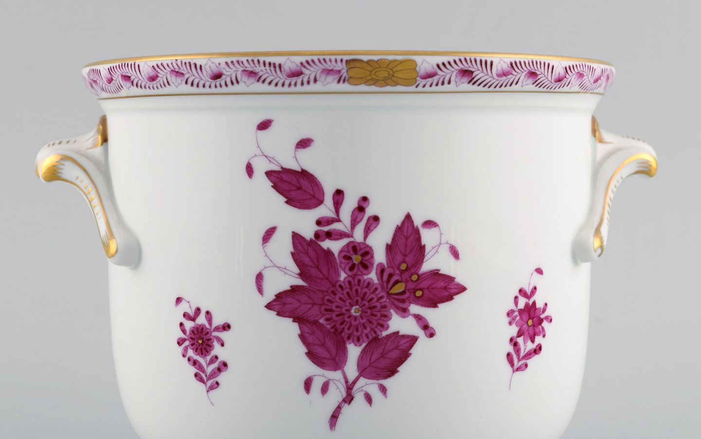 Herend Chinese Bouquet Raspberry. To vinkølere i håndmalet porcelæn modeleret med hanke. Lyserøde blomster og gulddekoration. Midt 1900-tallet. Måler: 20 x 14 cm. I flot stand. Stemplet.