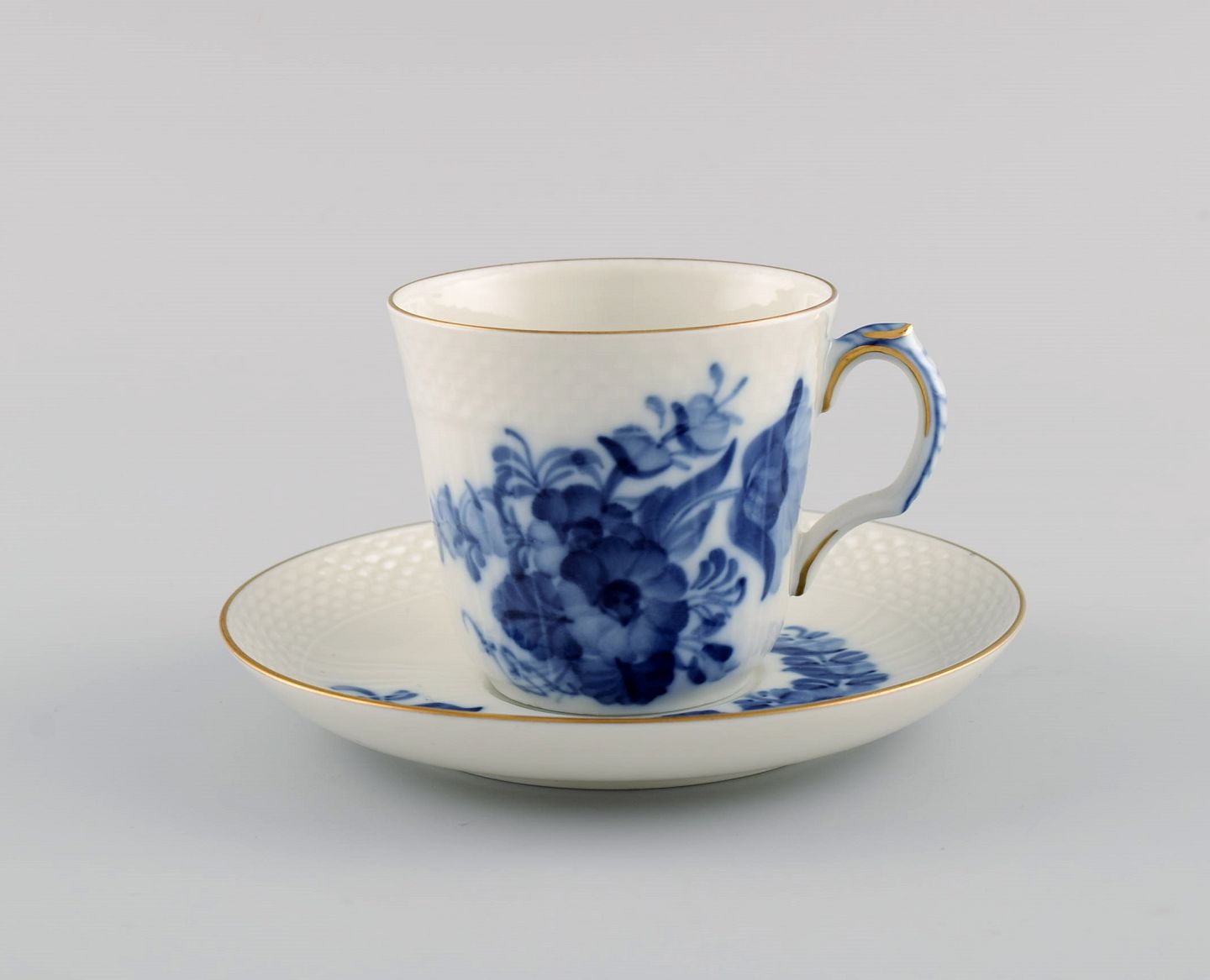 11 Royal Copenhagen Blå Blomst Svejfet mokkakopper og underkopper med guldkant. 1970'erne. Modelnummer 10/1546.
