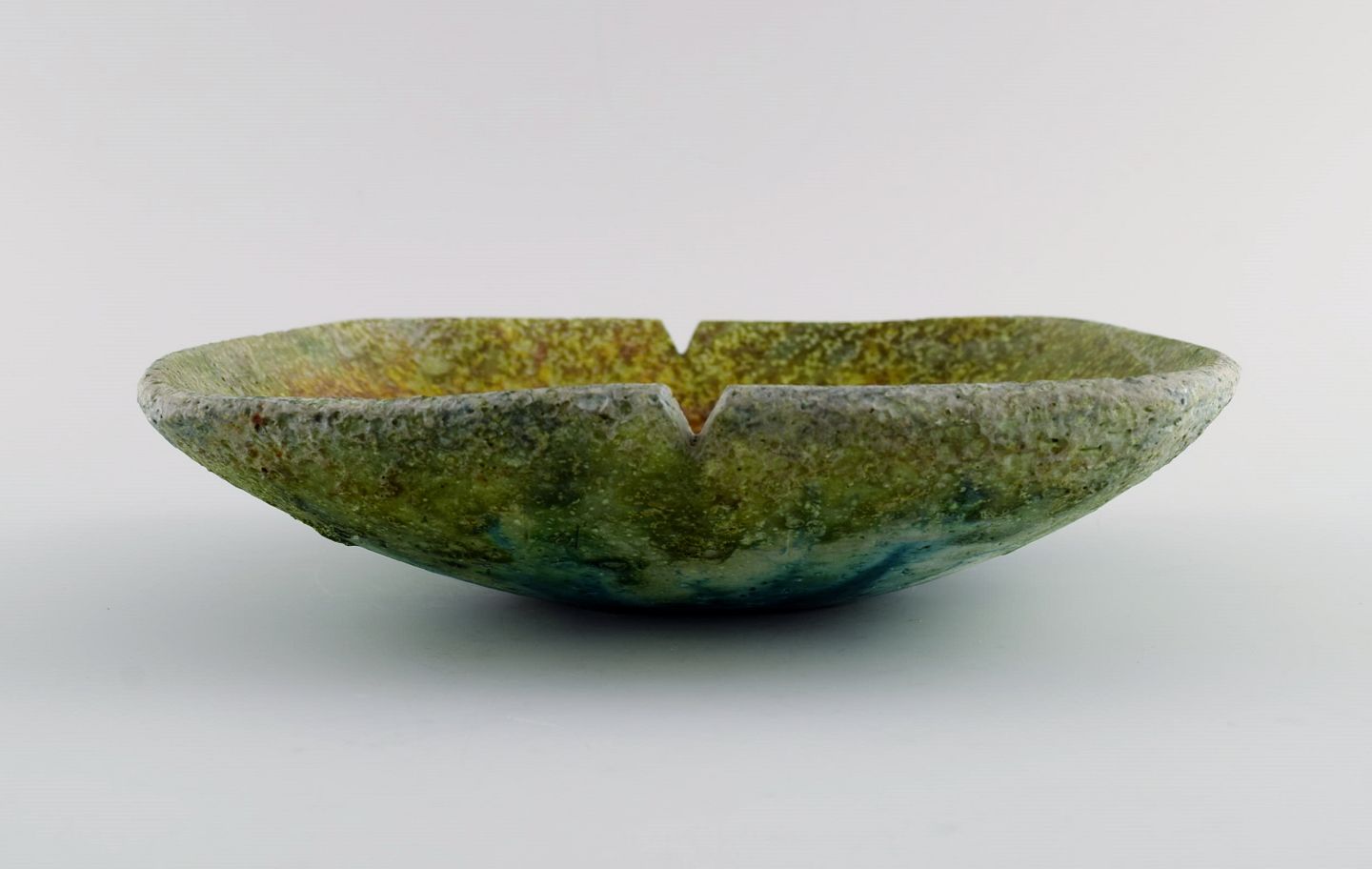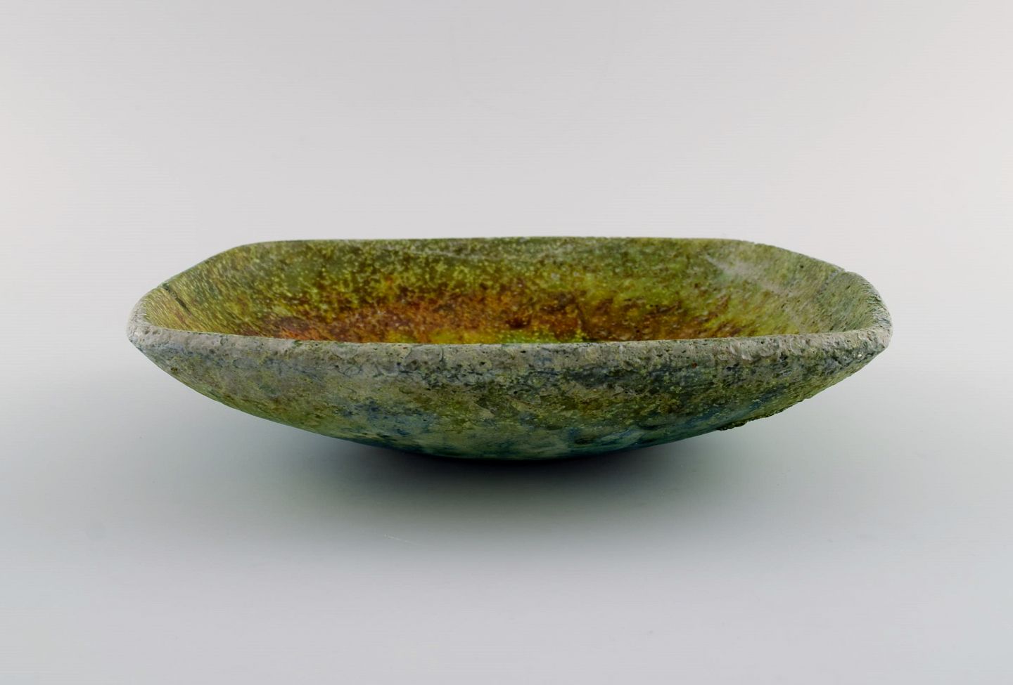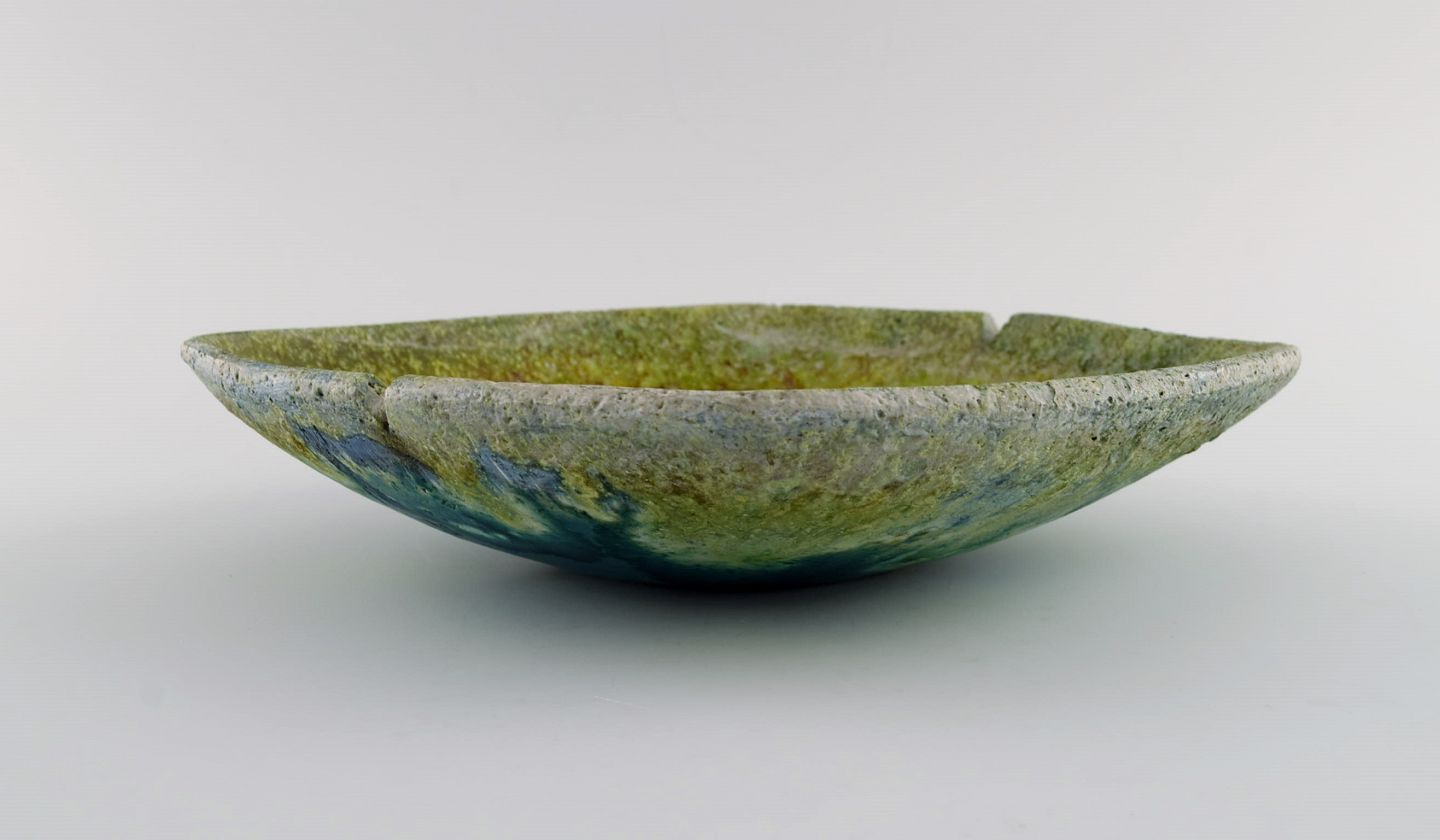 Marcello Fantoni (f.1915), Italien. Unika skål i glaseret keramik. Smuk glasur i grønne og blå nuancer. 1960'erne. Måler: 23 x 5,5 cm. I flot stand. Signeret.