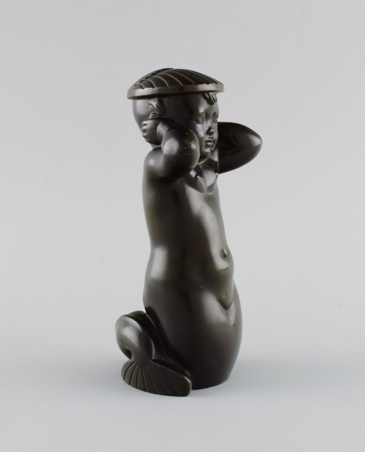 Arno Malinowski for Just Andersen. Sjælden figur i diskometal. Havdreng. 1940'erne. Modelnummer D2328.