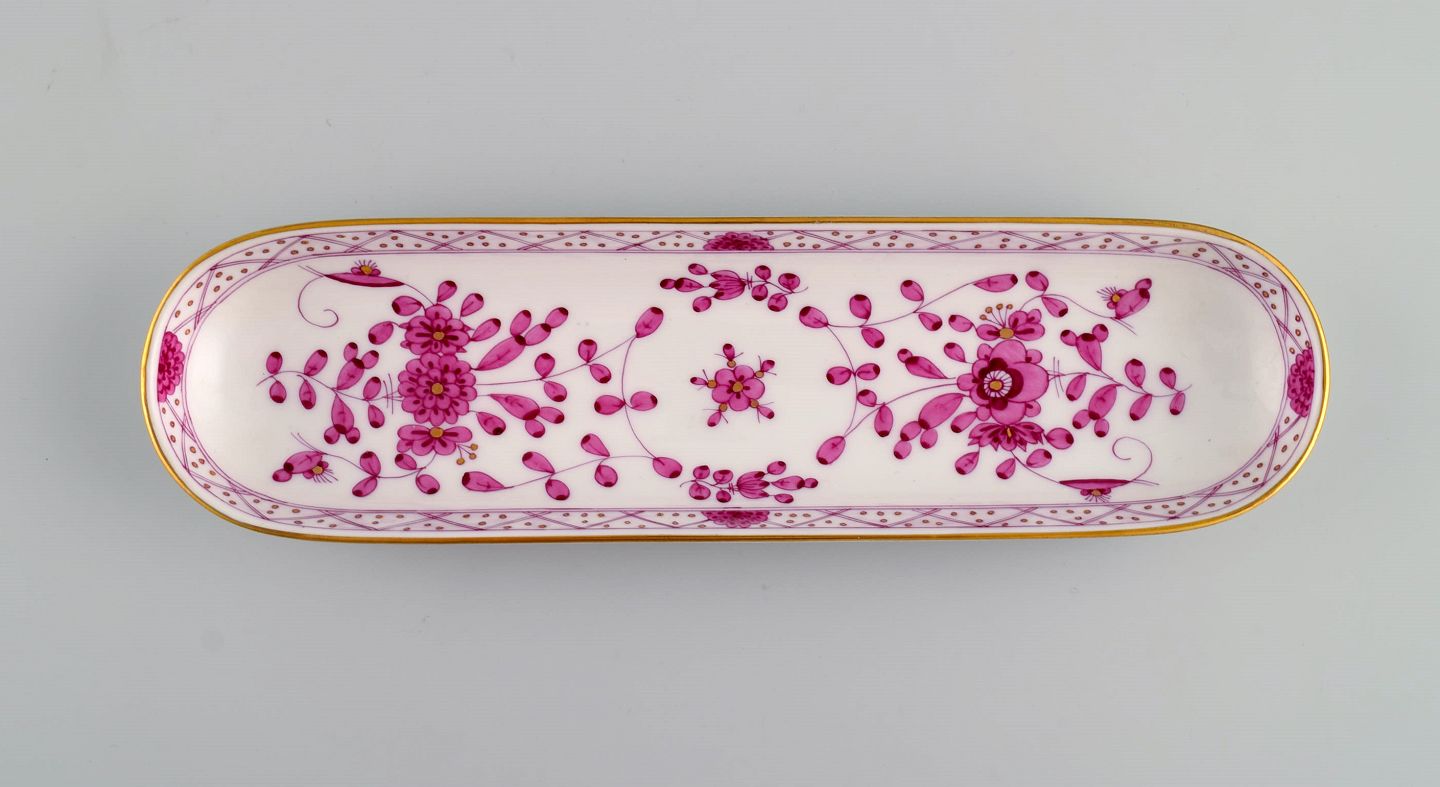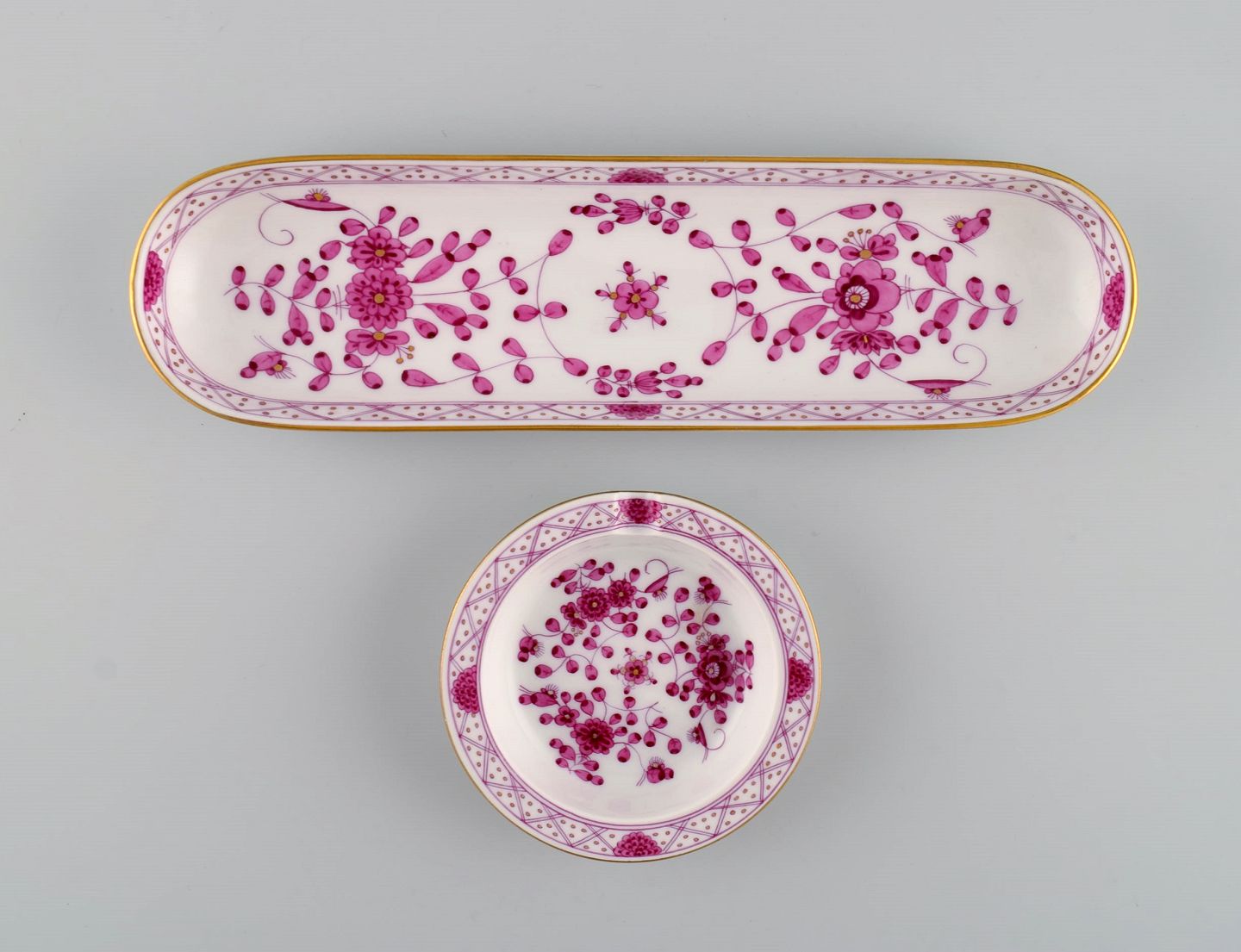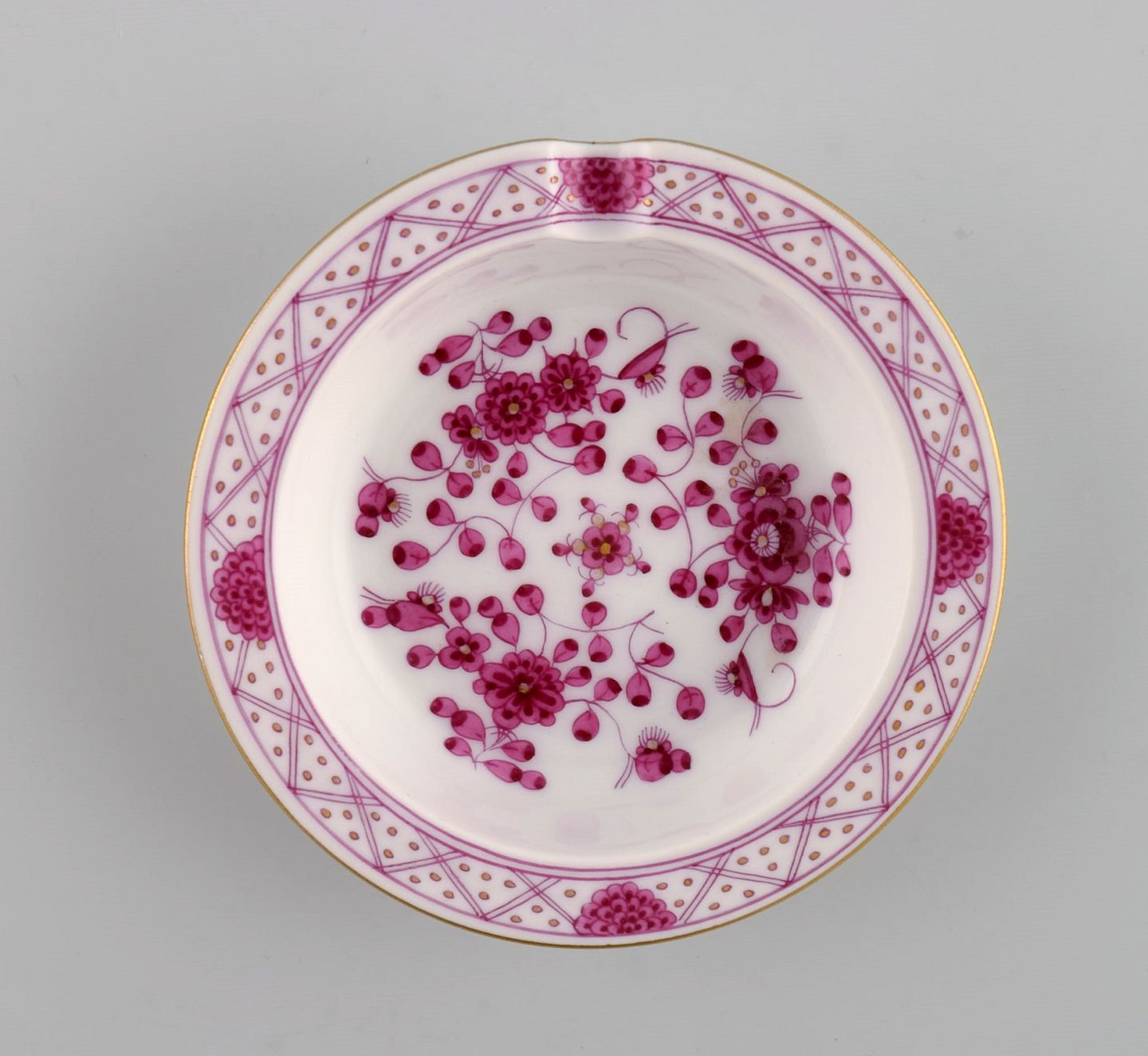Meissen Pink Indian pennebakke og askebæger i håndmalet porcelæn. Lyserøde blomster og gulddekoration. Tidligt 1900-tallet.