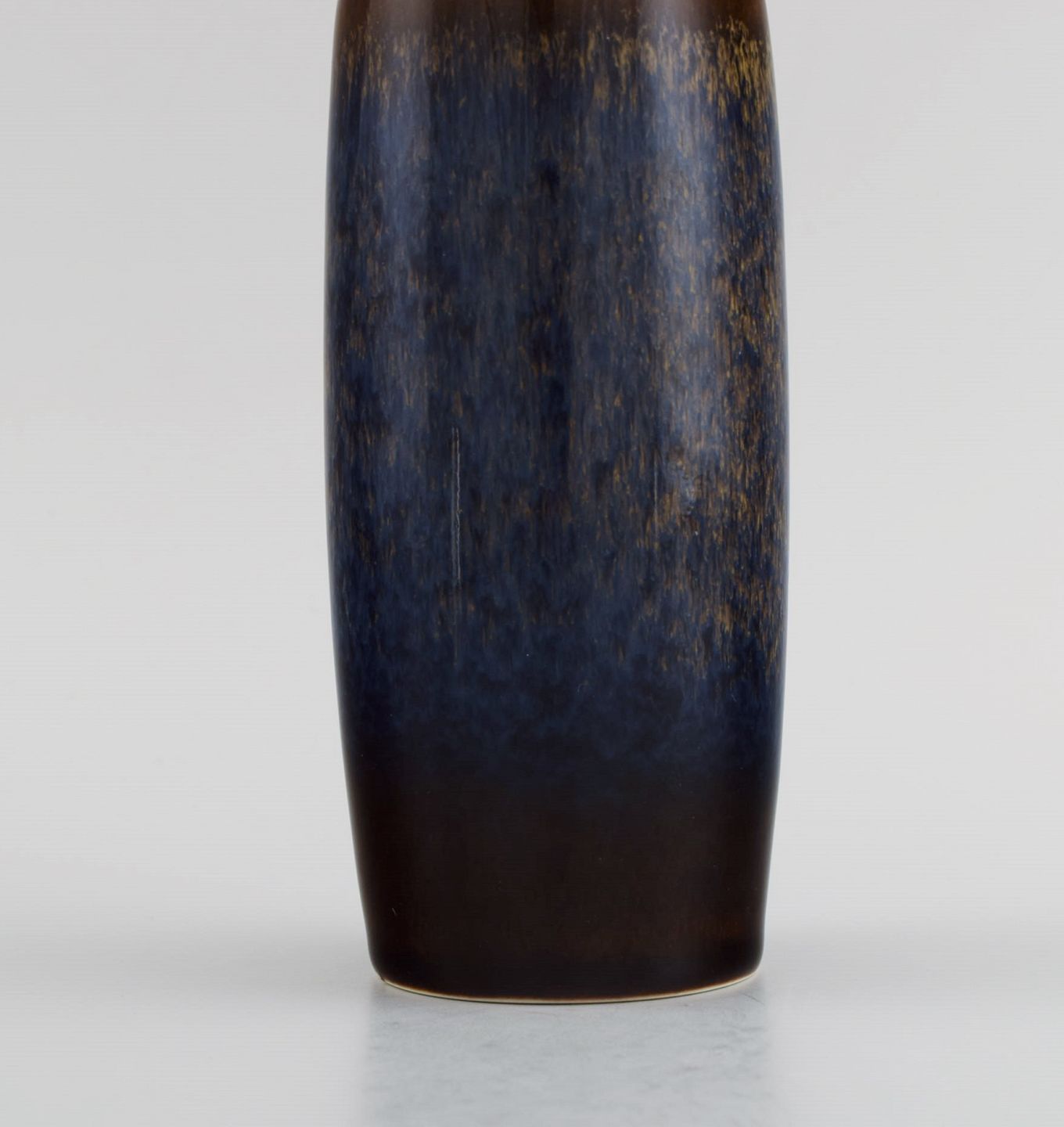 Carl Harry Stålhane (1920-1990) for Rörstrand. Vase i glaseret keramik. Smuk spættet glasur i brune og dybe blå nuancer. Midt 1900-tallet. Måler: 17,5 x 6,5 cm. I flot stand. Signeret. 1. Sortering.