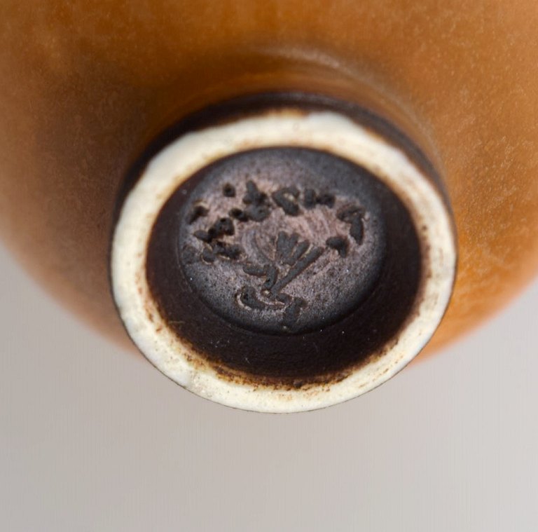 Berndt Friberg (1899-1981) for Gustavsberg Studiohand. Miniature vase / skål i glaseret keramik. Smuk glasur i lyse brune nuancer. 1960/70'erne.