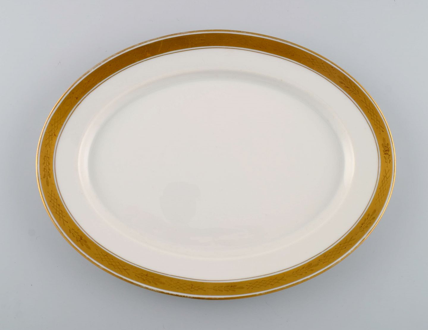 Royal Copenhagen stel nr. 607. To ovale porcelænsfade. Guldkant med bladværk. 1940'erne. Største måler: 28 x 21 cm. I flot stand. Stemplet. 1. Sortering.