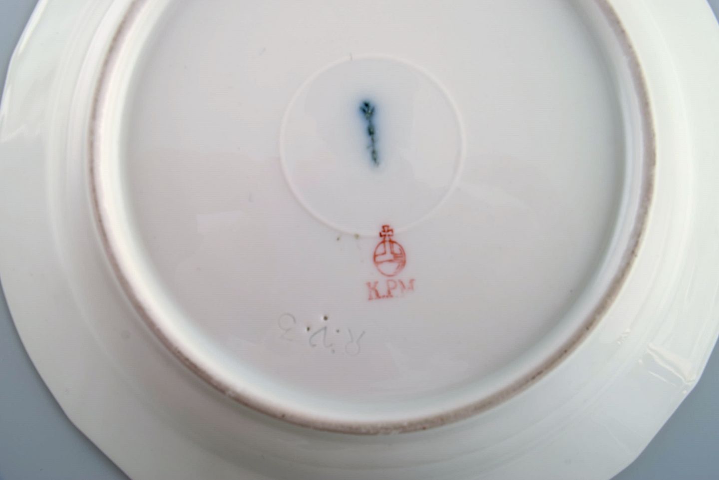 KPM, Berlin. To antikke tallerkener i svejfet porcelæn med håndmalede blomster og gulddekoration. Sent 1800-tallet. Diameter: 19 cm. I flot stand. Stemplet.