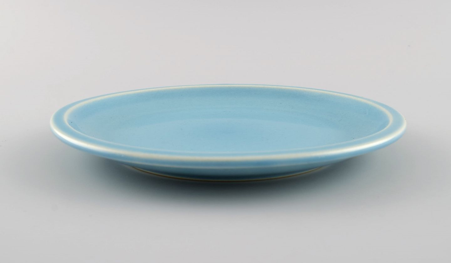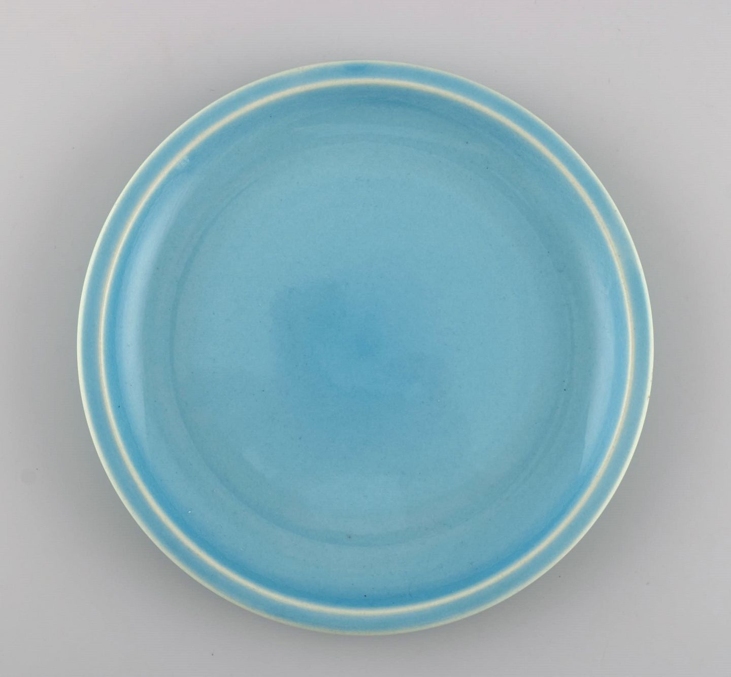 Jens H. Quistgaard (1919-2008) for Bing & Grøndahl. Fem Tema tallerkener i glaseret stentøj. Sjælden turkis glasur. 1960/70'erne. Diameter: 19 cm. I flot stand. Stemplet.