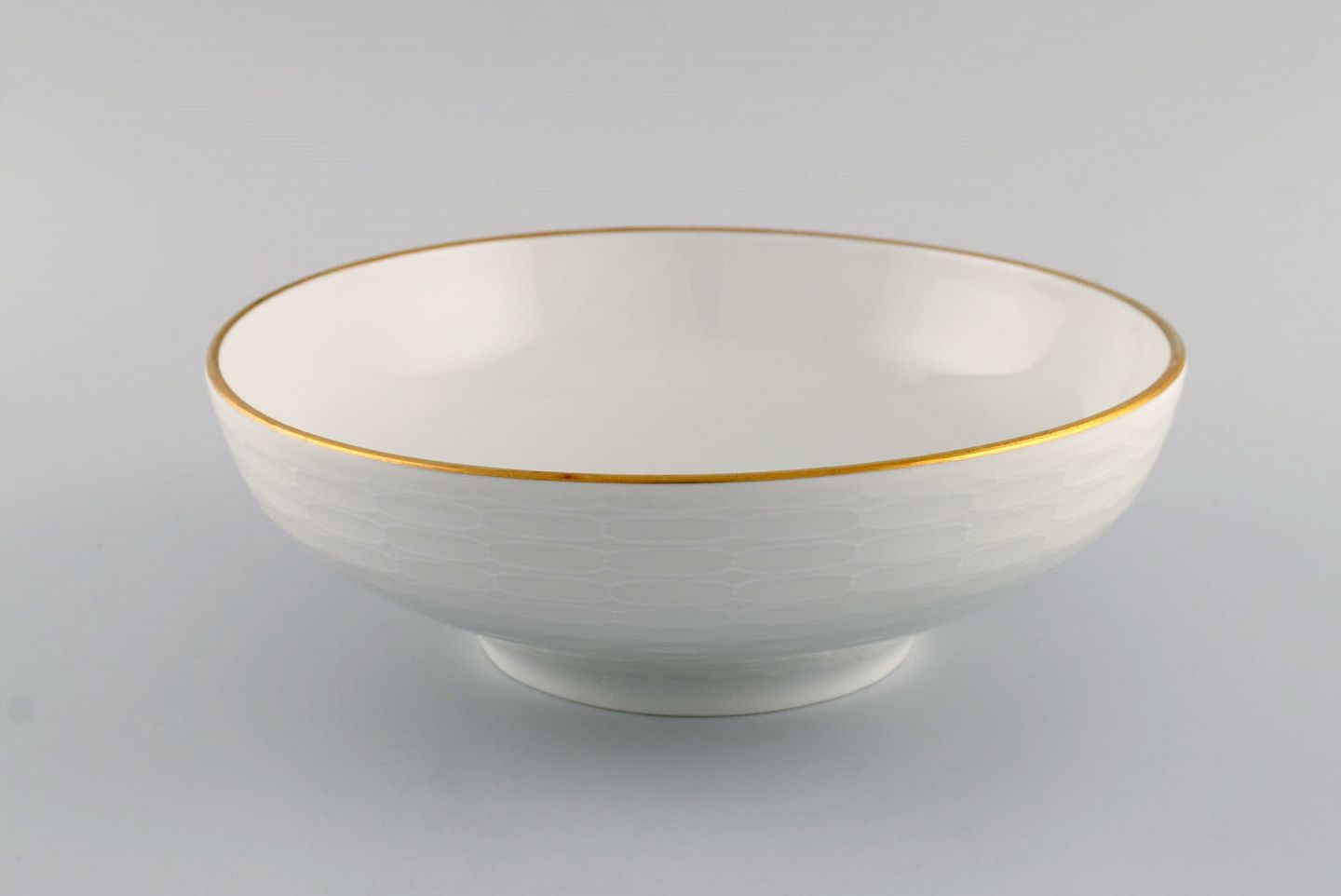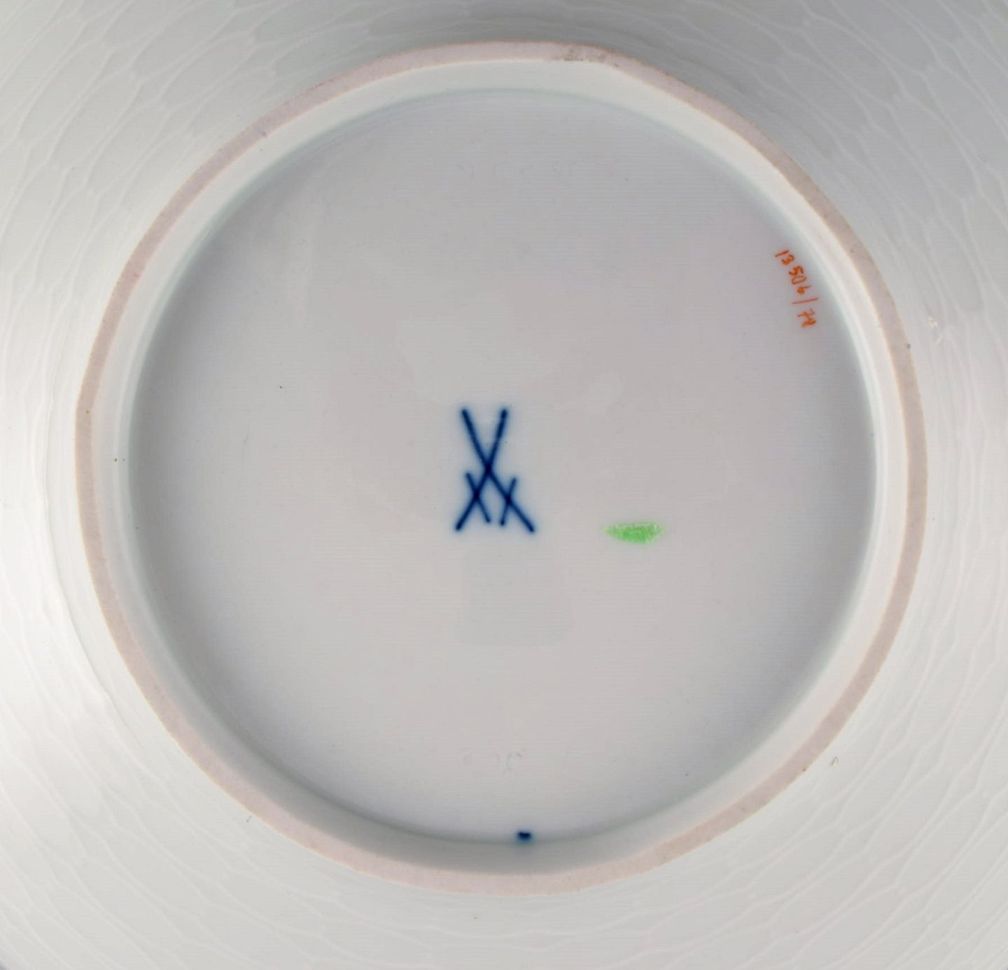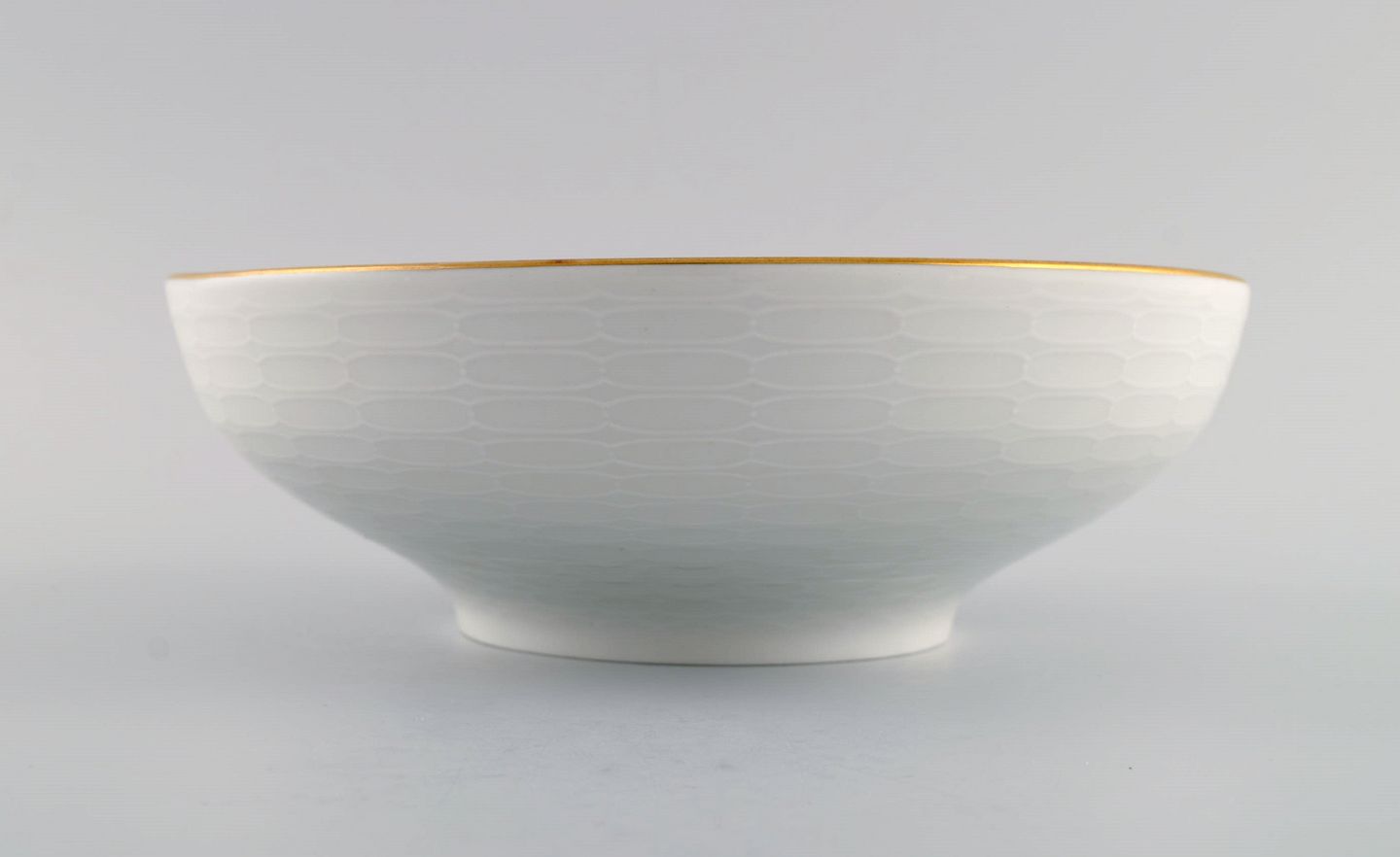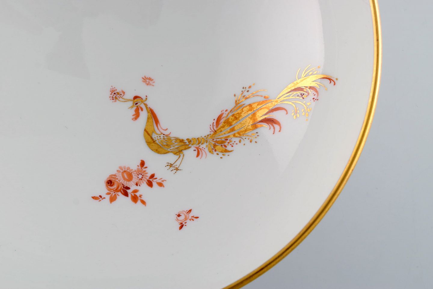 Sjælden art deco Meissen porcelænsskål med håndmalede påfugle og gulddekoration. 1930'erne. Måler: 21 x 7 cm. I flot stand. Signeret. 3. Sortering.