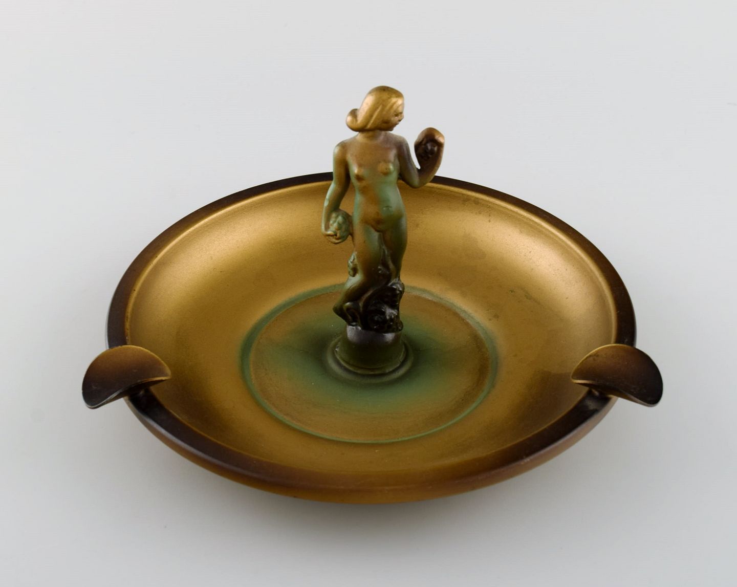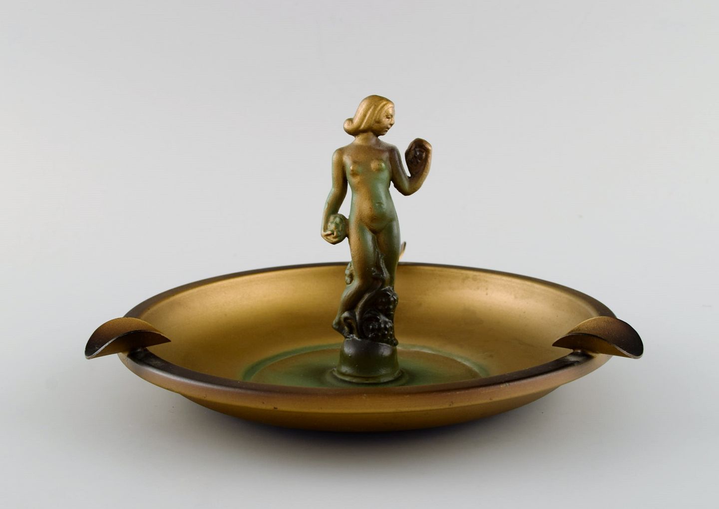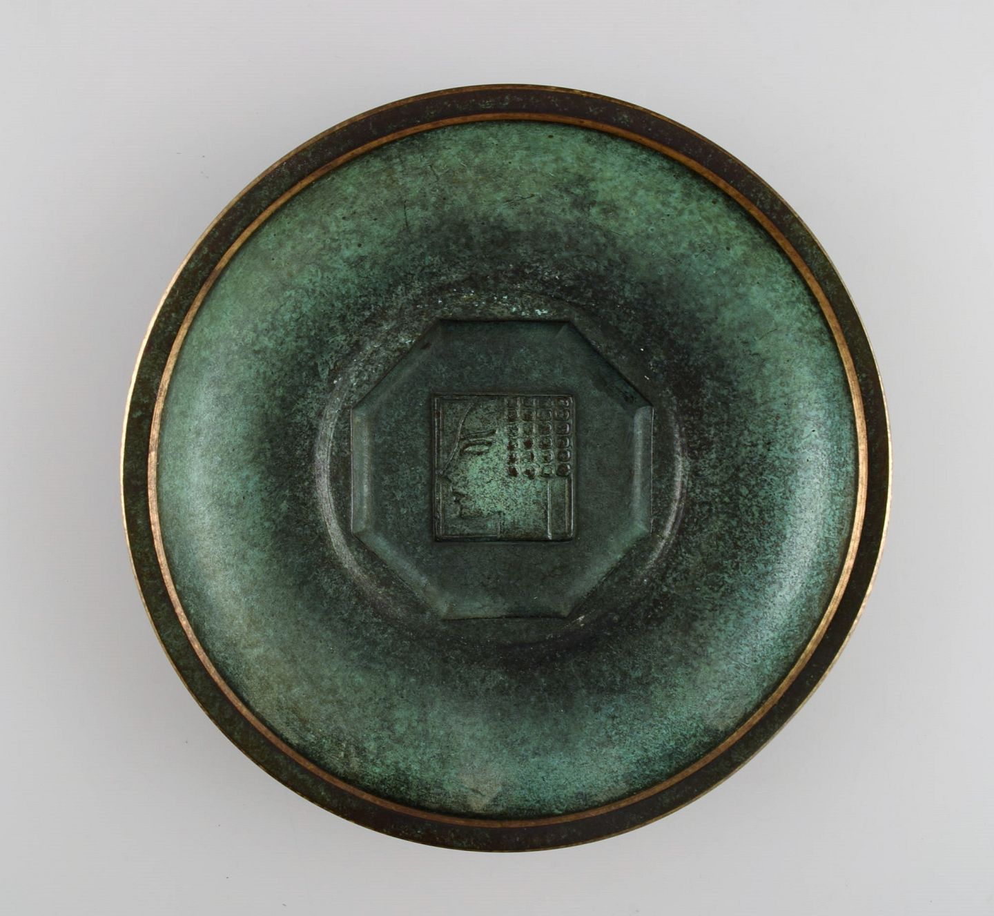 Zicu, Sverige. Stor art deco askebæger og skål i patineret metal. Midt 1900-tallet.