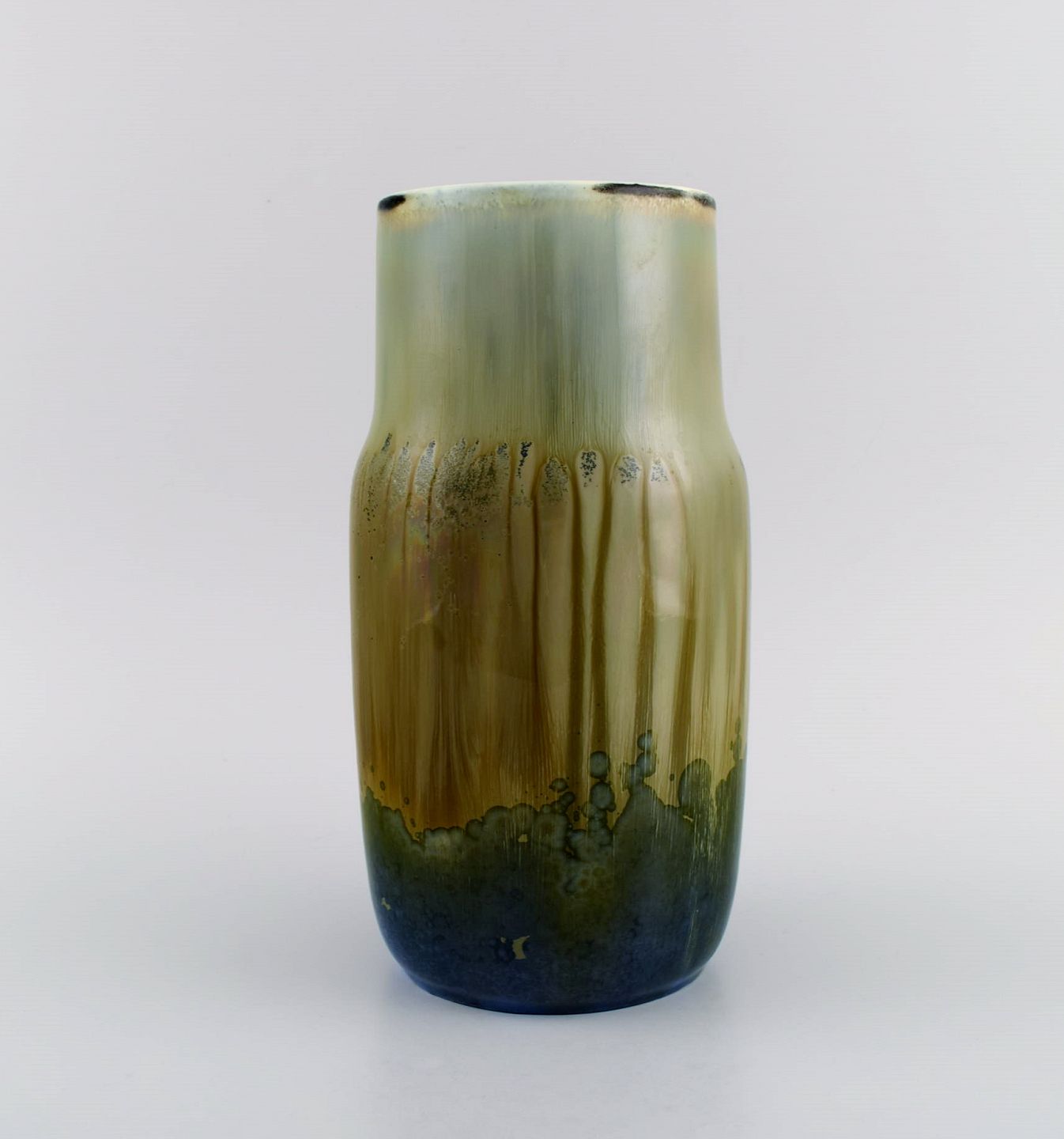 Valdemar Engelhardt (1860-1915) for Royal Copenhagen. Unique porcelain vase. Beautiful crystal glaze. Approx. 1900. Measures: 24.5 x 13 cm. In excellent condition. Signed.