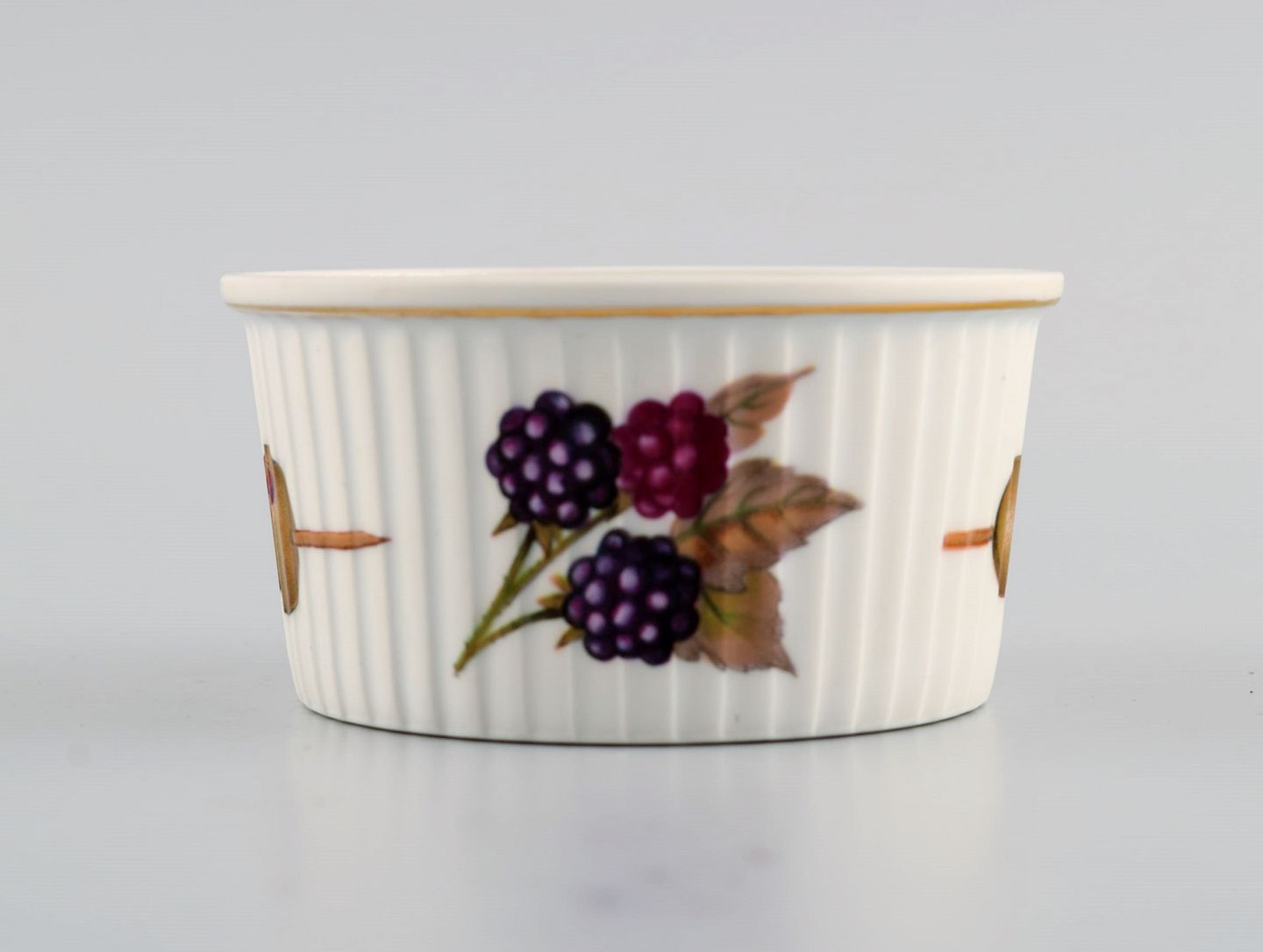 Royal Worcester, England. Otte små Evesham porcelænsskåle dekoreret med frugter og guldkant. 1980'erne. Måler: 8,5 x 4,5 cm. I flot stand. Stemplet.